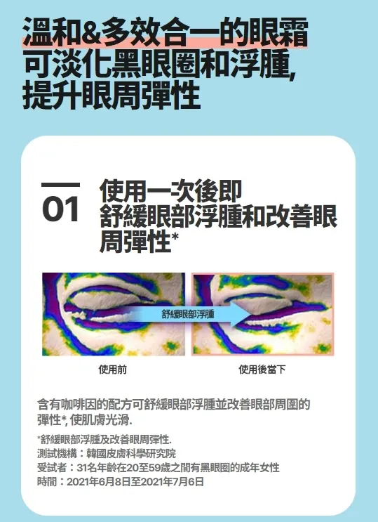 椰子眼霜,瞬間清涼舒緩 椰子水分可冷卻舒緩眼睛周圍皮膚