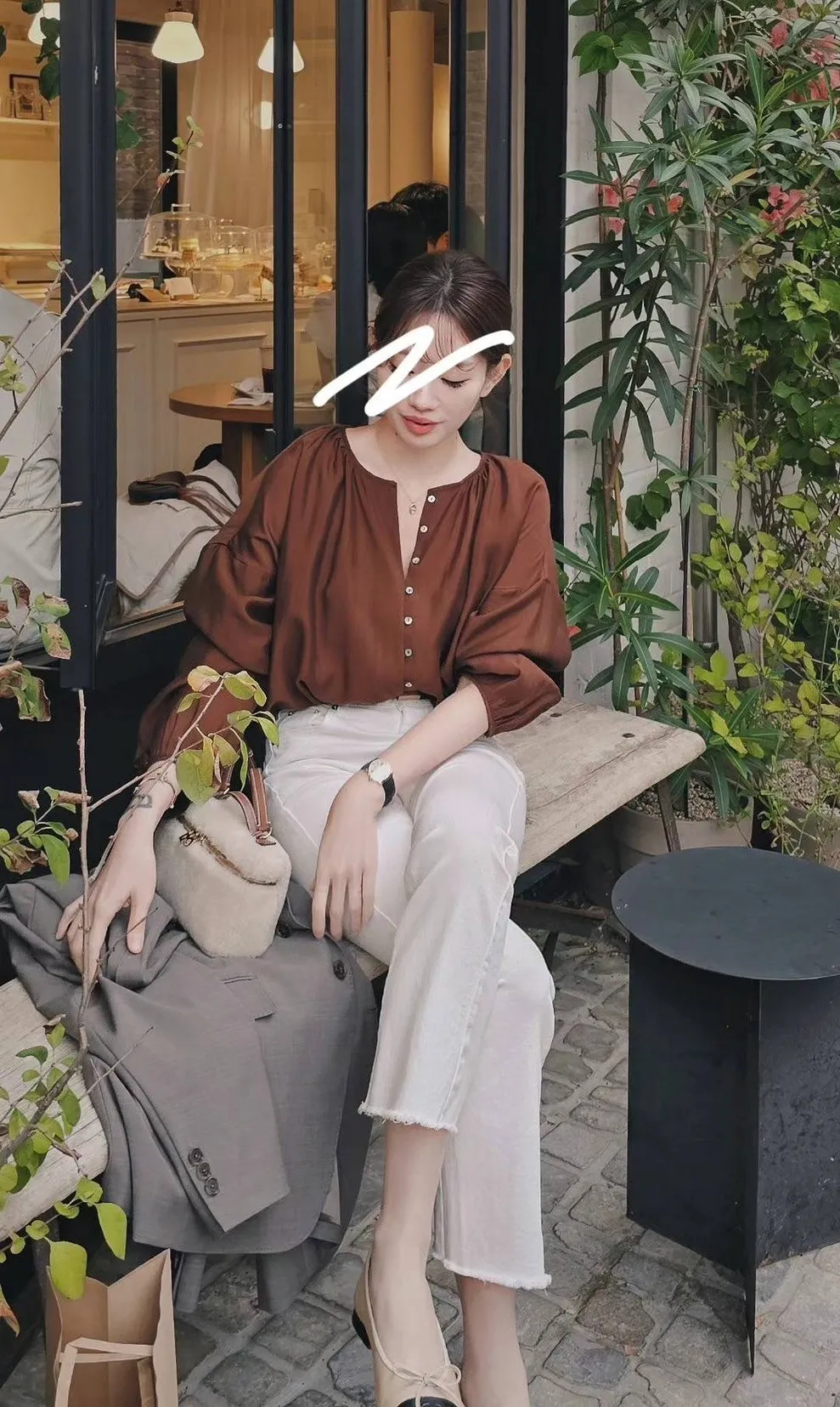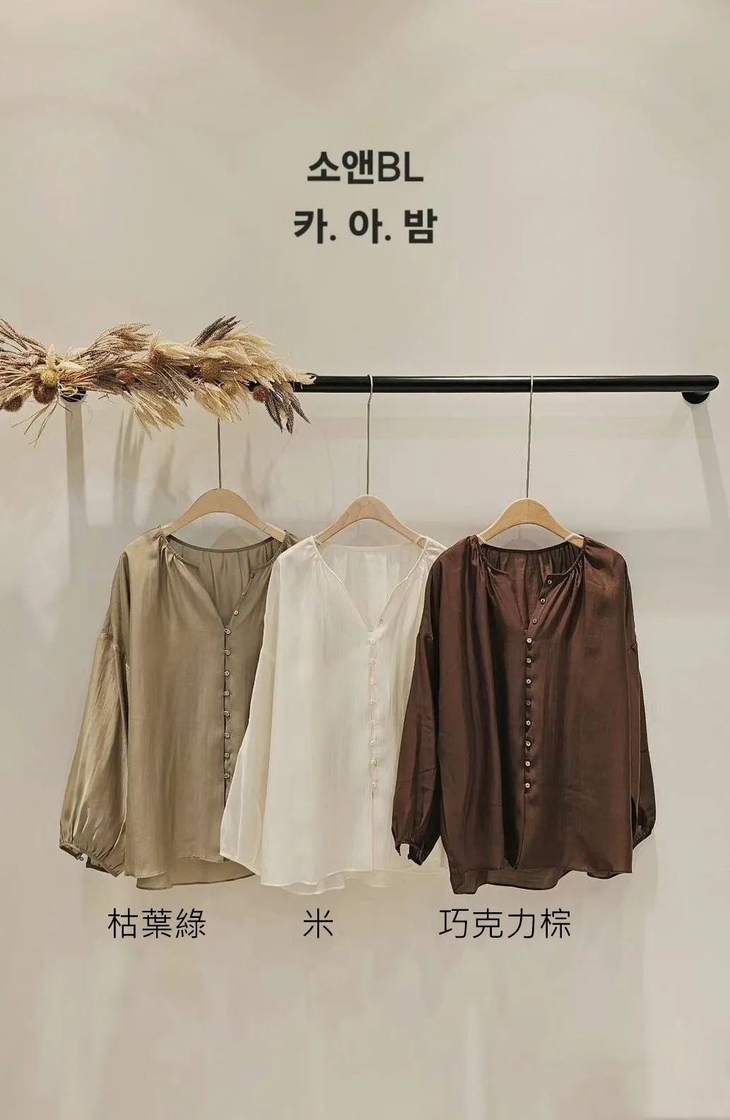 PC208質感秋日微光澤罩衫 米 枯葉綠 巧克力棕 官網價$1320 線上價$1290