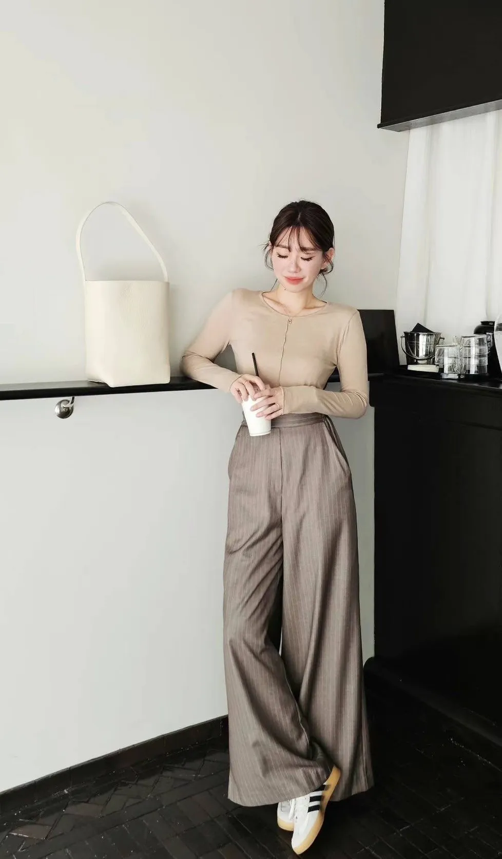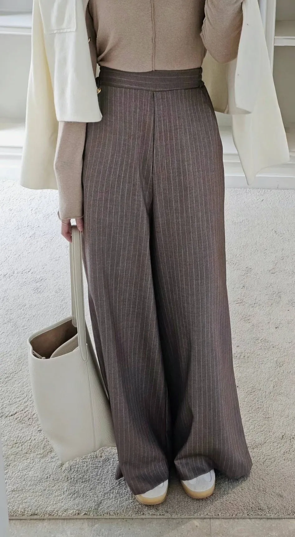 PC209高質感直紋闊腿西裝長褲 灰棕 深藍黑 官網價$1470 線上價$1440
