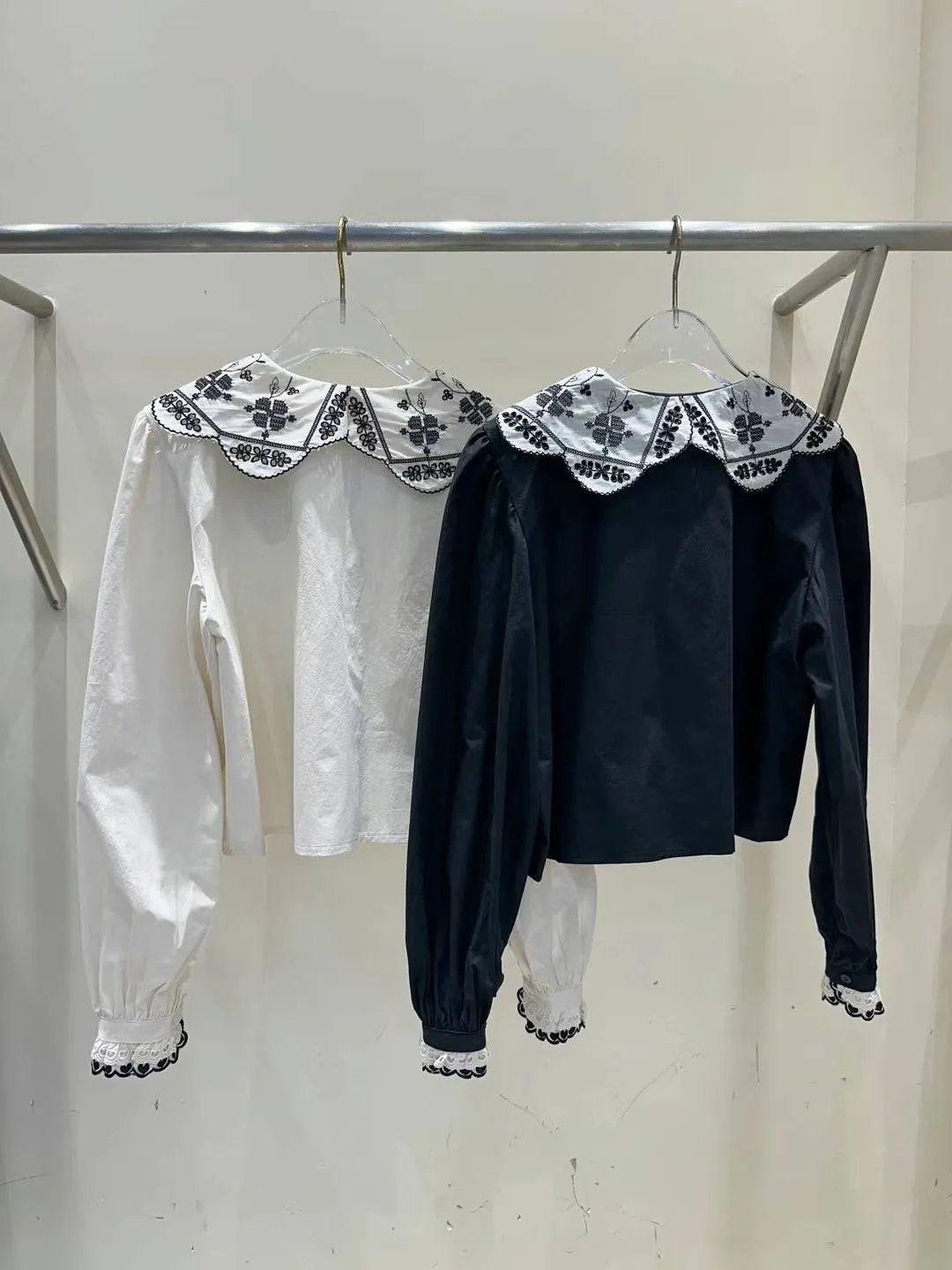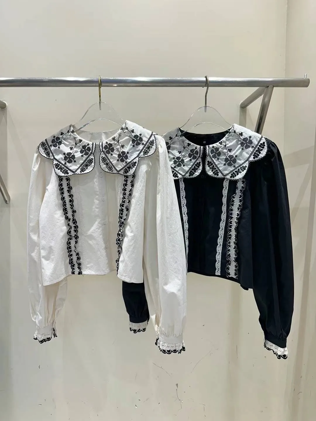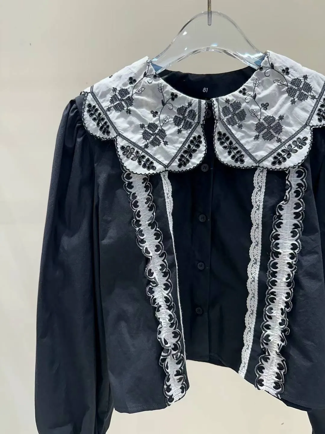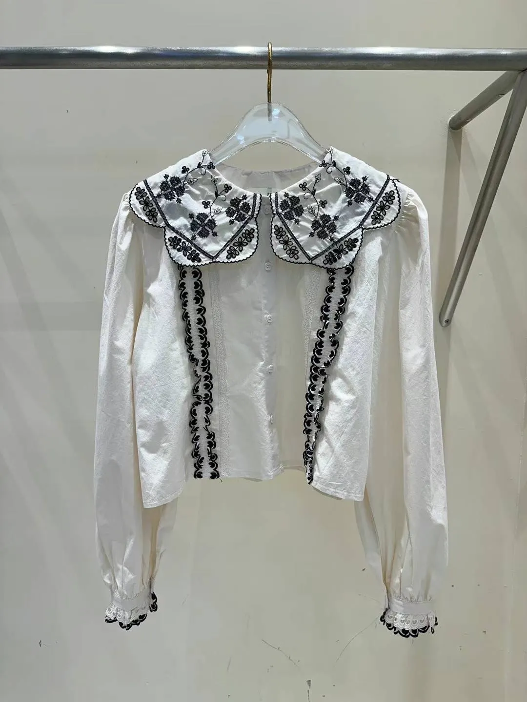 棉 幸運草刺繡 宮廷感翻領 愛心層次手袖 排釦穿脫