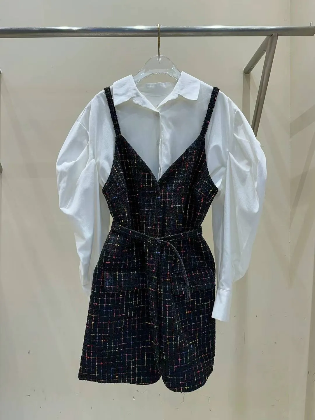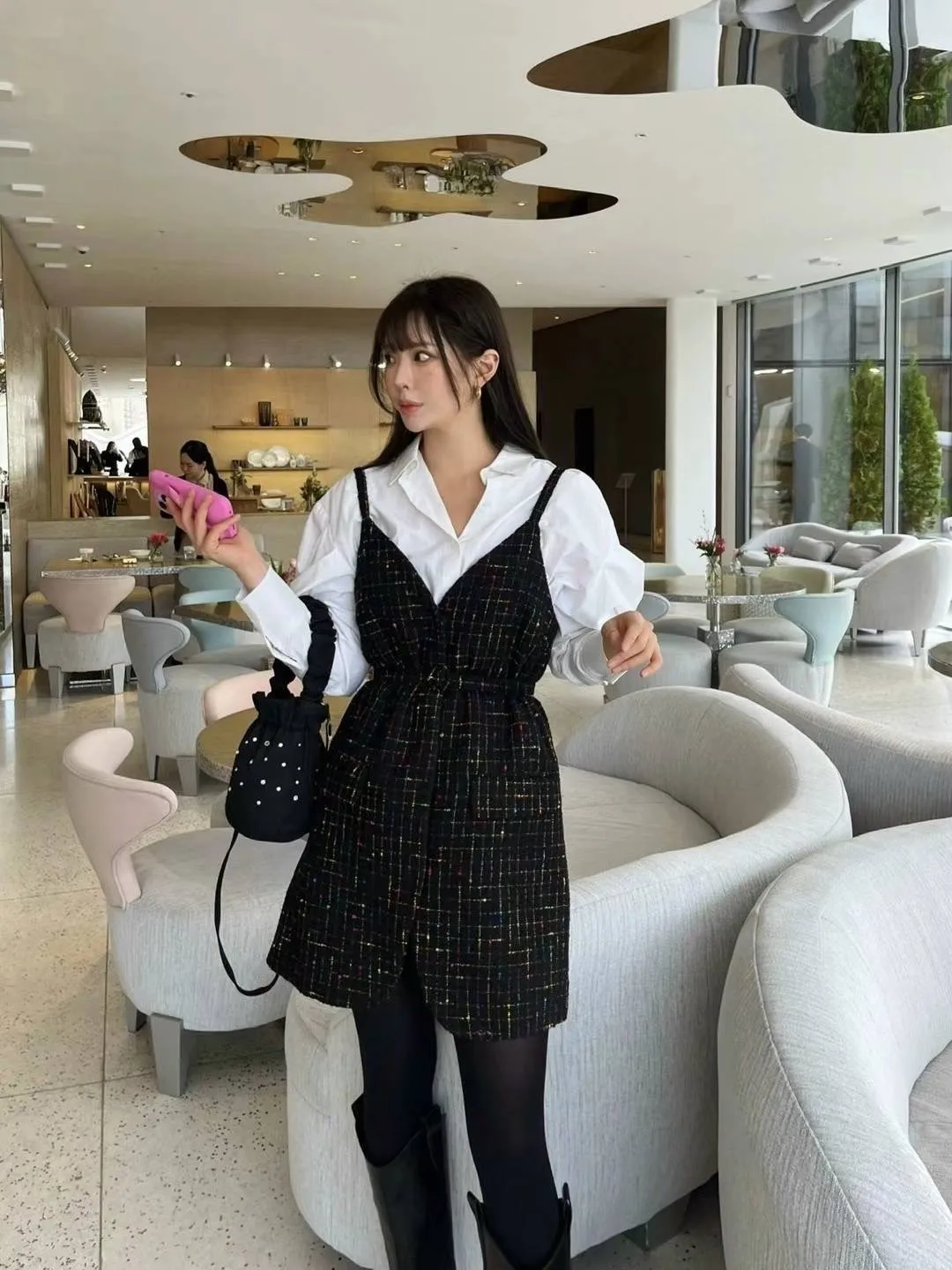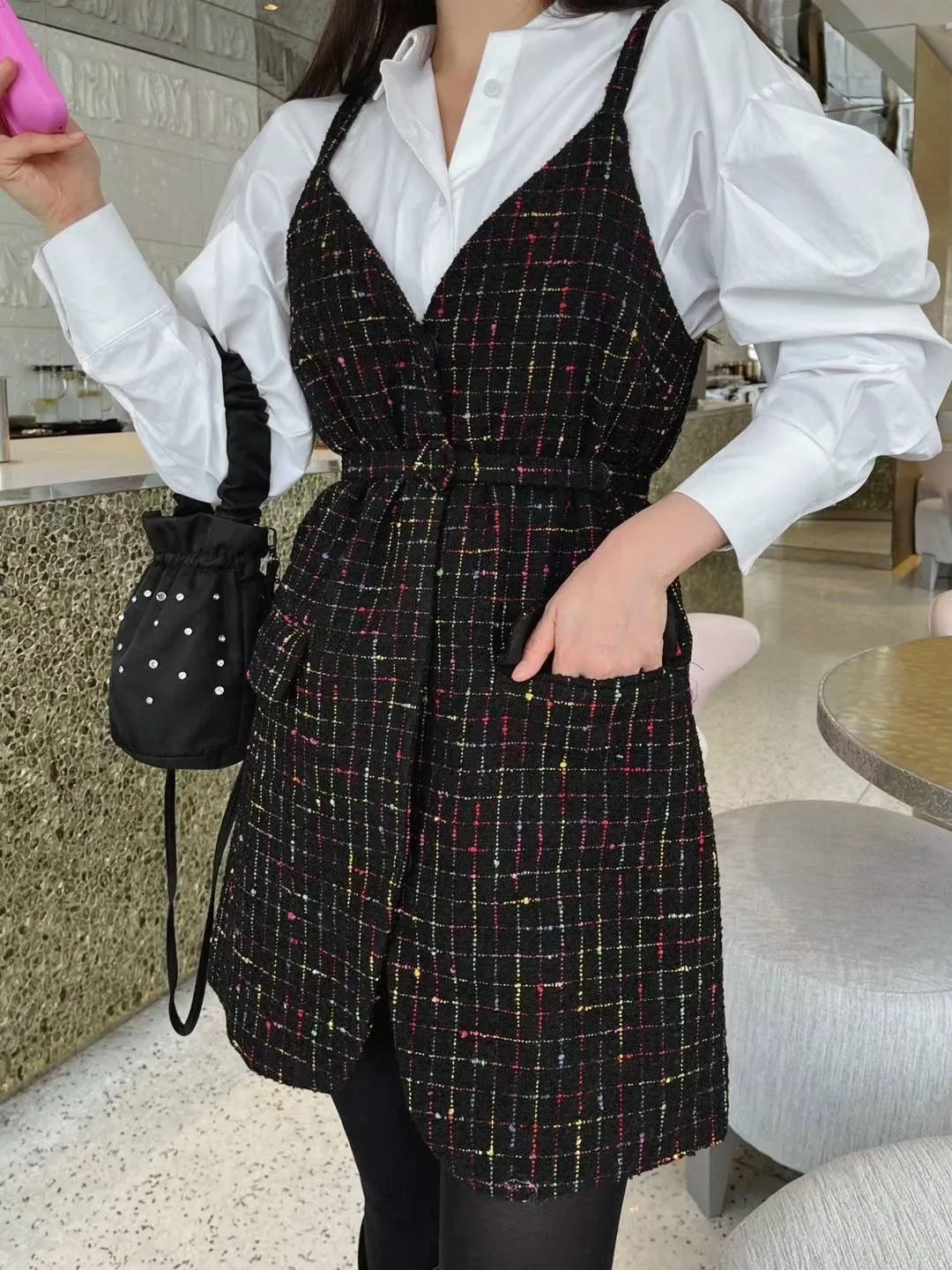 棉+聚酯 有腰帶 有口袋 肩帶不可調 這個是裙子款 有內裡