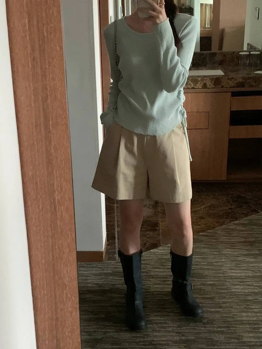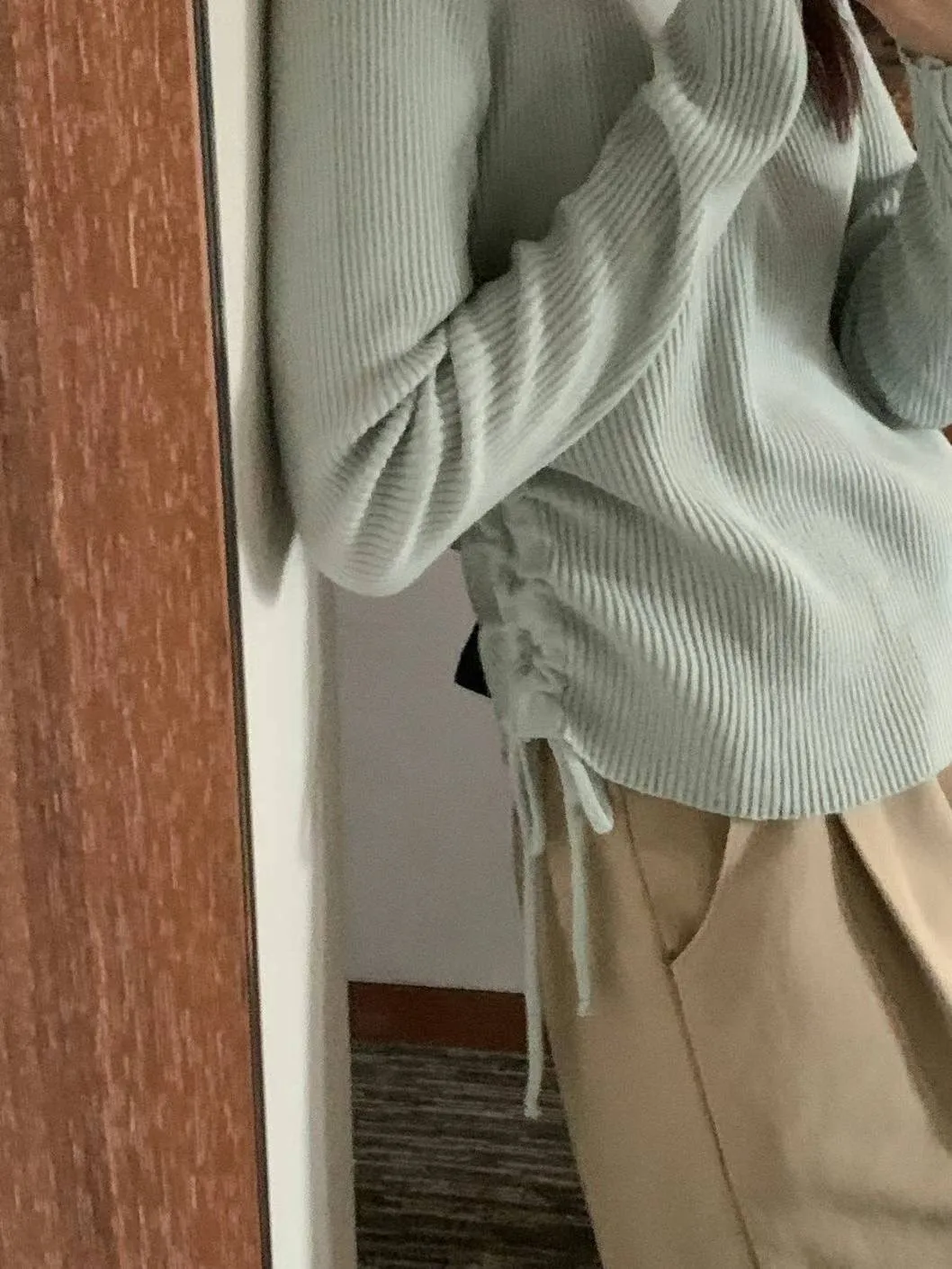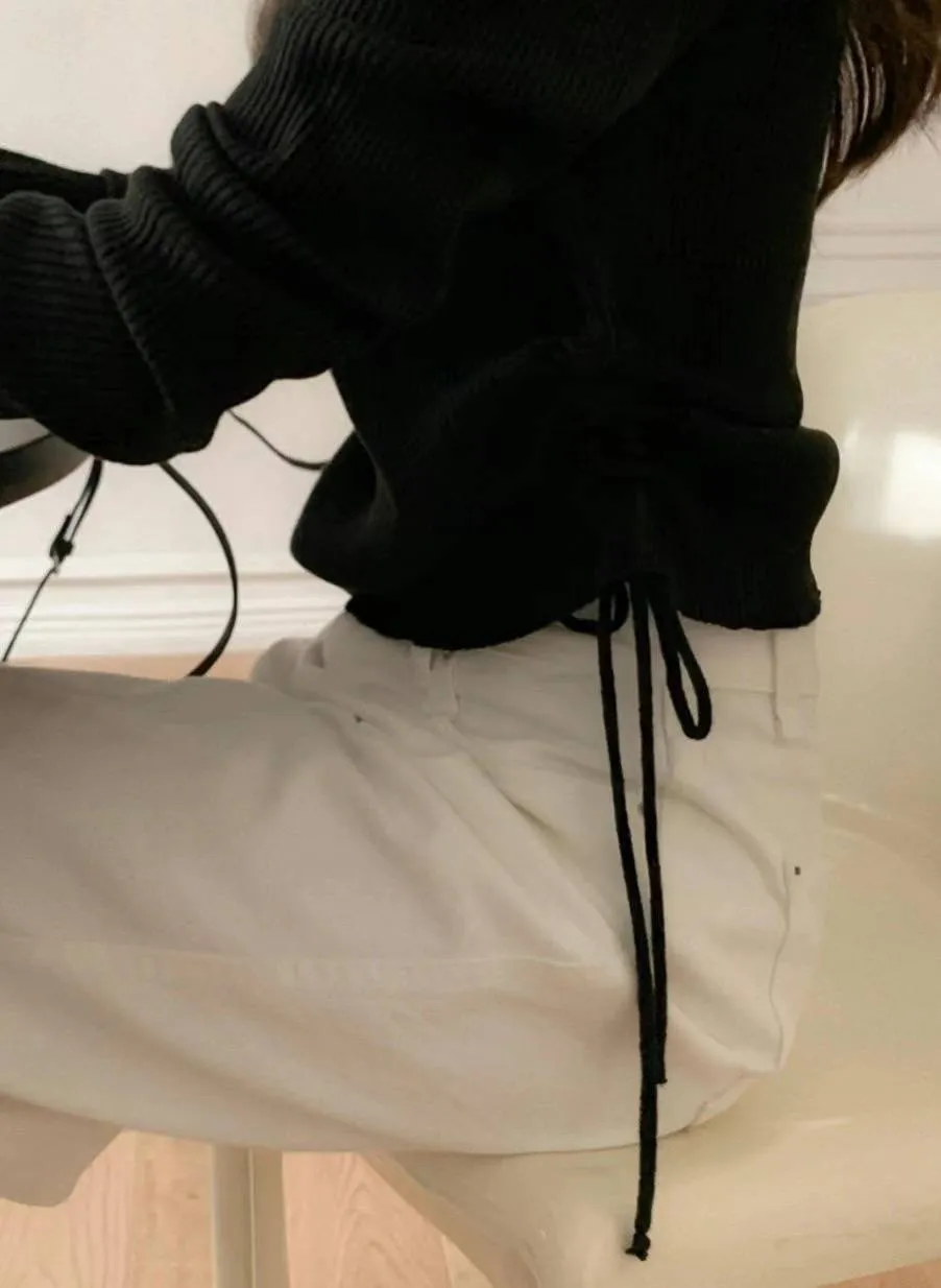 壓克力+聚酯 親膚舒適 細腰雙抽繩上縮 細坑條有彈性 修身up胸部