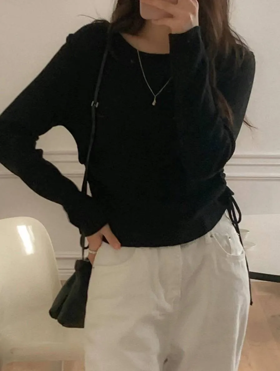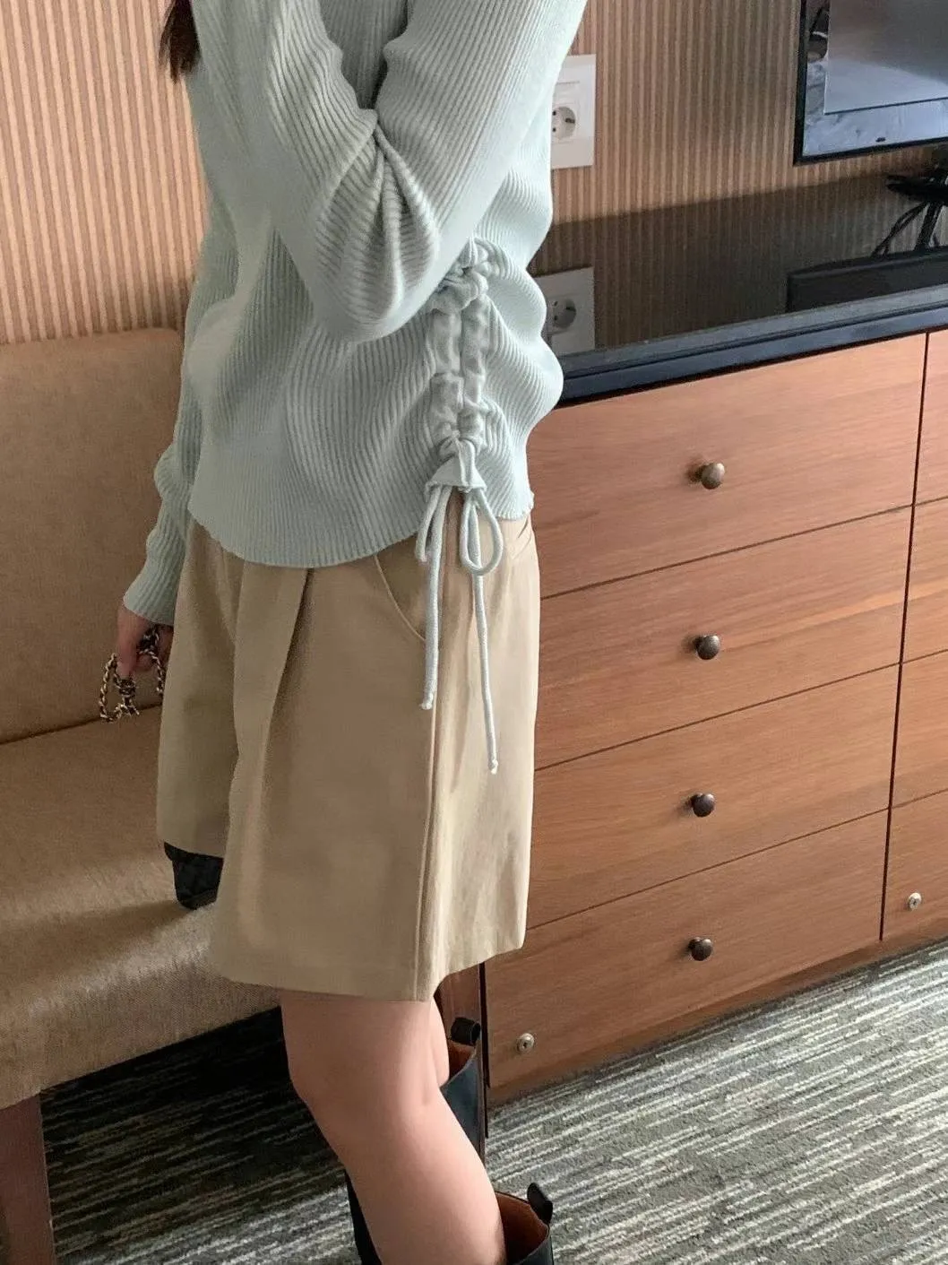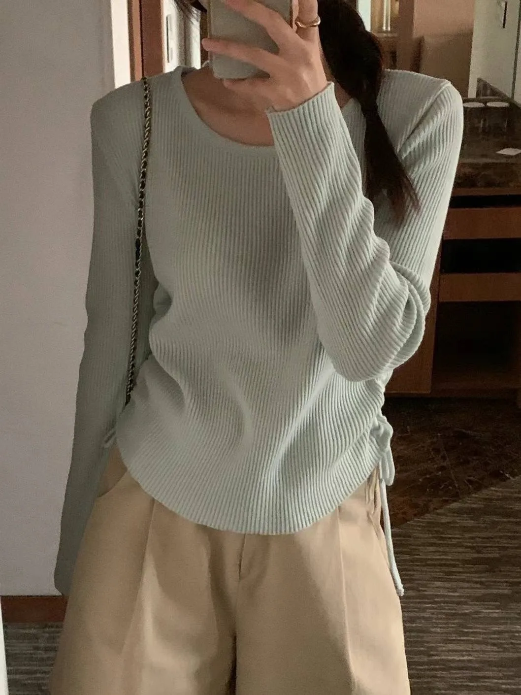 壓克力+聚酯 親膚舒適 細腰雙抽繩上縮 細坑條有彈性 修身up胸部