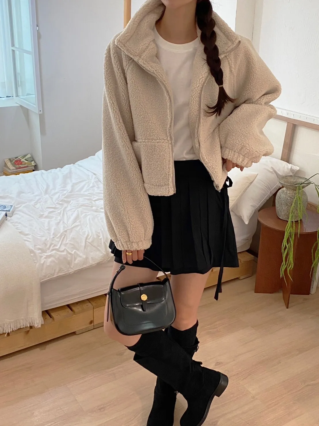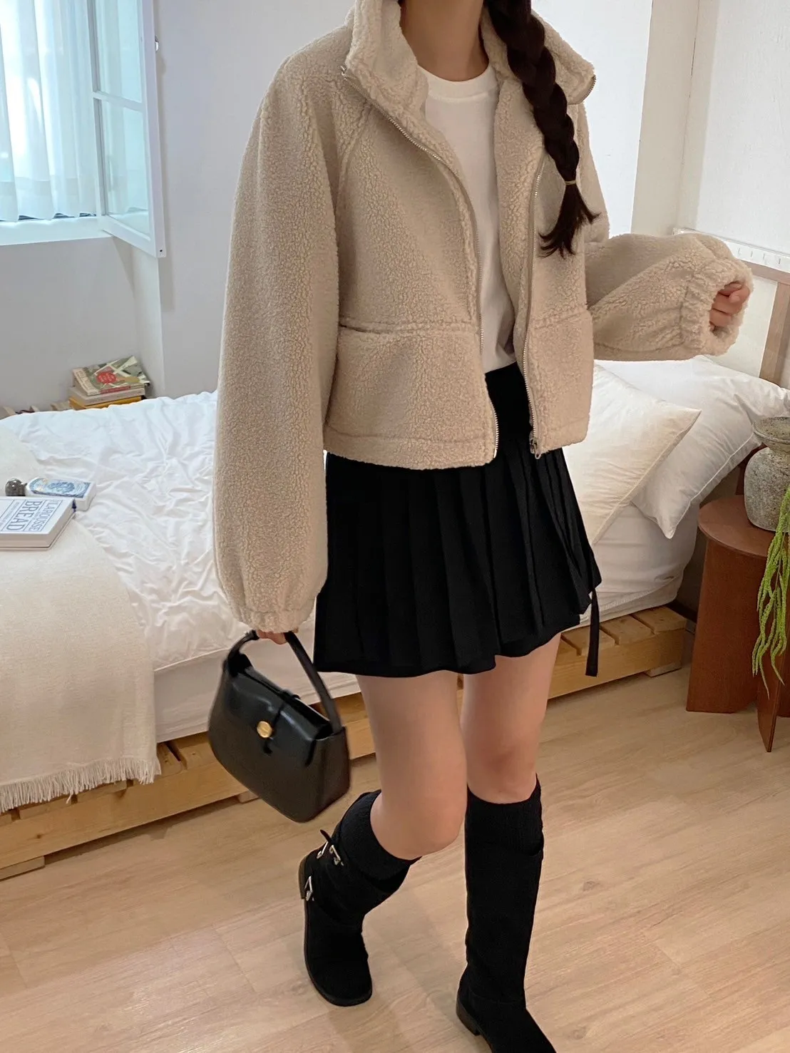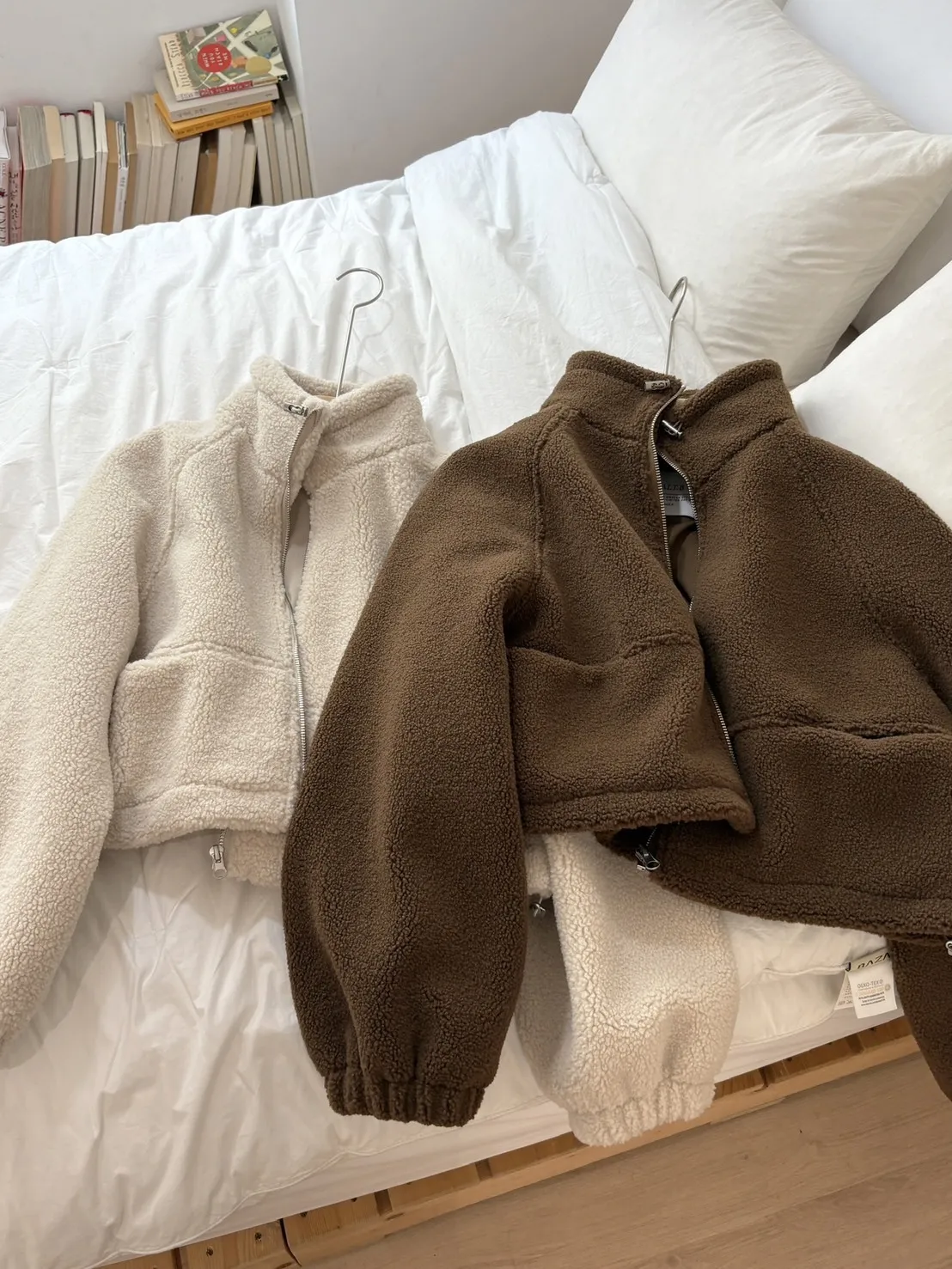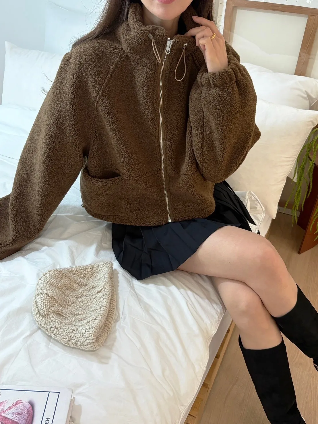 聚酯 舒適QQ毛觸感 拉鍊穿脫 微立領抽繩 有口袋有內裡