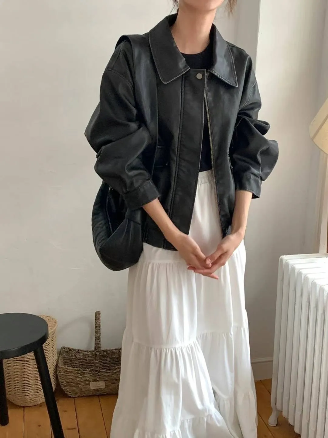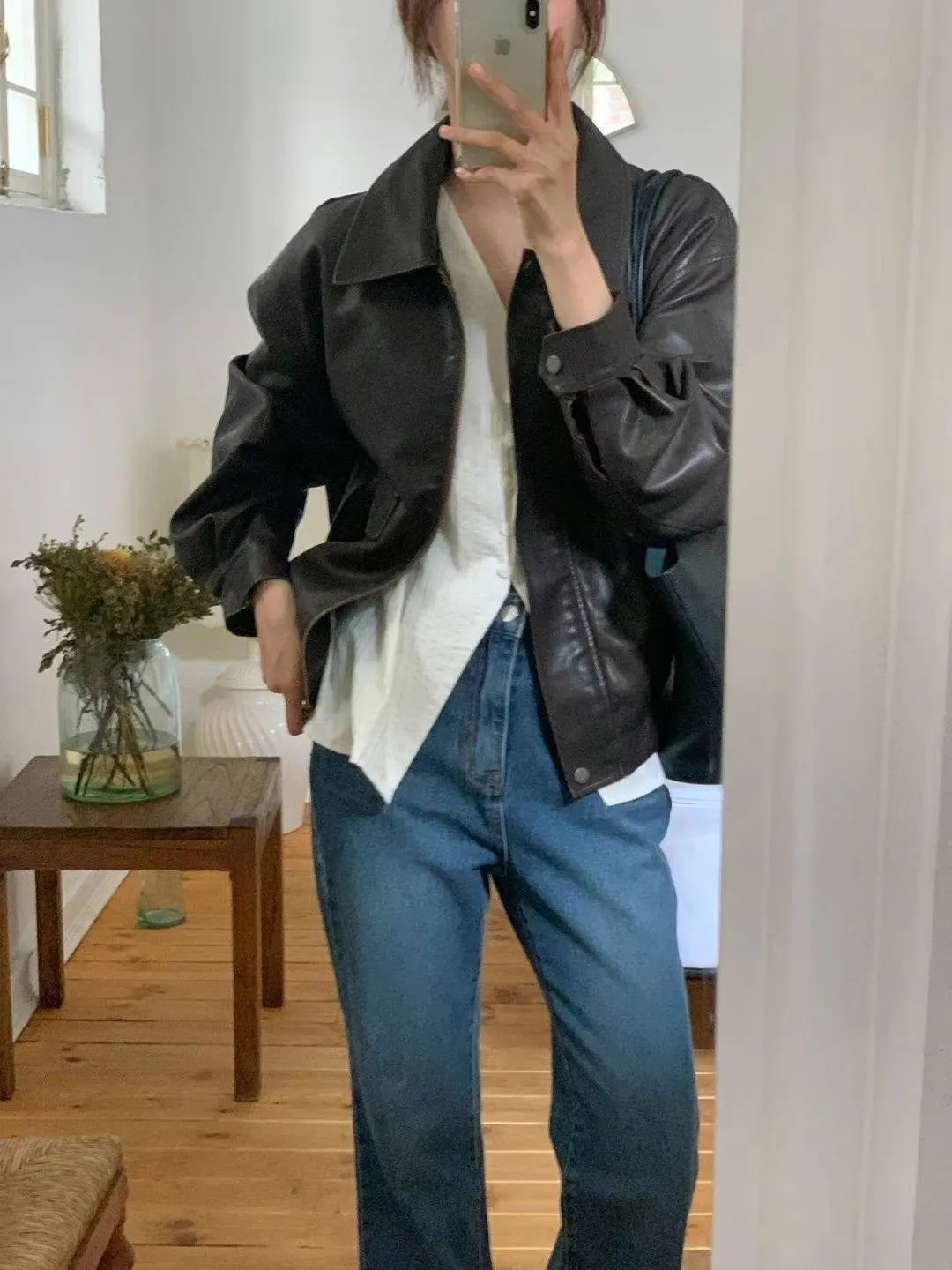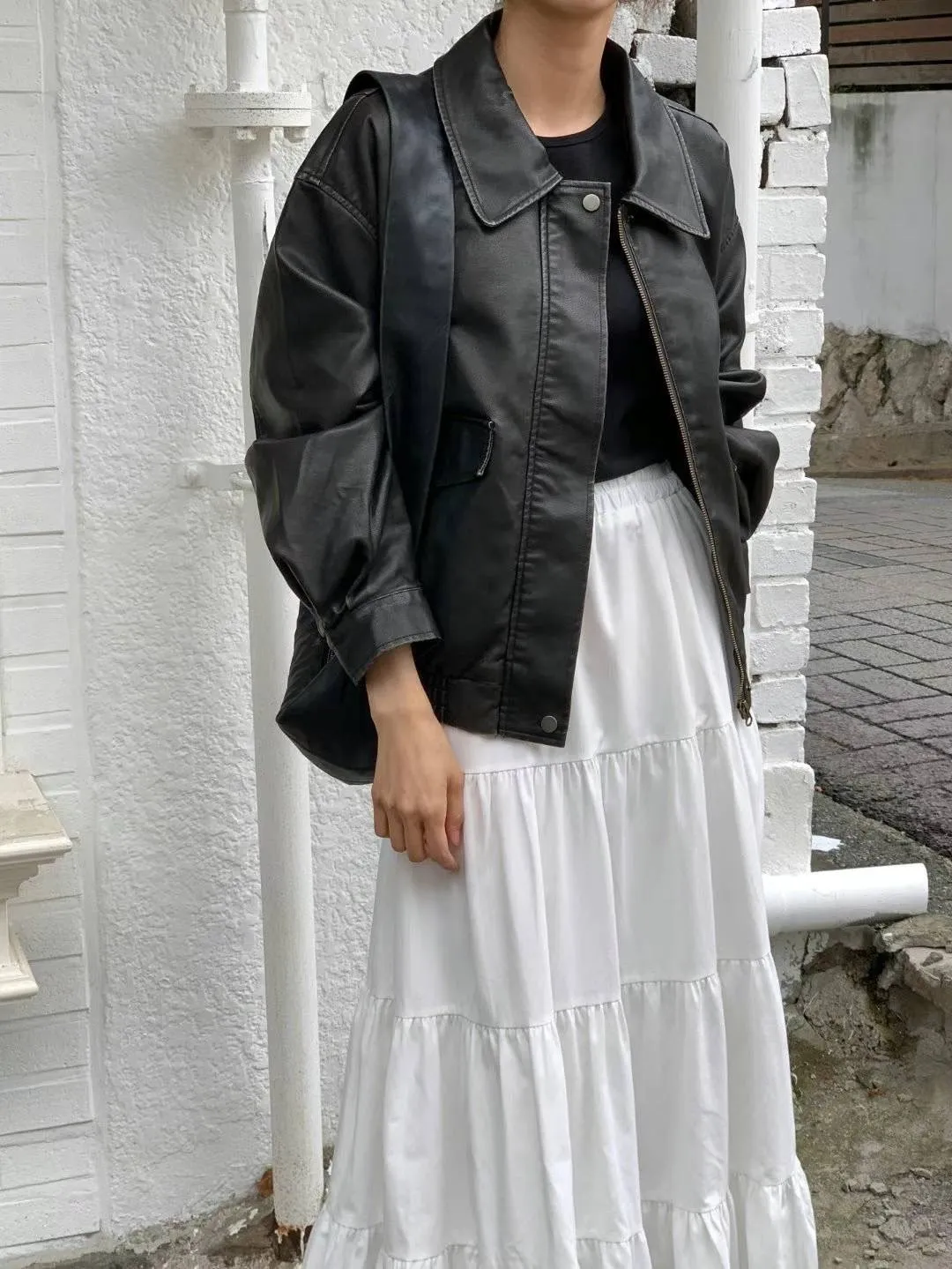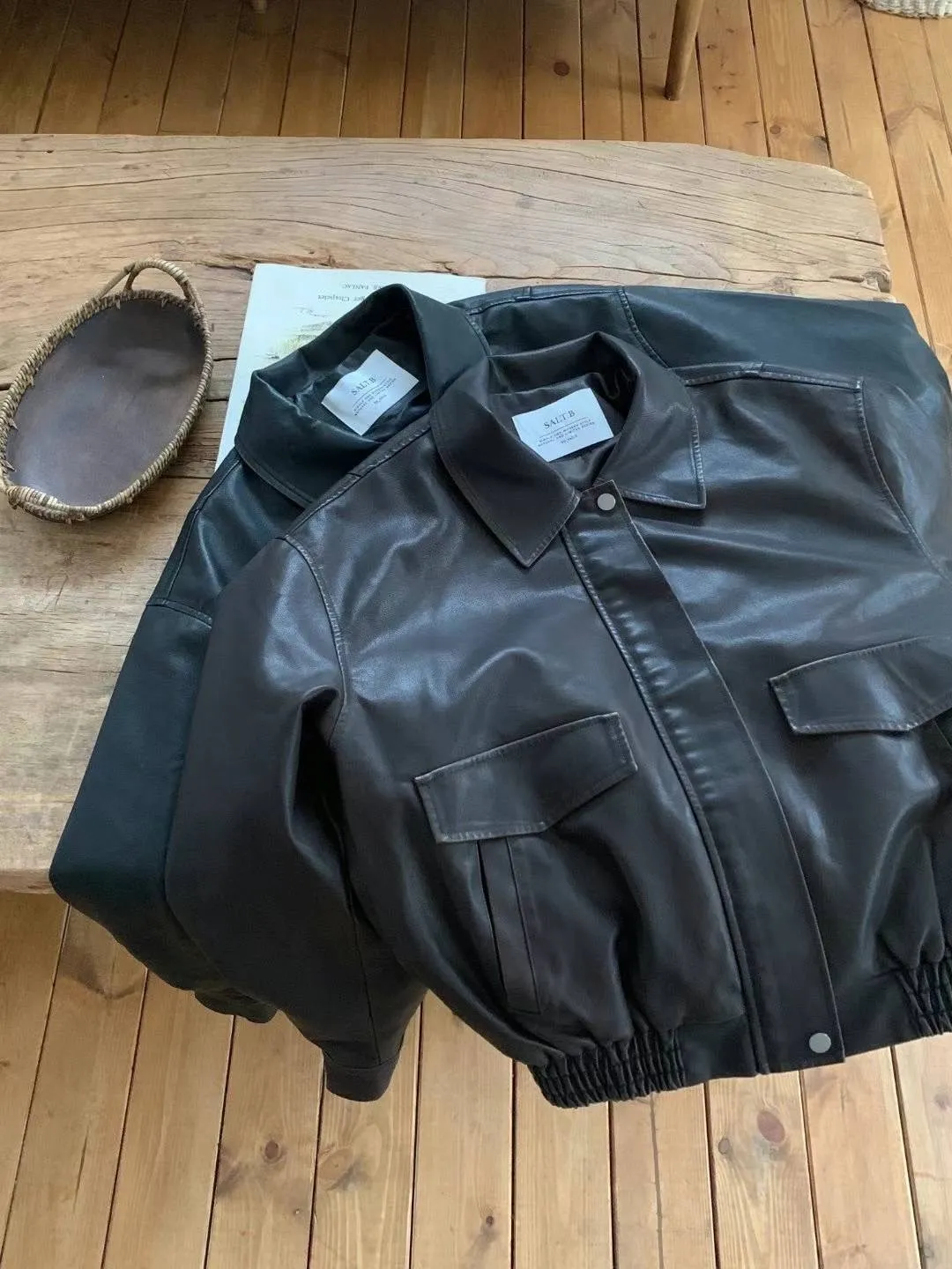 合成皮革 觸感佳 壓釦拉鍊穿脫 有口袋 下擺縮身 袖口有釦