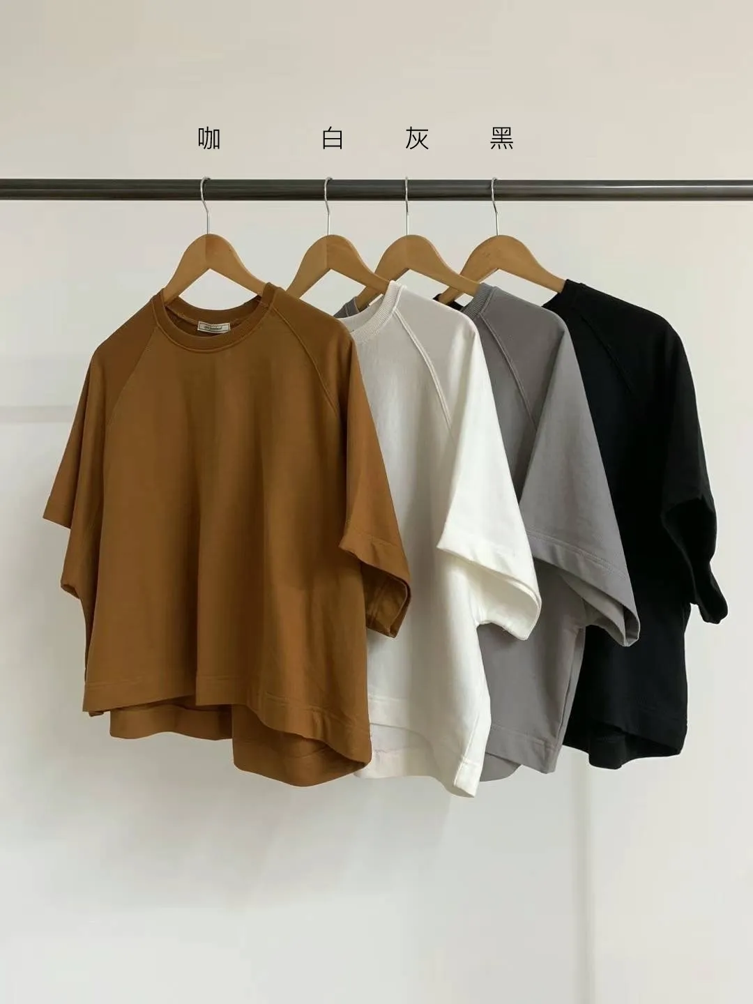 PC320俐落立體剪裁寬袖Tshirt 白 灰 咖 黑 官網價$550 線上價$520