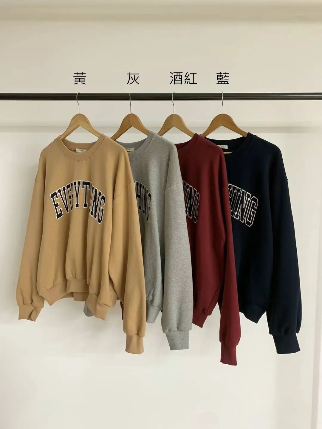 PC325質感EVERYTHING大學T 黃 灰 藍 酒紅 官網價$1160 線上價$1130