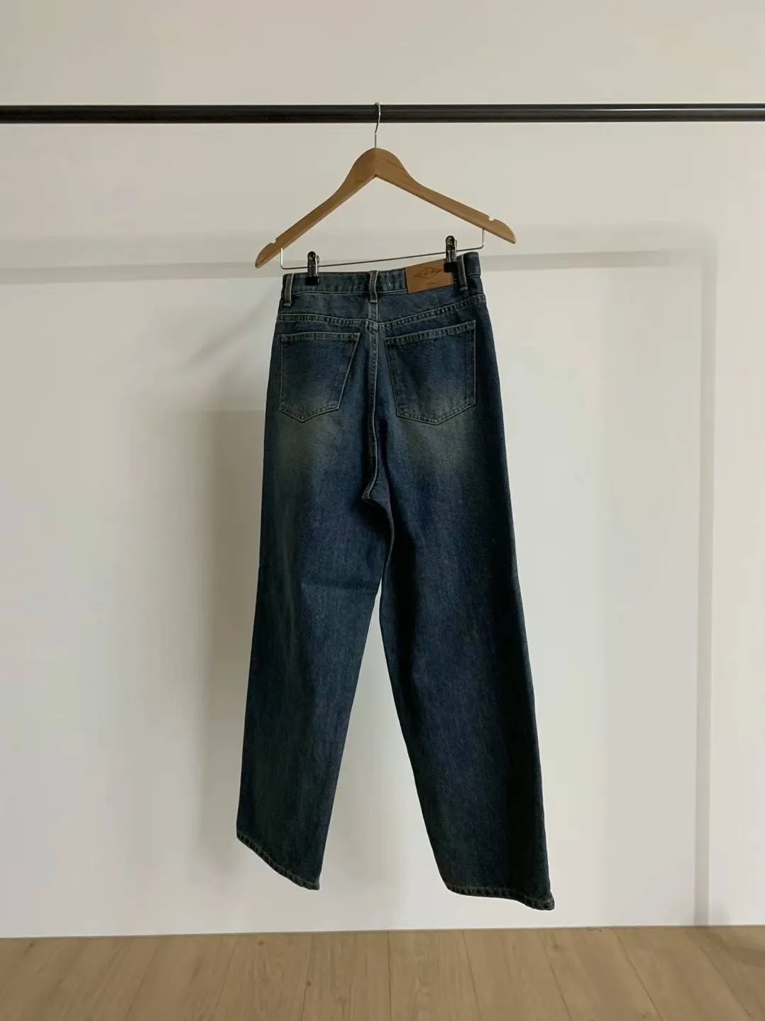 棉 釦練穿脫 復古刷色 有口袋 中腰直筒 四季皆可