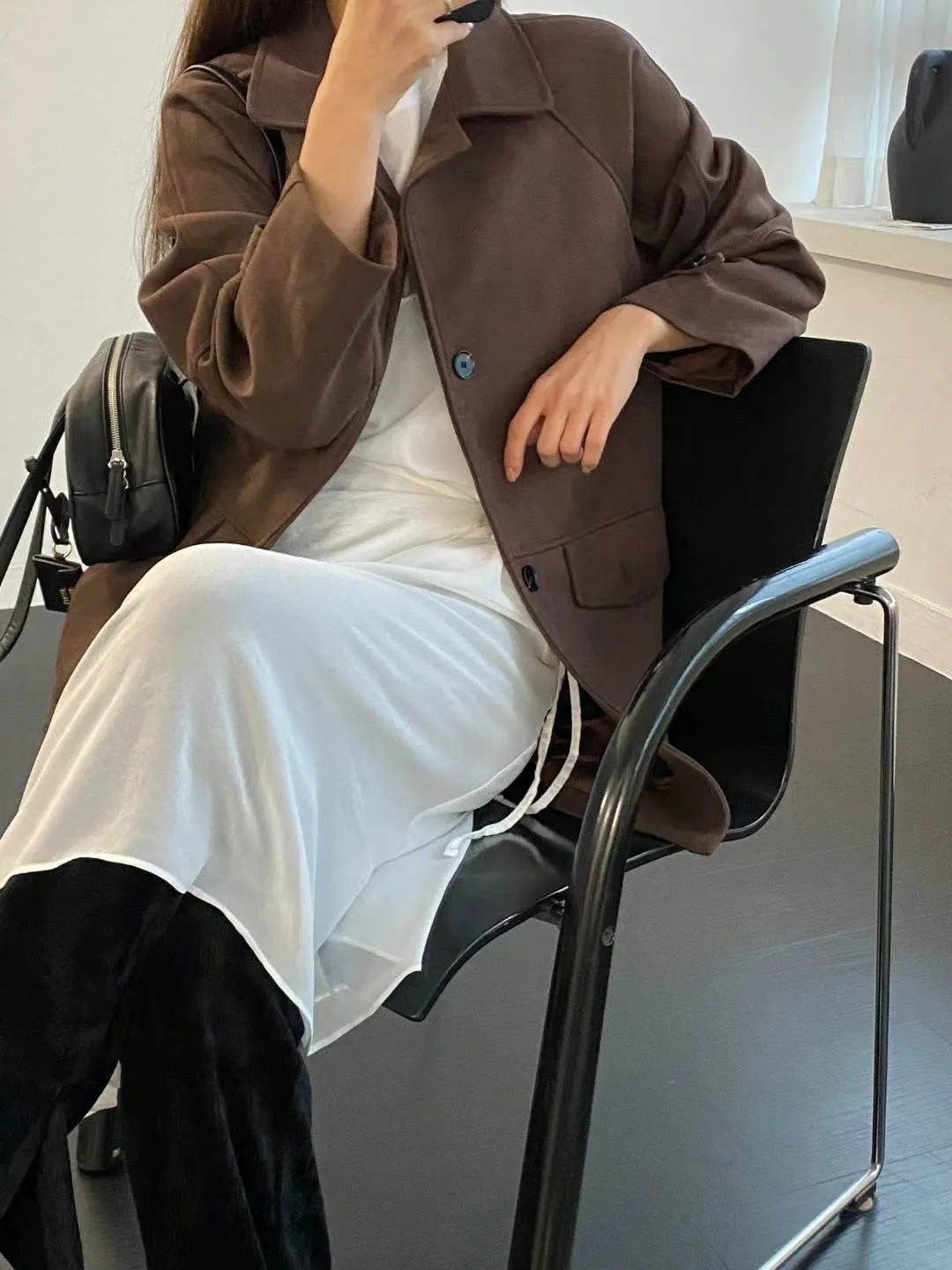 麂皮 推薦款 有口袋 觸感滑順絲柔 無肩線 排釦穿脫
