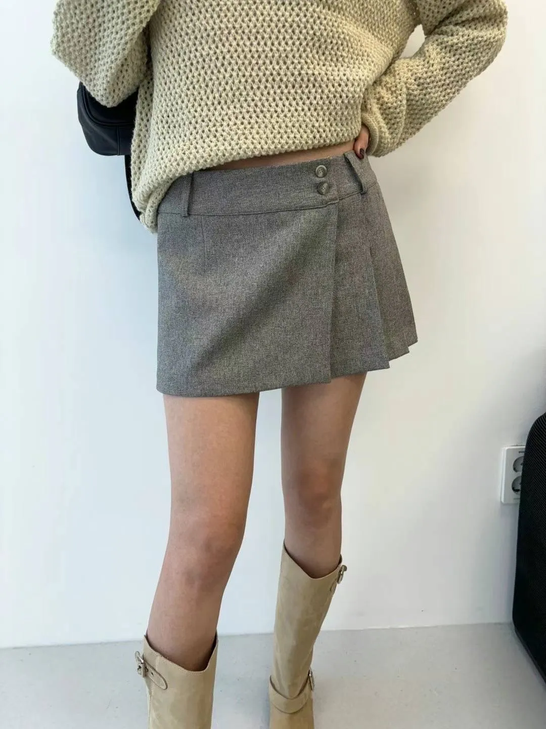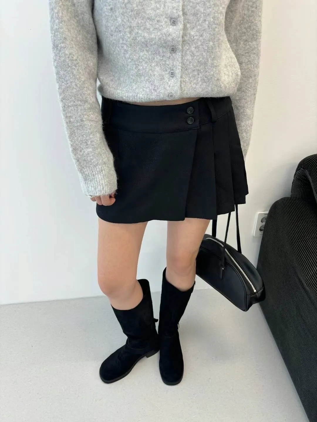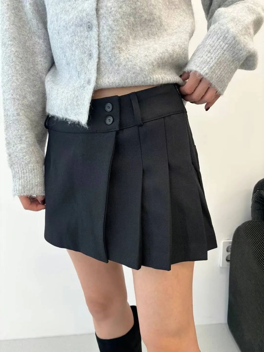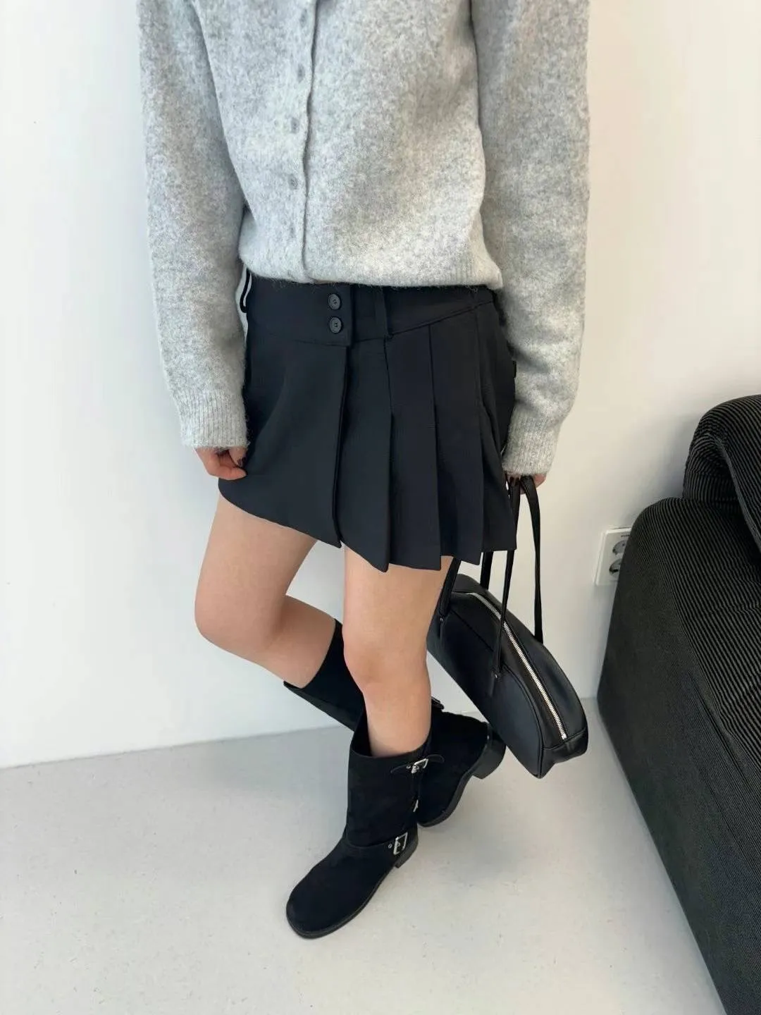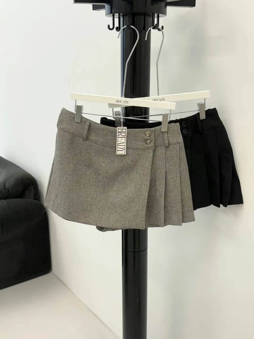 PC449側腰雙釦有型褲裙 灰 黑 官網價$810 線上價$780
