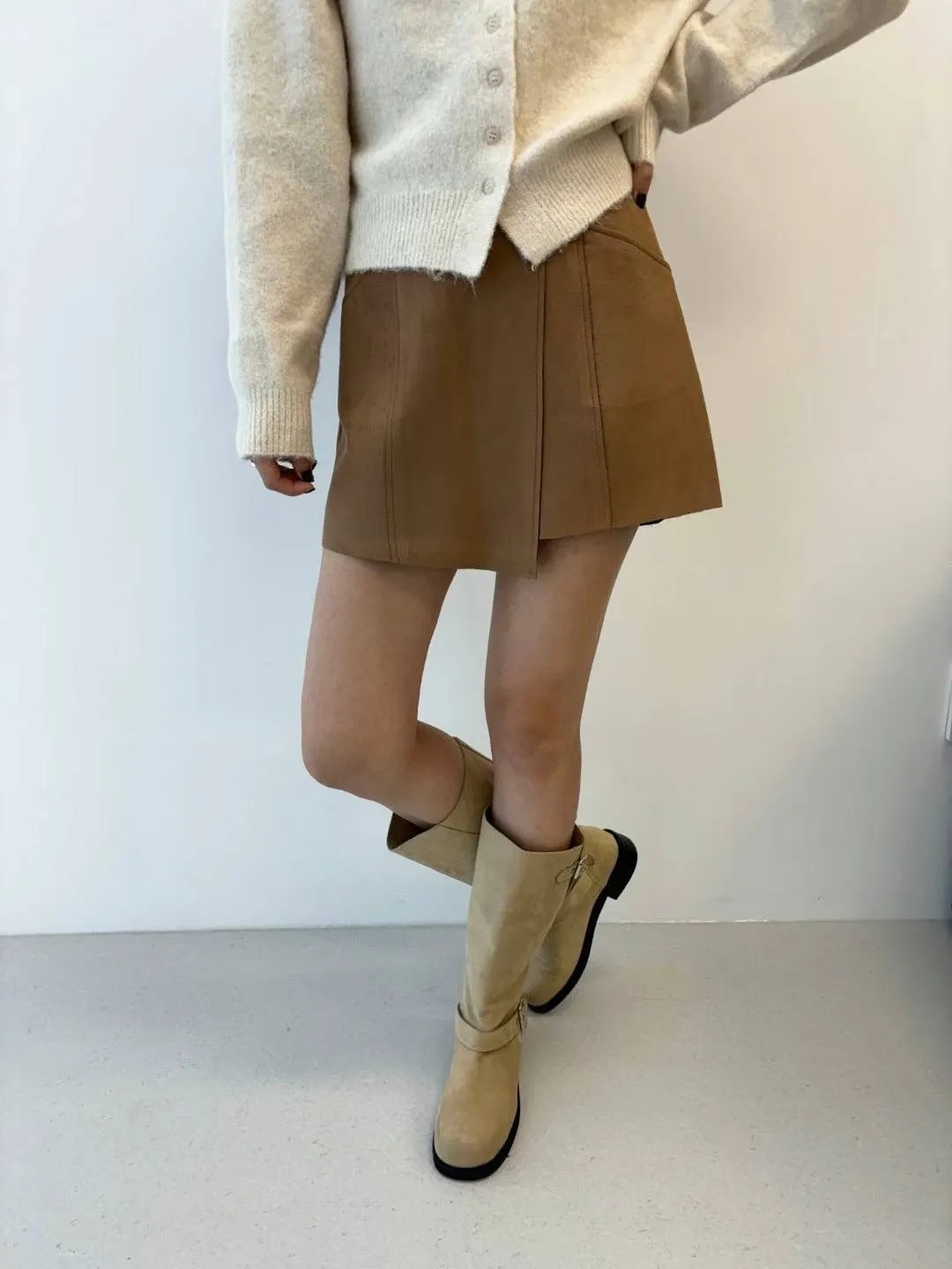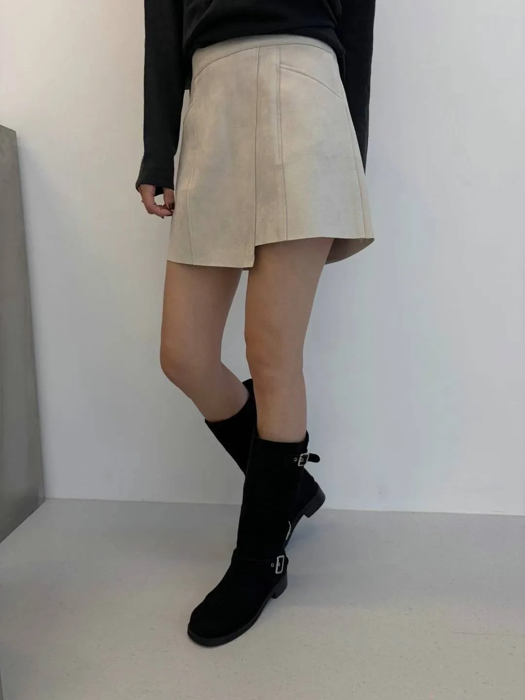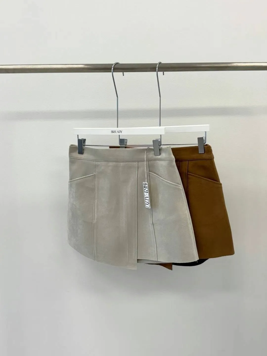 PC457設計感不規則下擺麂皮裙 米 咖 官網價$810 線上價$780