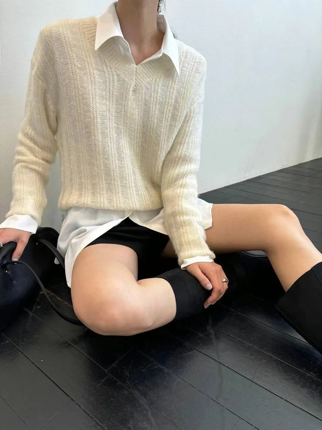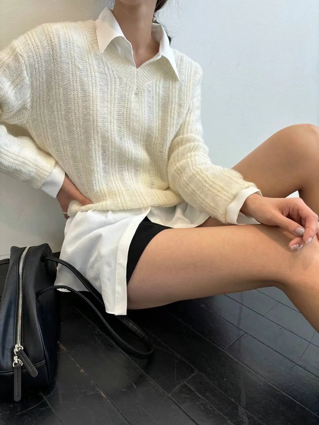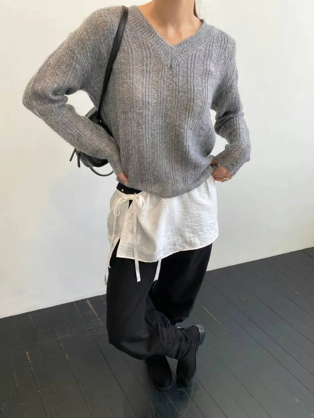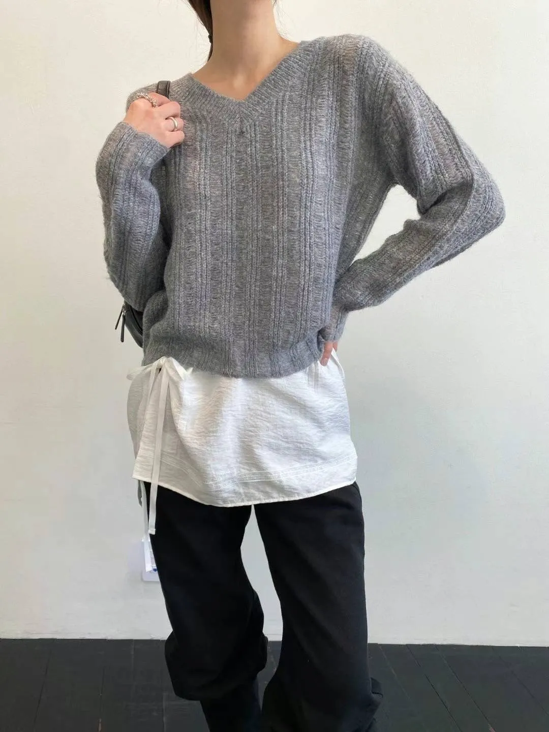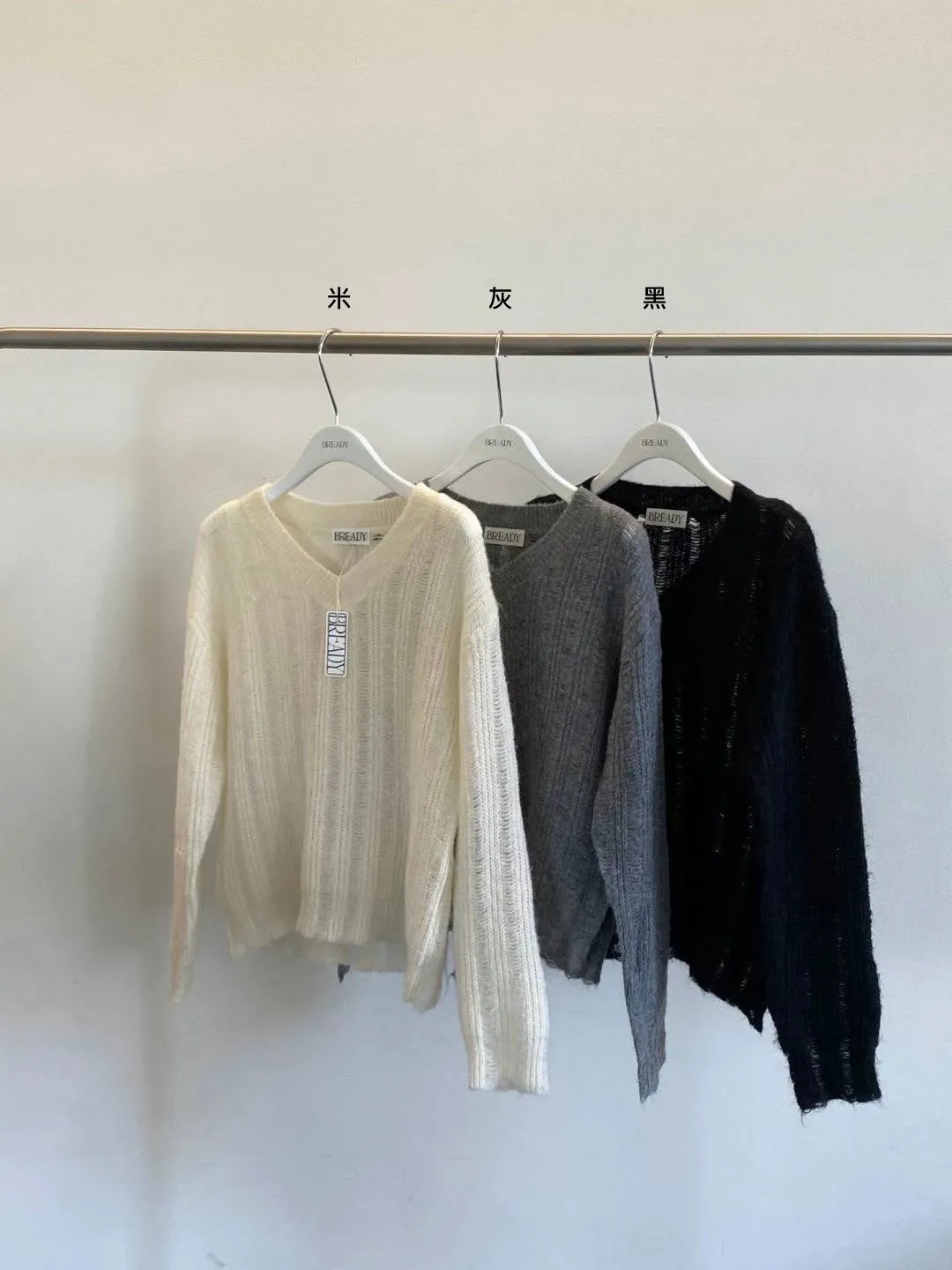 PC458薄款學院風V領毛衣 米 灰 黑 官網價$729 線上價$699