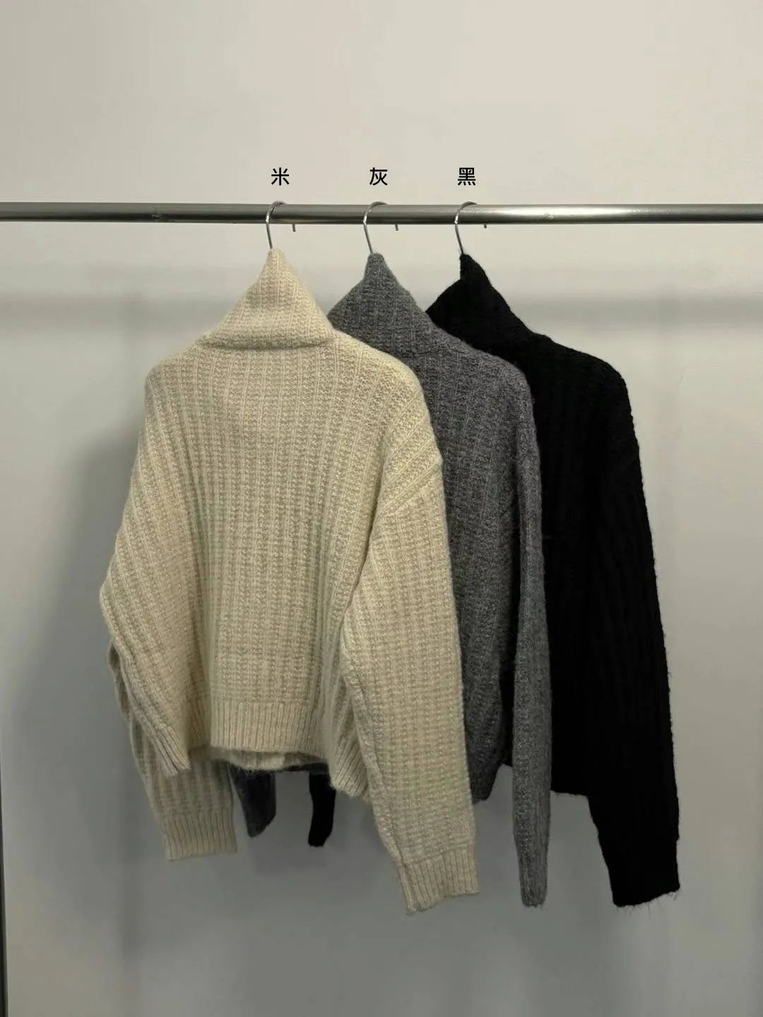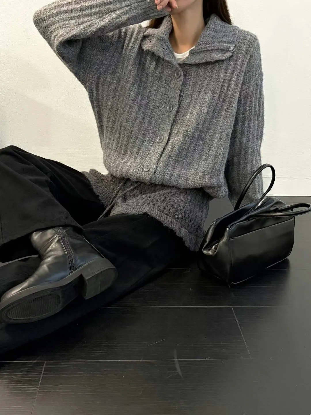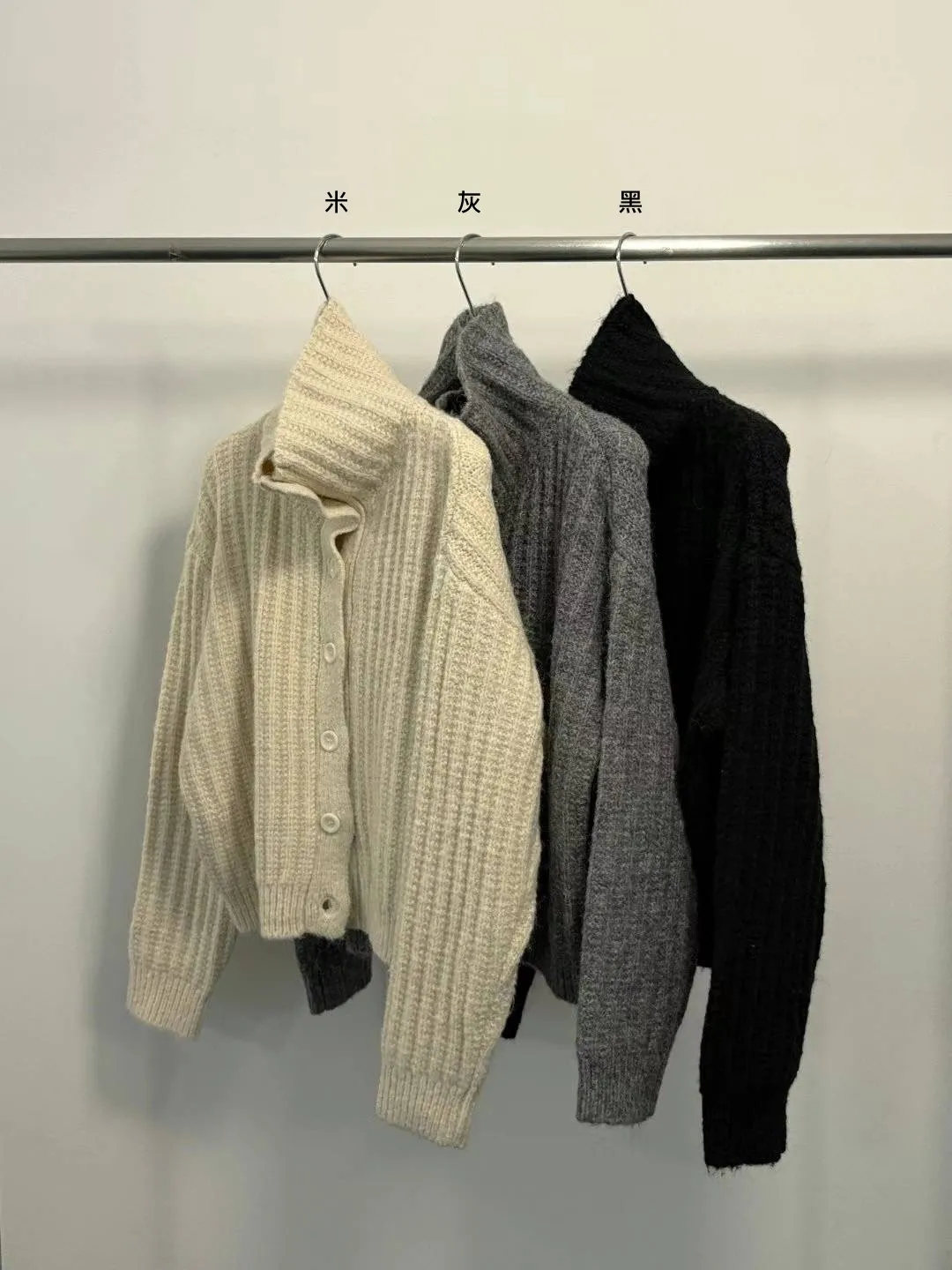 PC460翻領織線排釦毛衣 米 灰 黑 官網價$850 線上價$820