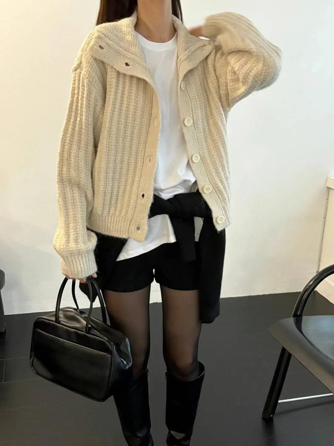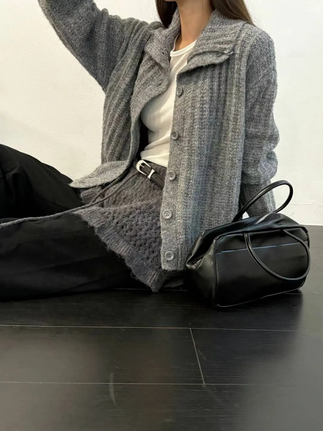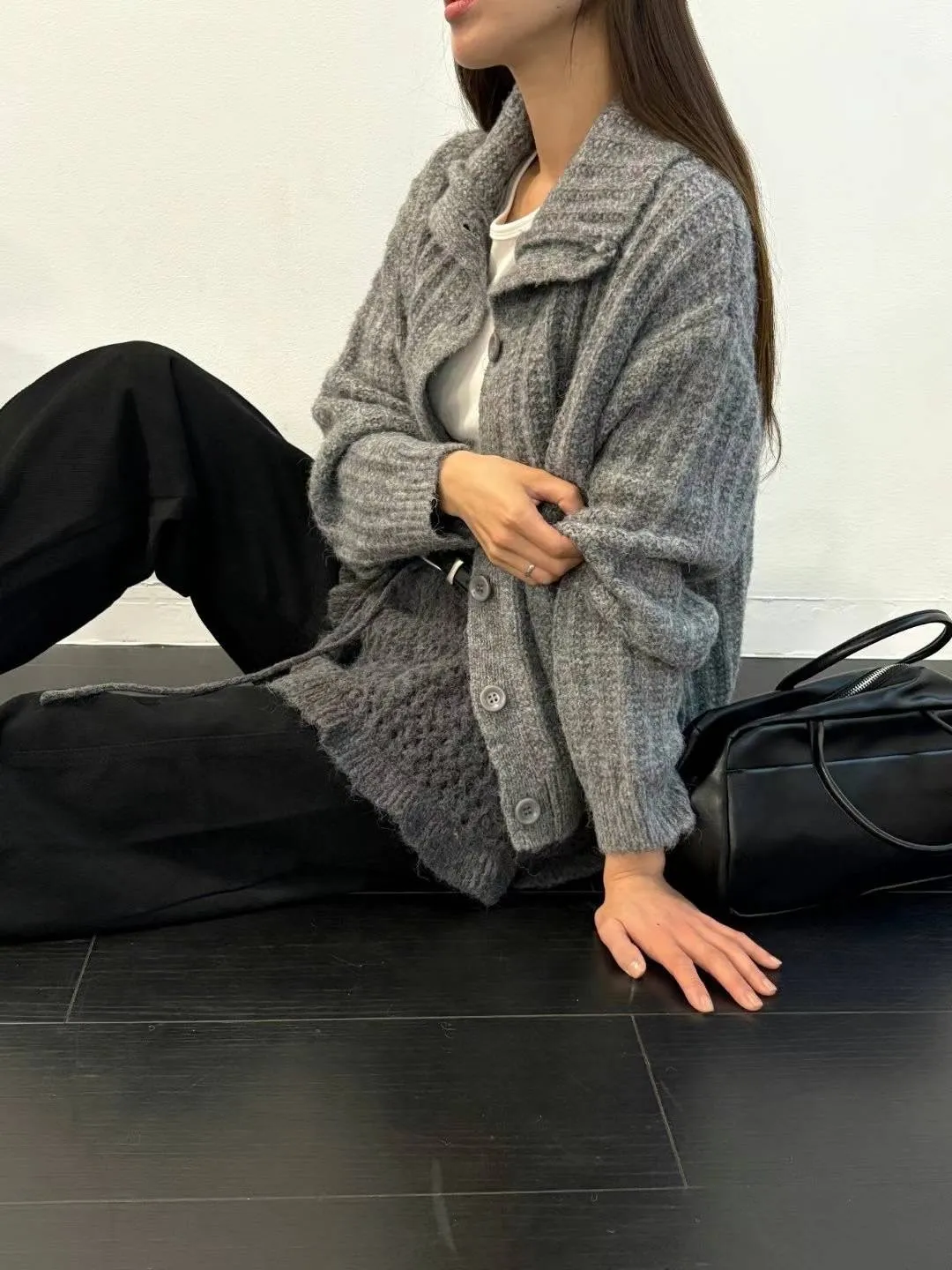 PC460翻領織線排釦毛衣 米 灰 黑 官網價$850 線上價$820