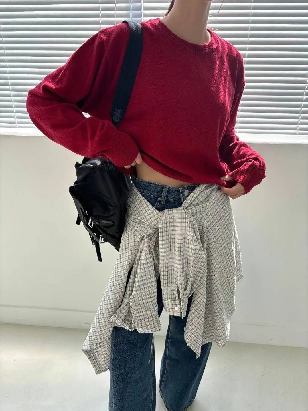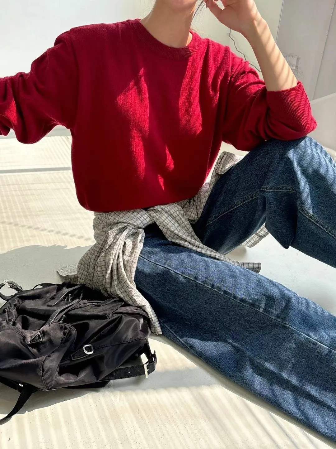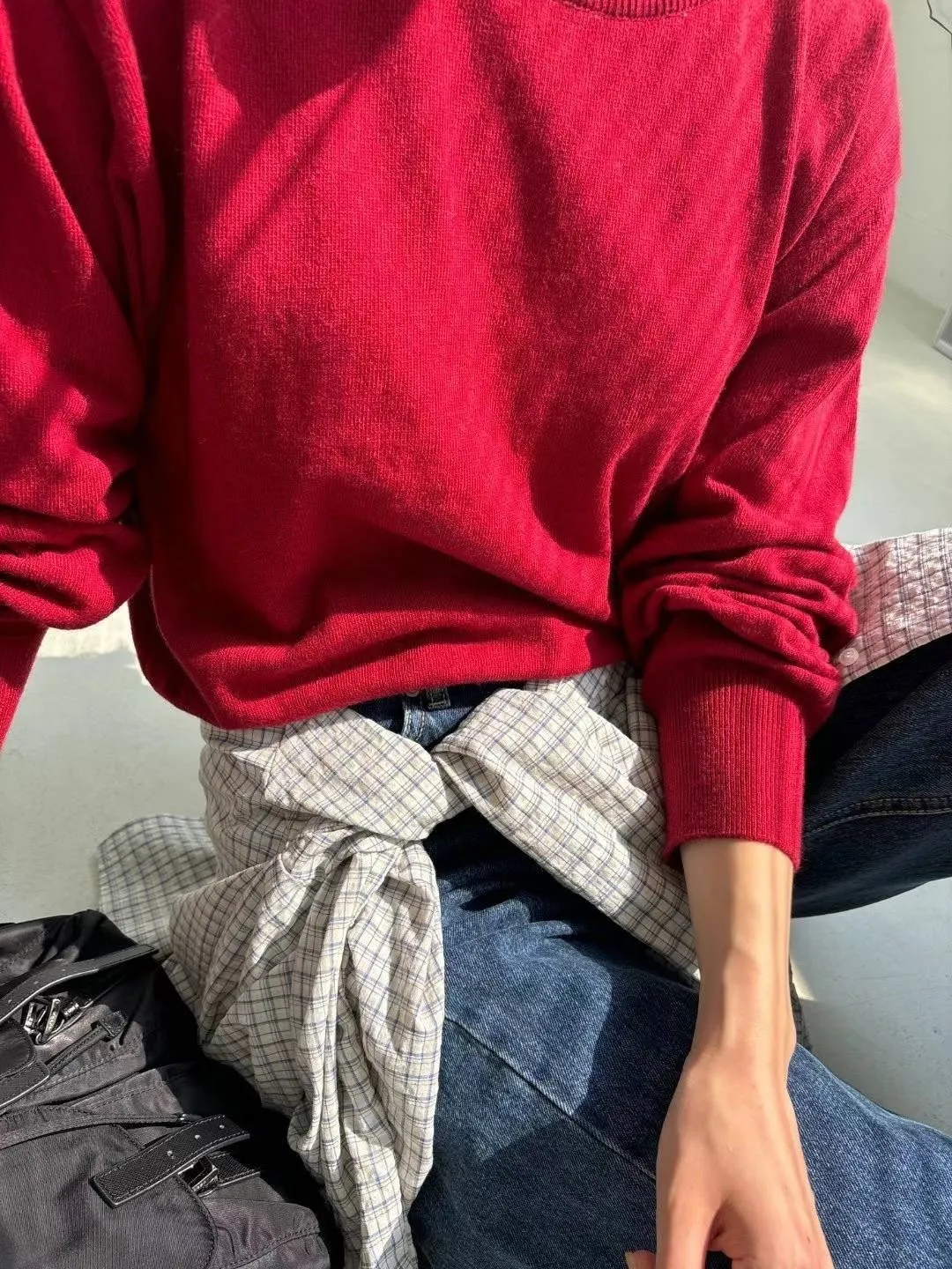 PC463極舒服細緻鬆弛感圓領毛衣 米 灰 藍 紅 官網價$699 線上價$669