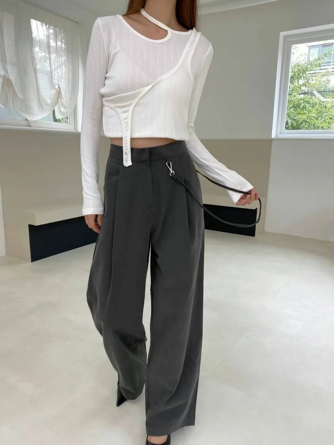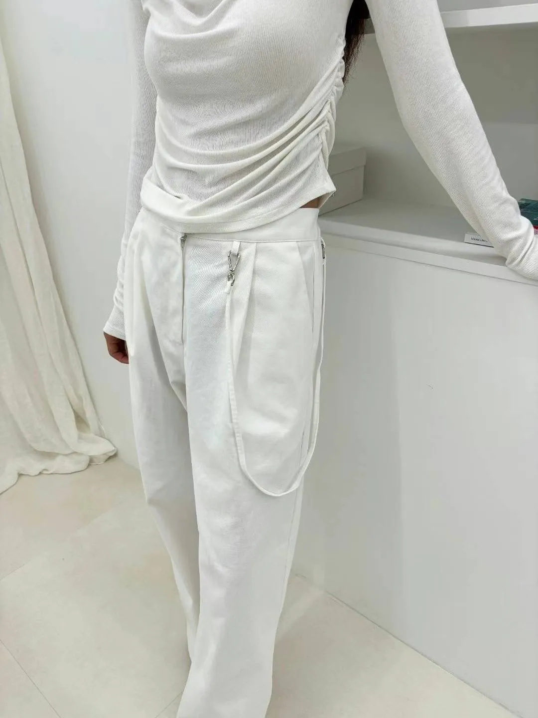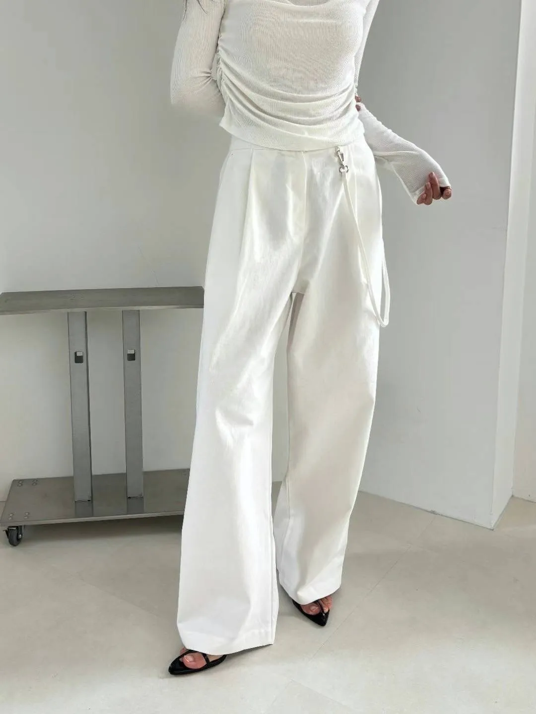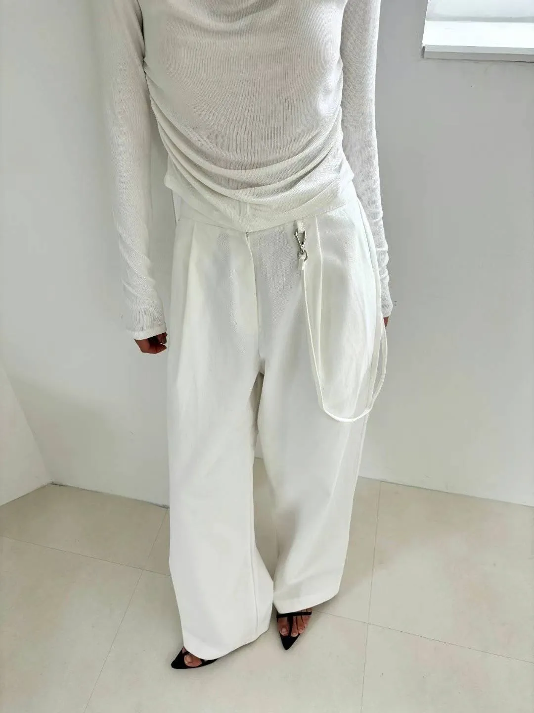PC464薄款蜜桃絨寬直筒長褲 白 綠 官網價$990 線上價$960