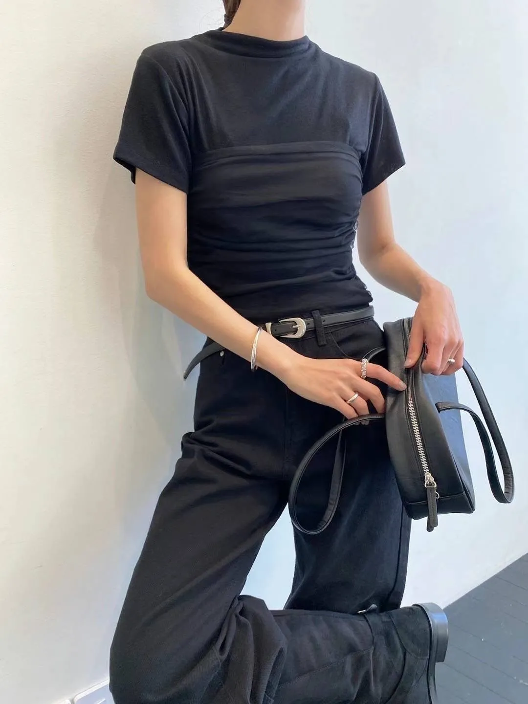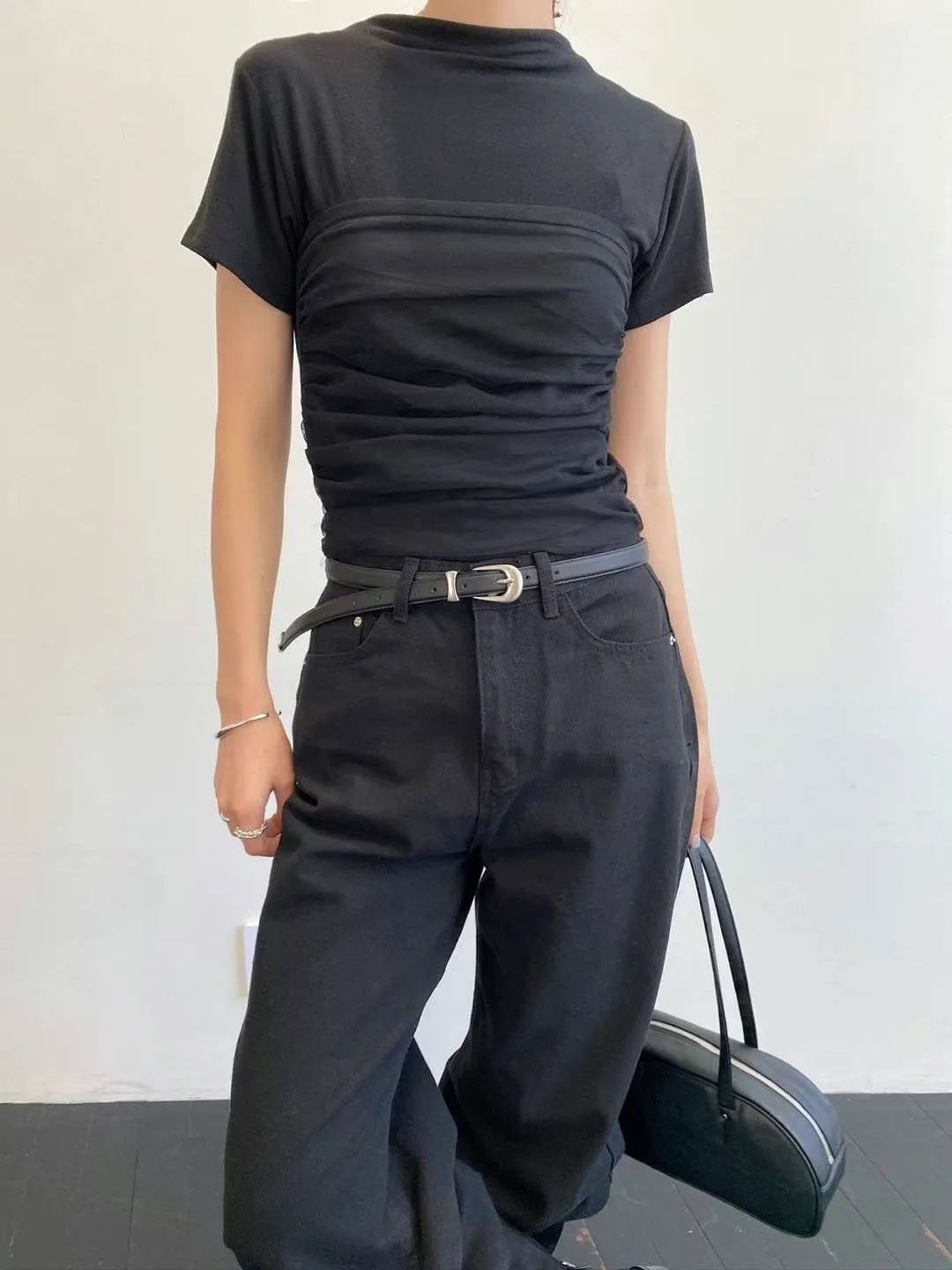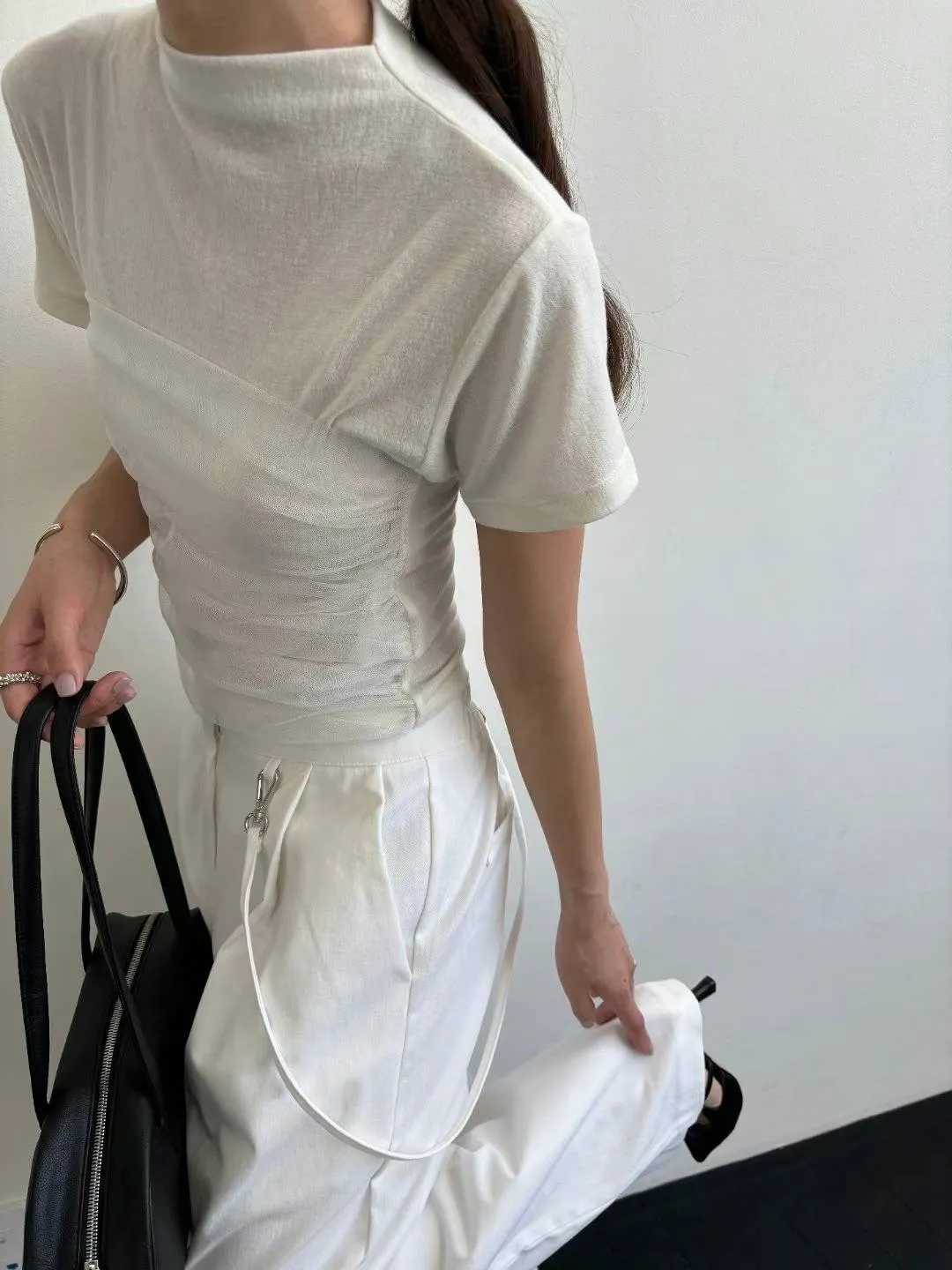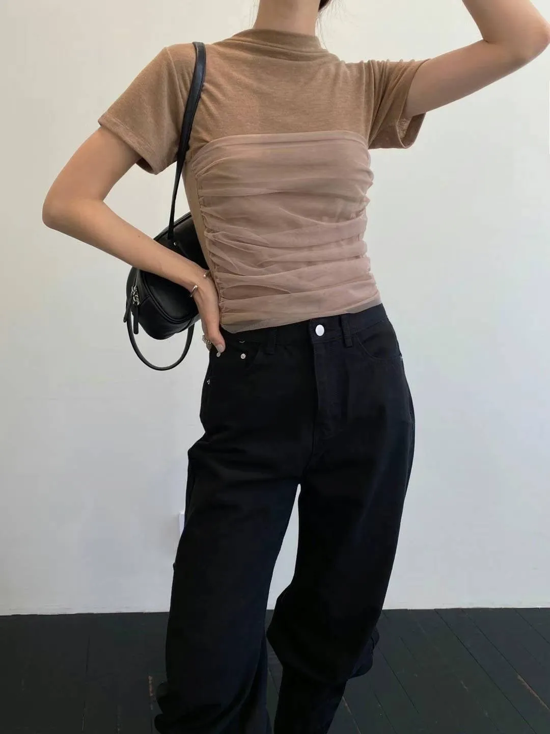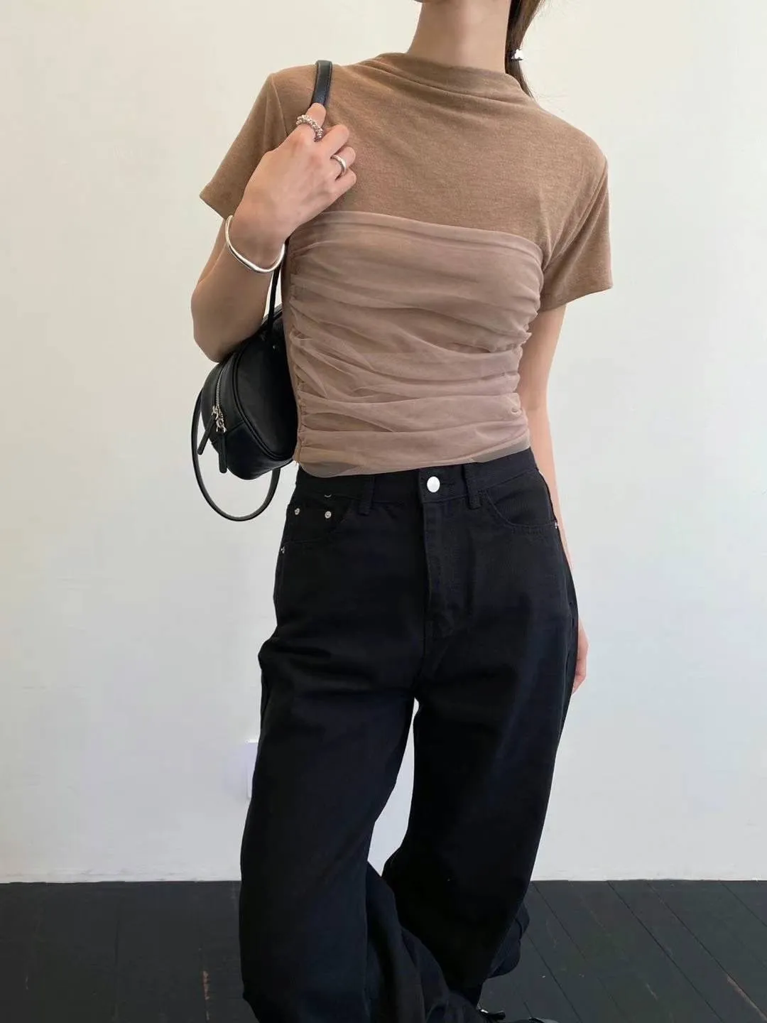 PC465網紗雲朵層次短袖上衣 白 咖 黑 官網價$470 線上價$440