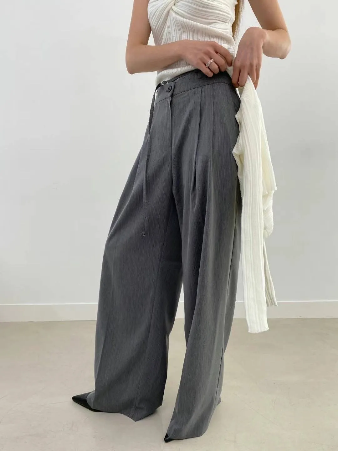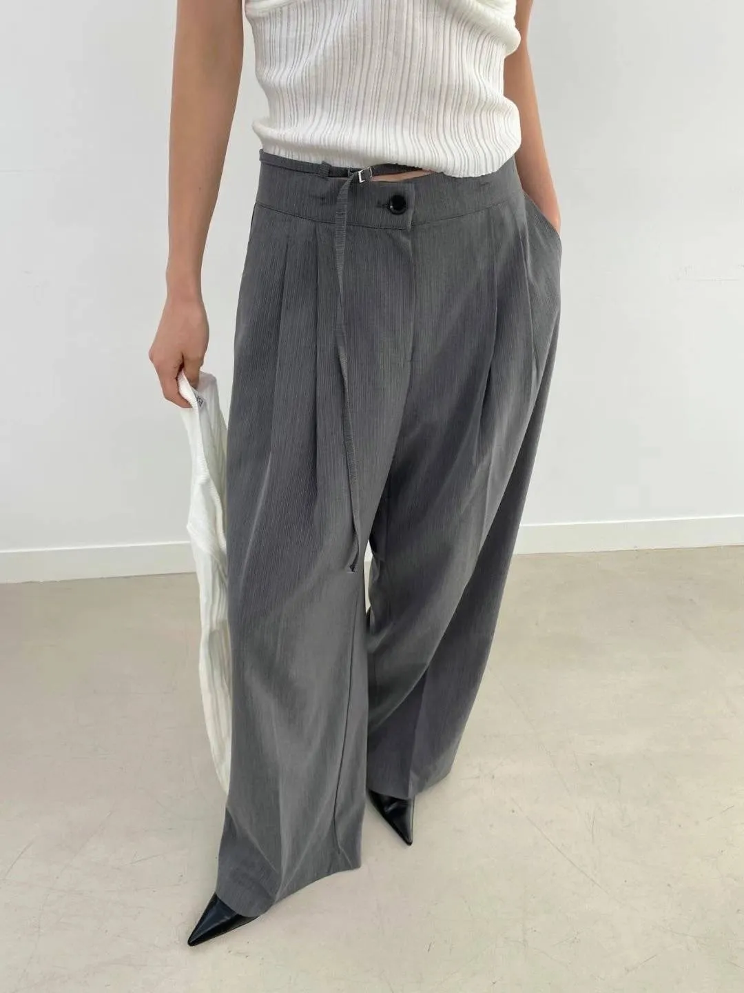 西裝面料 後腰鬆緊 釦鍊穿脫 有口袋 寬褲管順身修飾