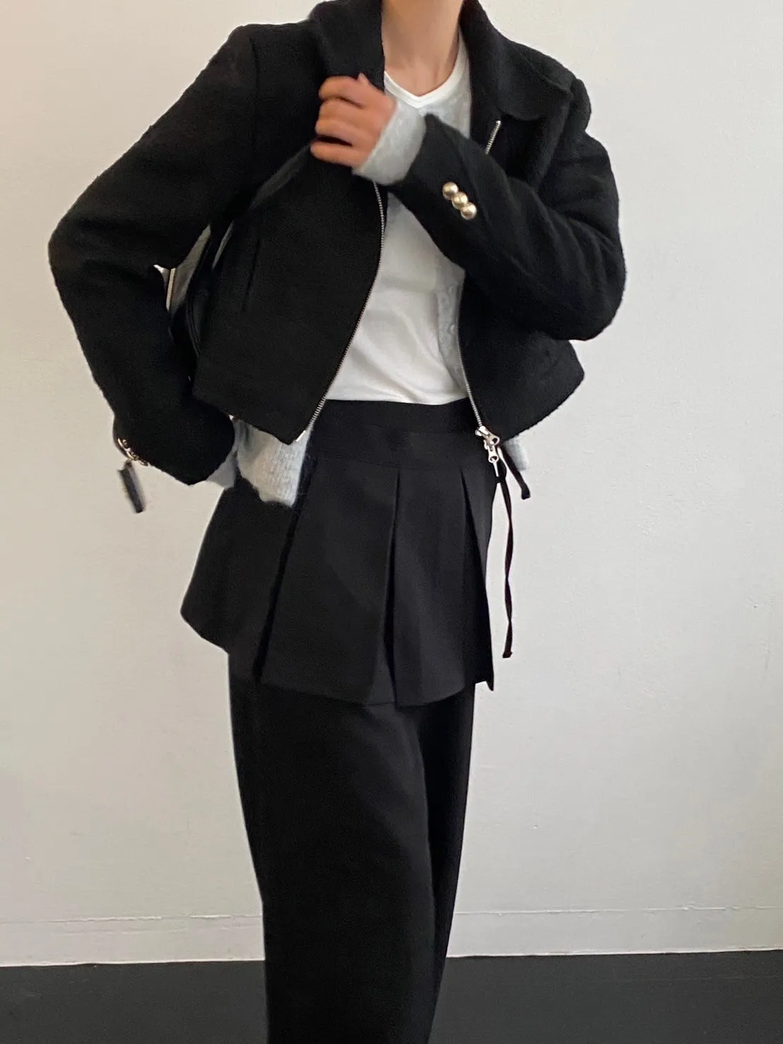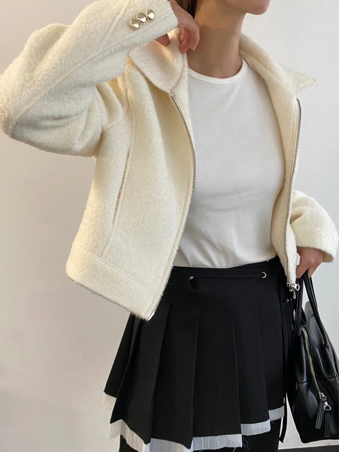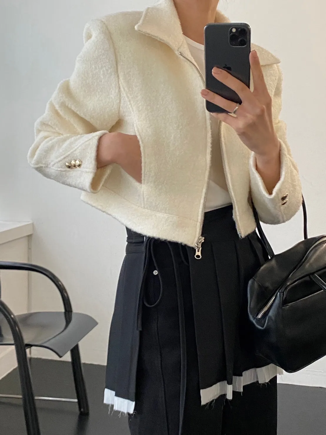 PC471最顯瘦羊毛拉鍊短版外套 米 黑 官網價$1750 線上價$1720