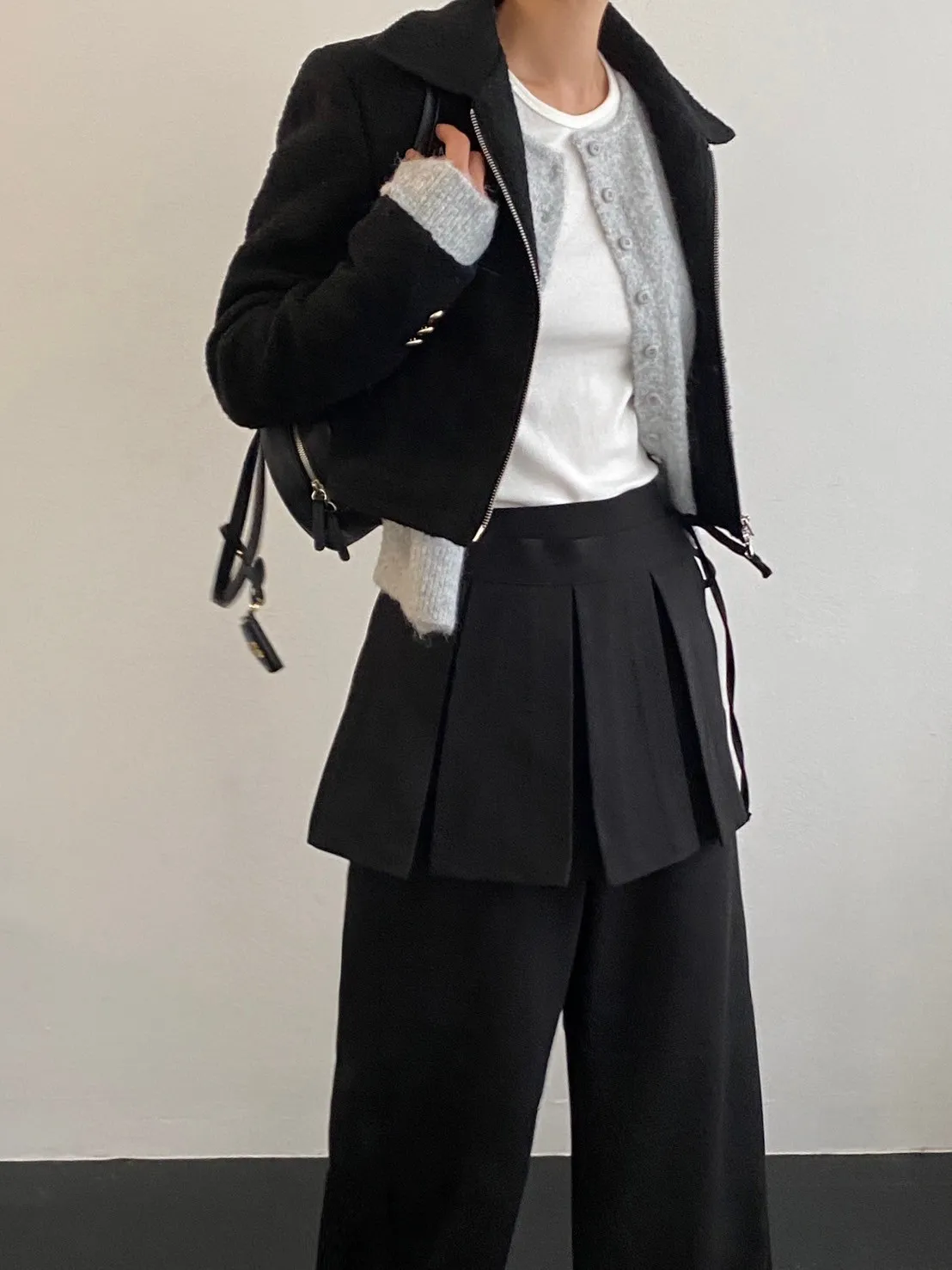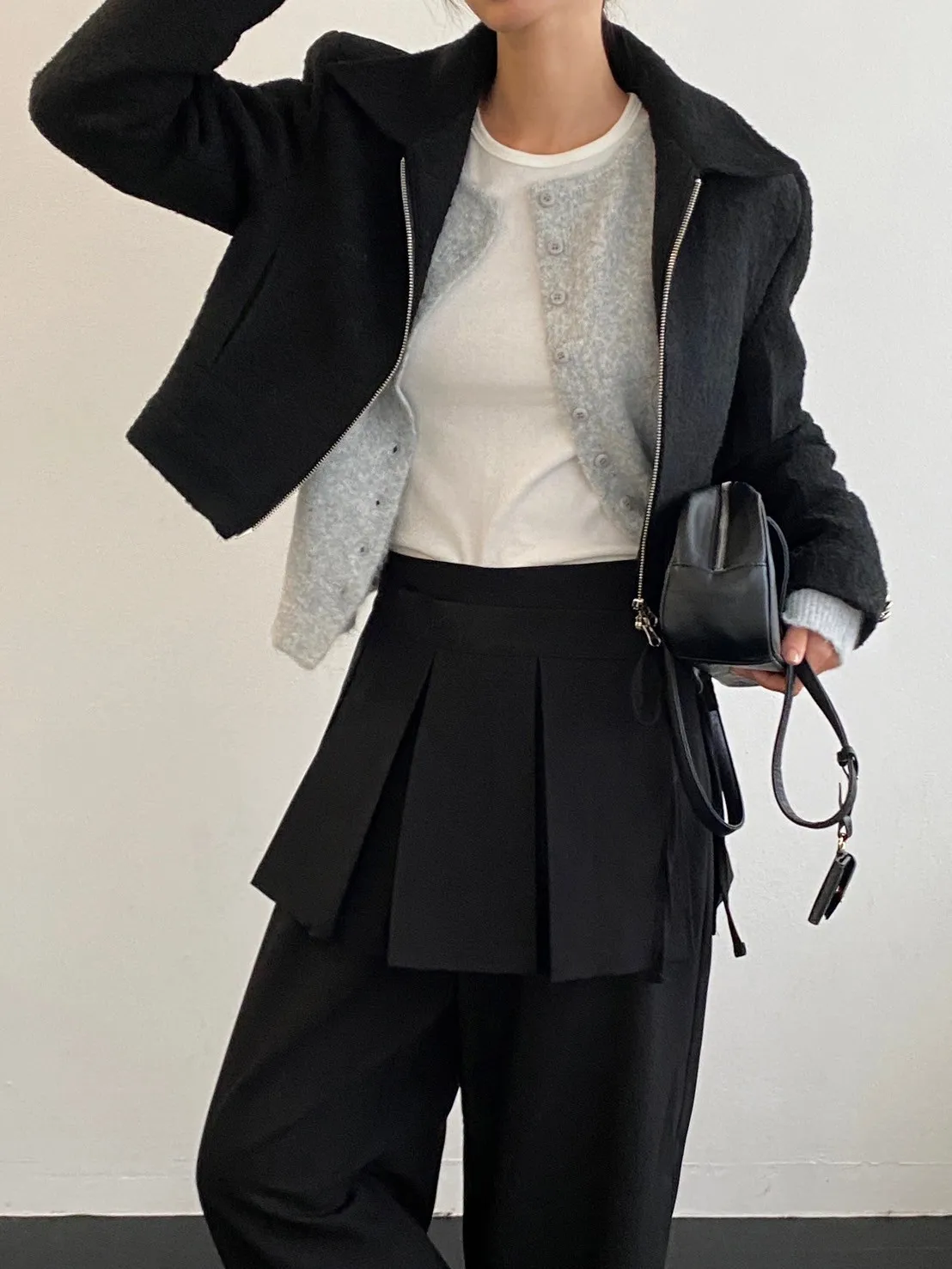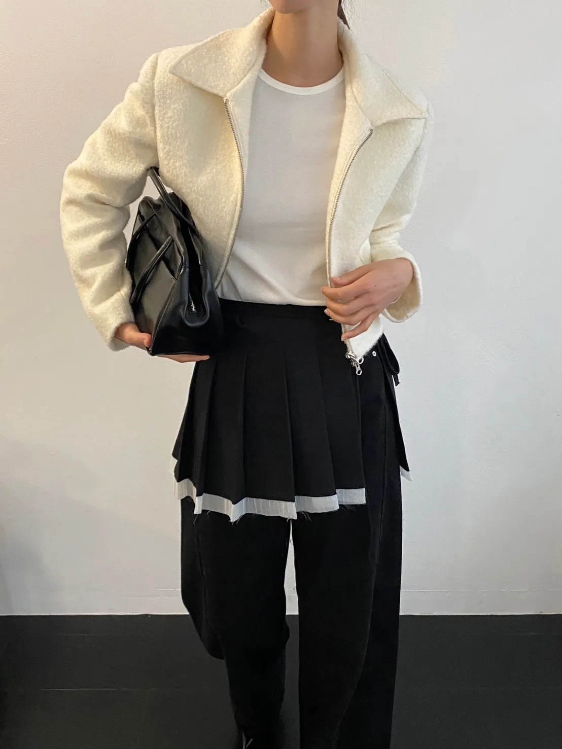 PC471最顯瘦羊毛拉鍊短版外套 米 黑 官網價$1750 線上價$1720