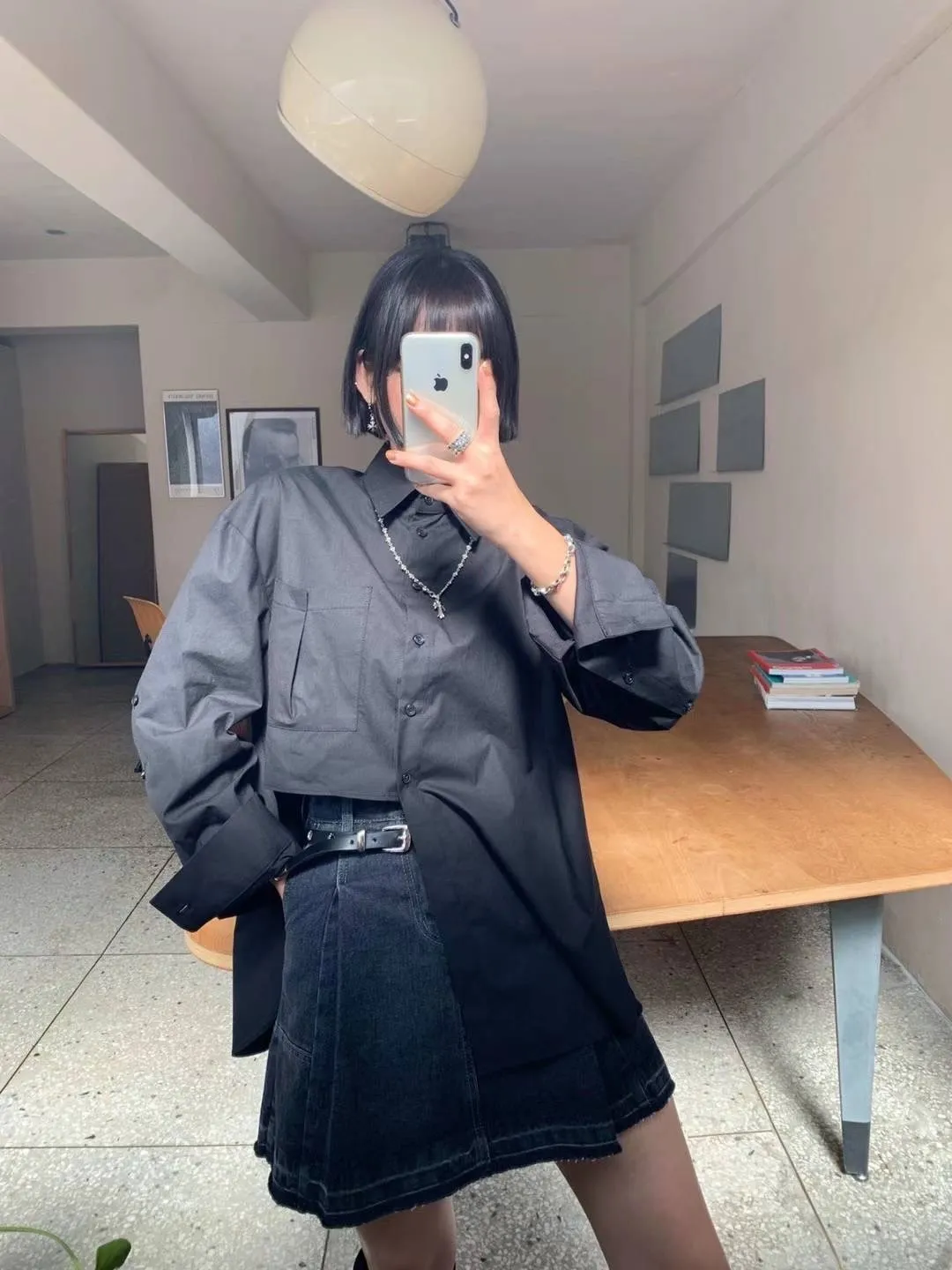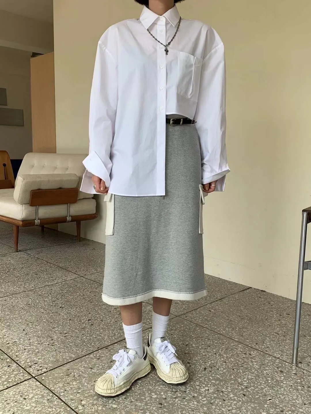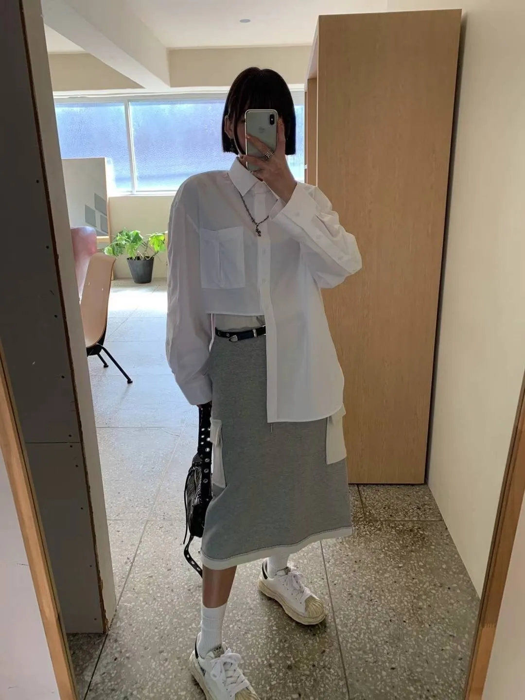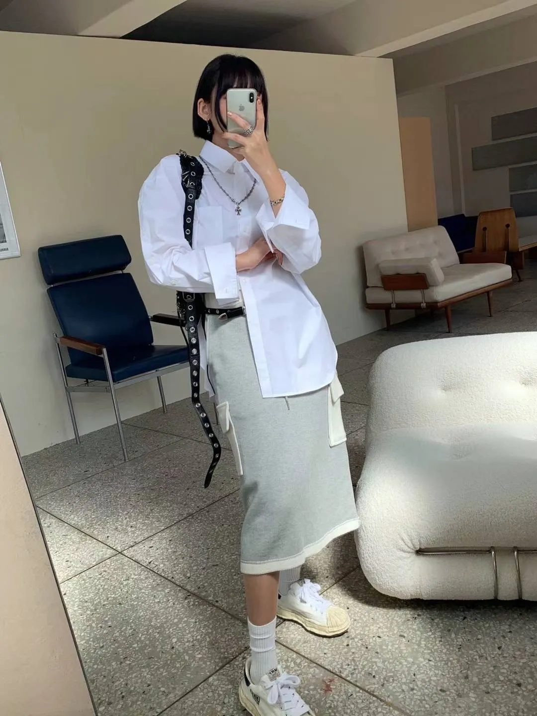 棉100% 四季款 落肩版型 袖子排扣 背面抓皺 側開岔前短後長 白色不透