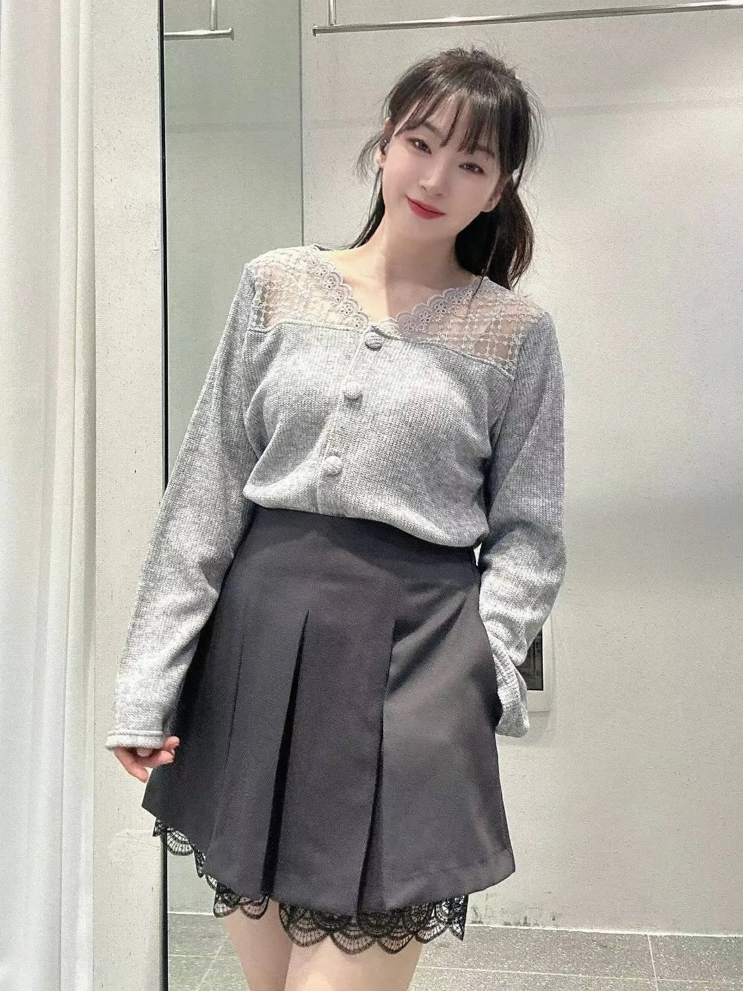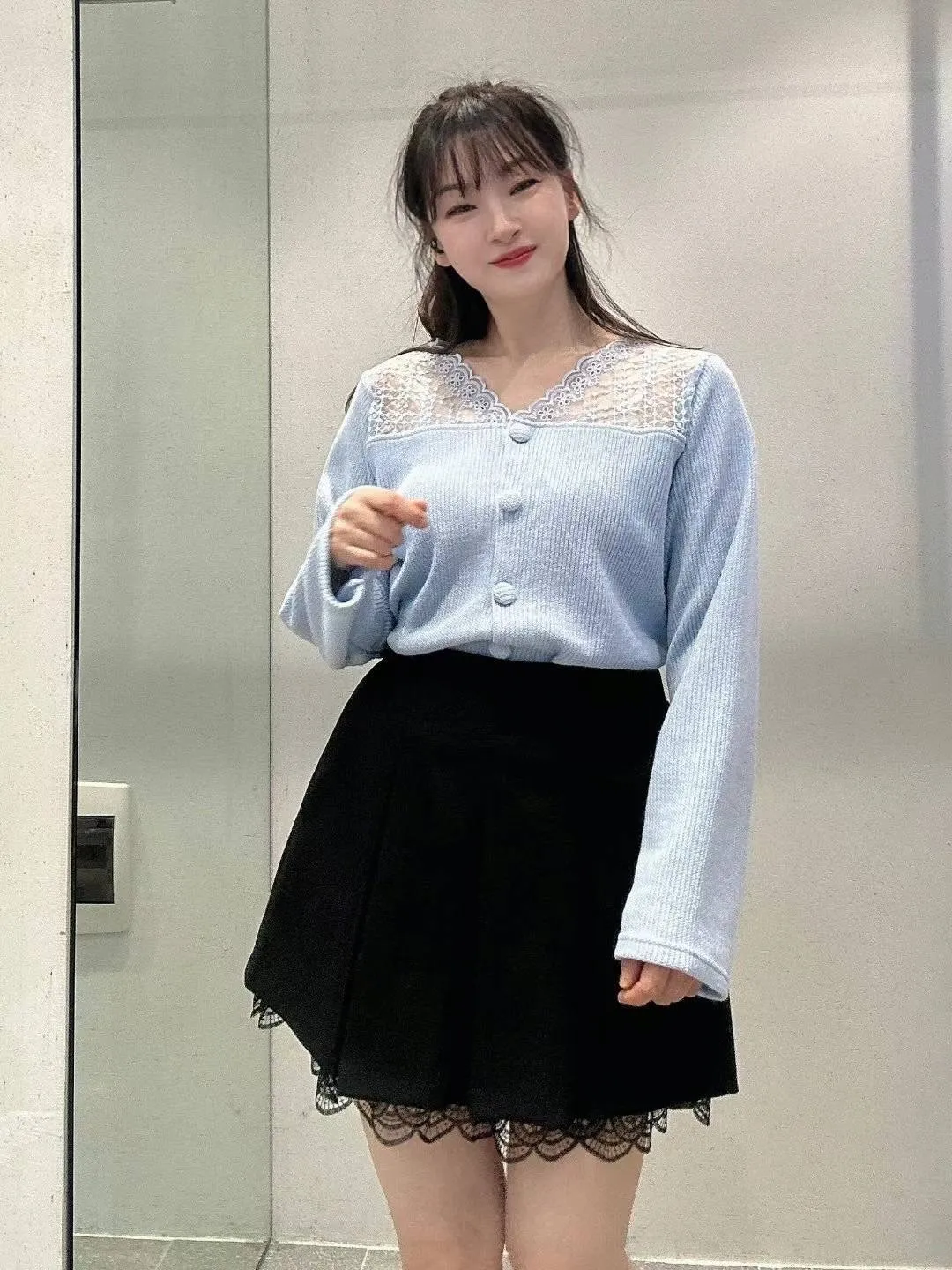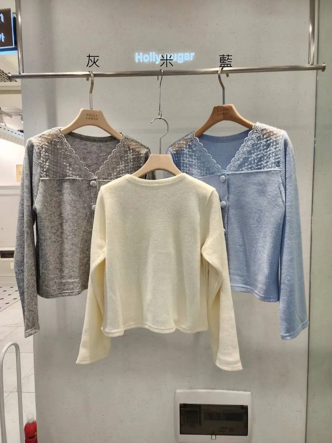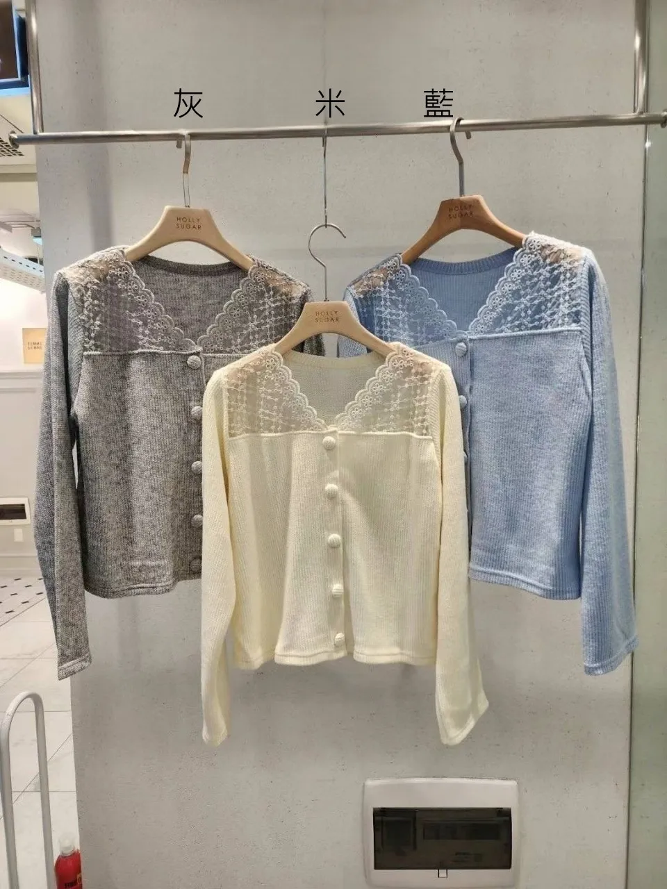 壓克力+羊毛20+棉蕾絲 透膚美肩 排釦穿脫 超敏肌略過