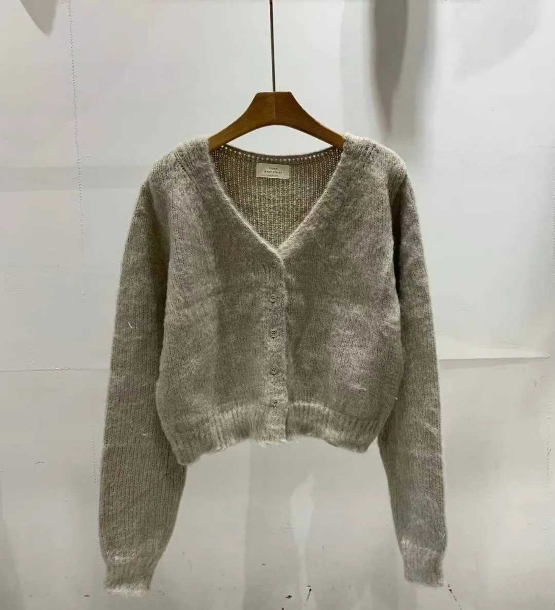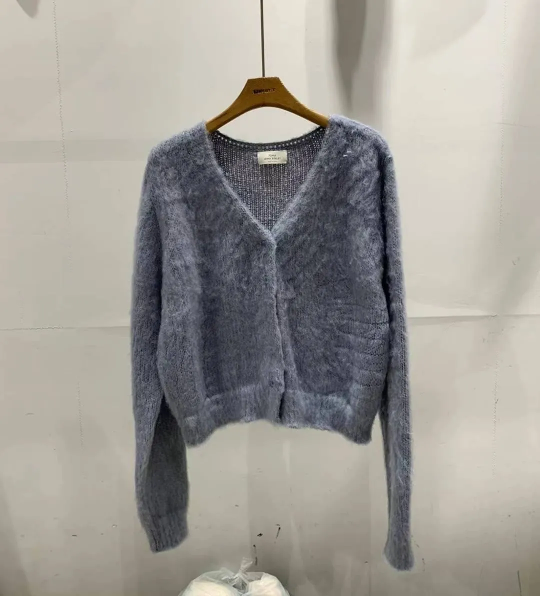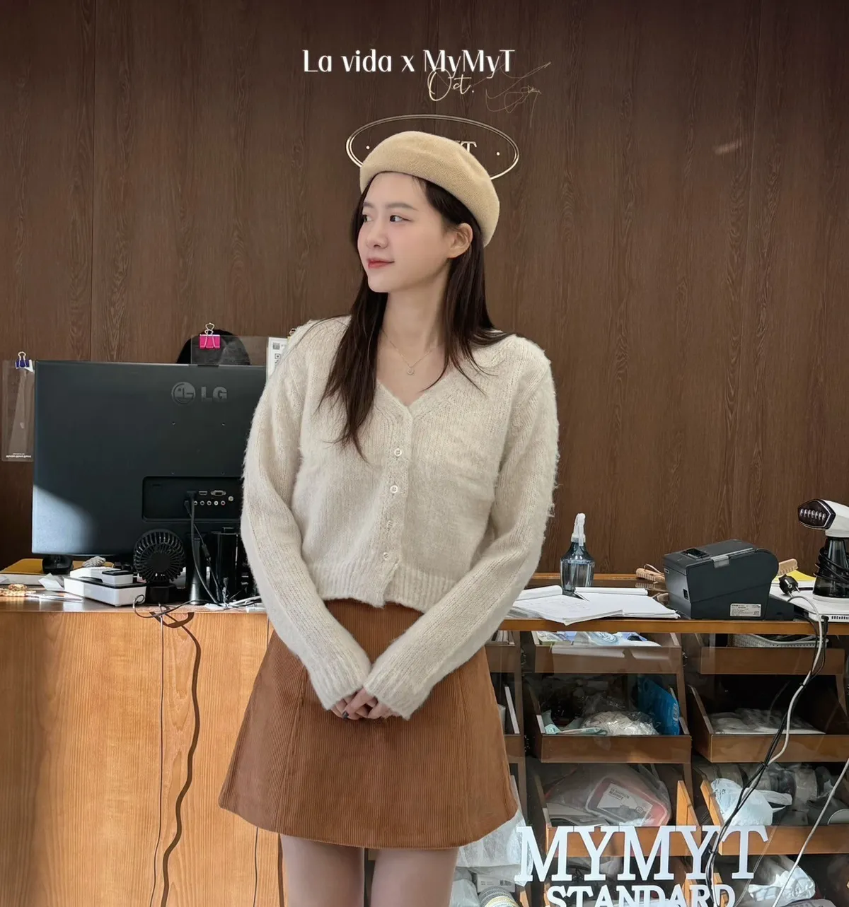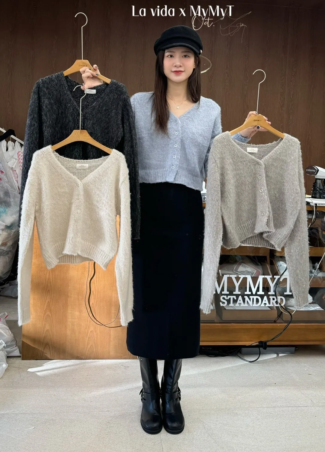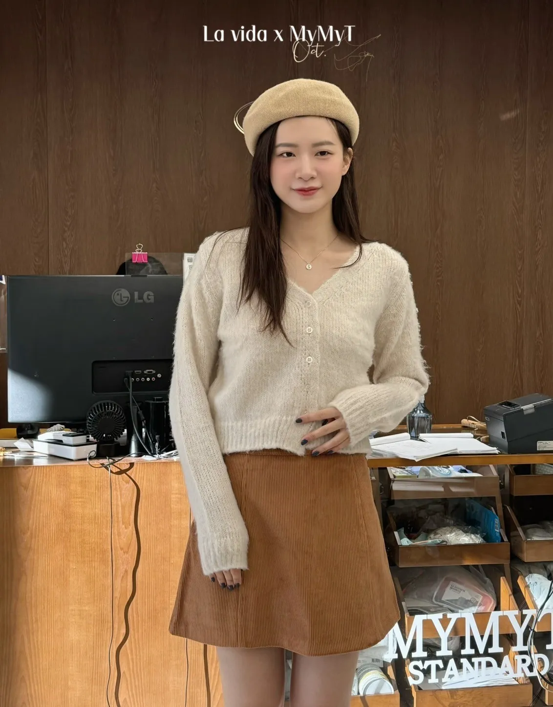 棉+聚酯 親膚舒適 外層細毛 裡面線圈棉感 V領排扣