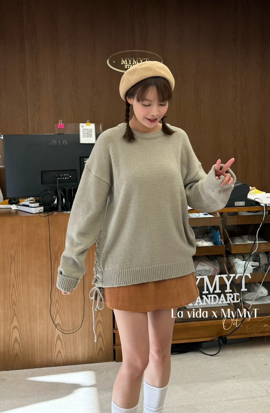 棉+聚酯 QQ柔軟 敏肌舒適 側腰綁帶設計 手袖長長奶萌感