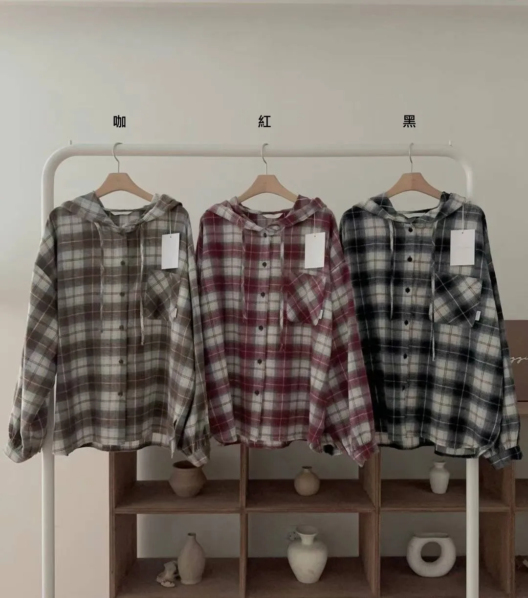 PC617格紋連帽上衣 黑 咖 紅 官網價$1350 線上價$1320