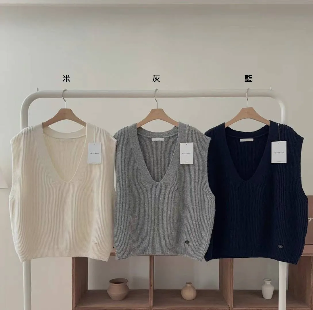 PC621深V領羊毛背心 米 灰 藍 官網價$1070線上價$1040