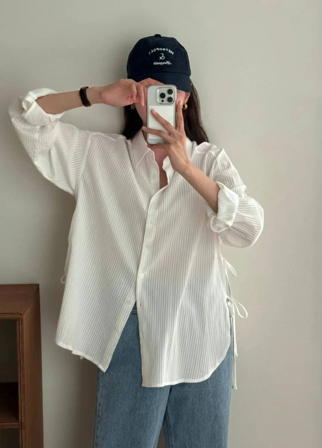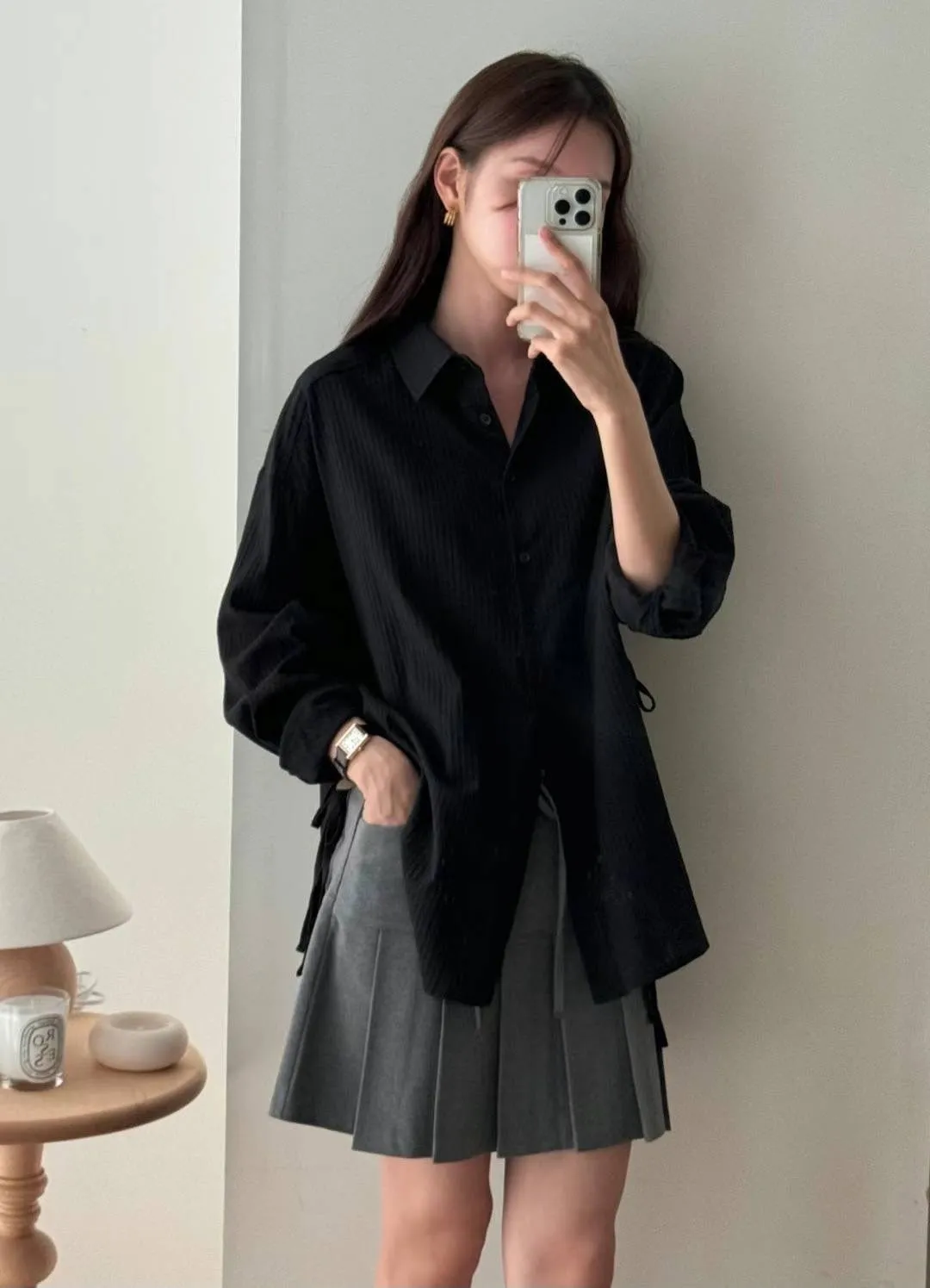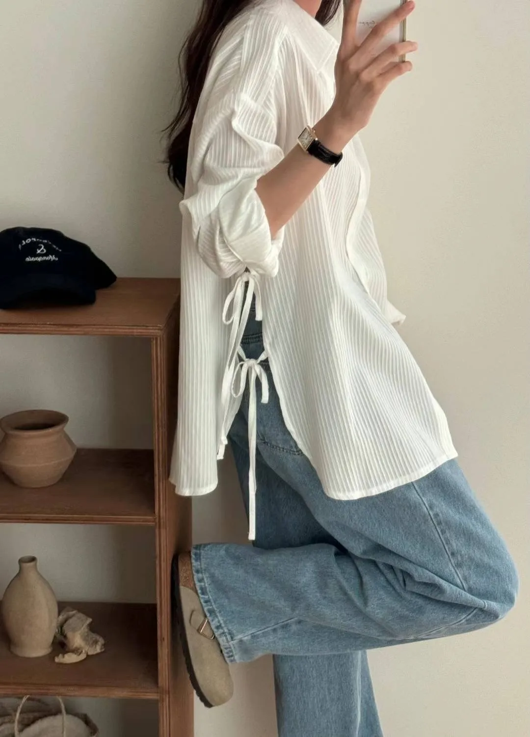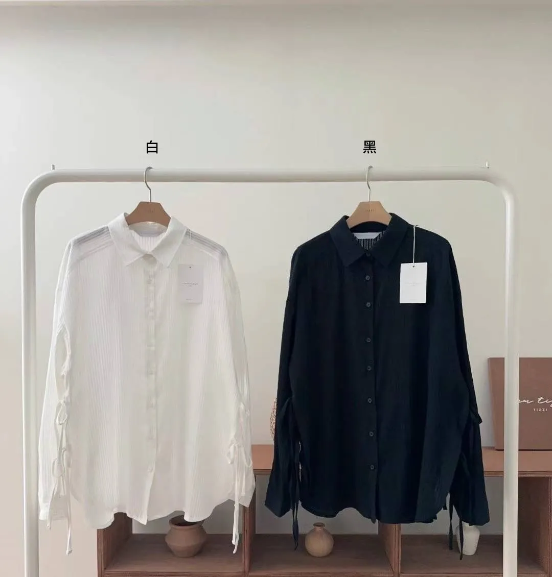 PC622側綁帶襯衫上衣 白 黑 官網價$1299 線上價$1269