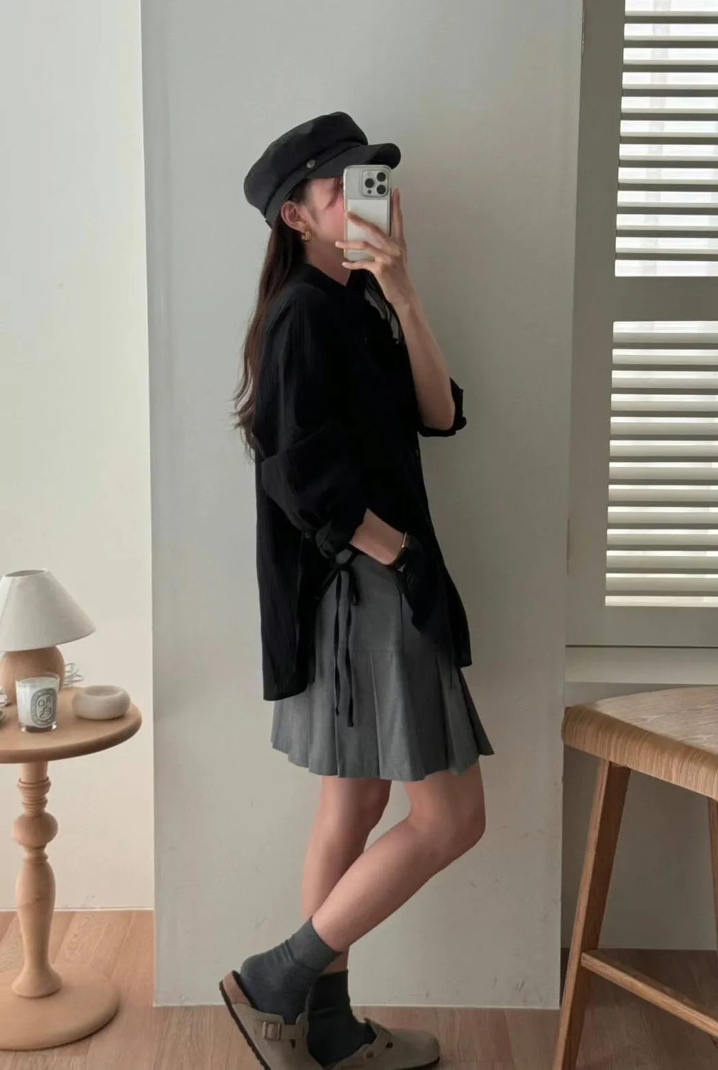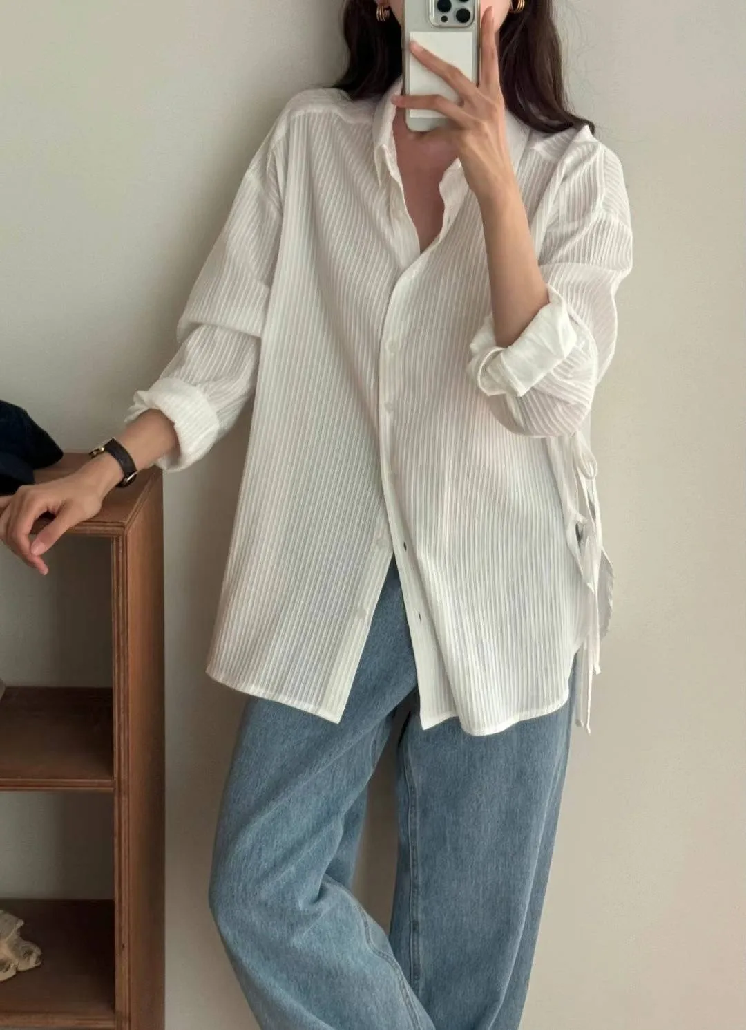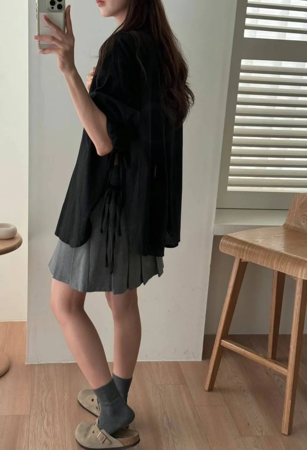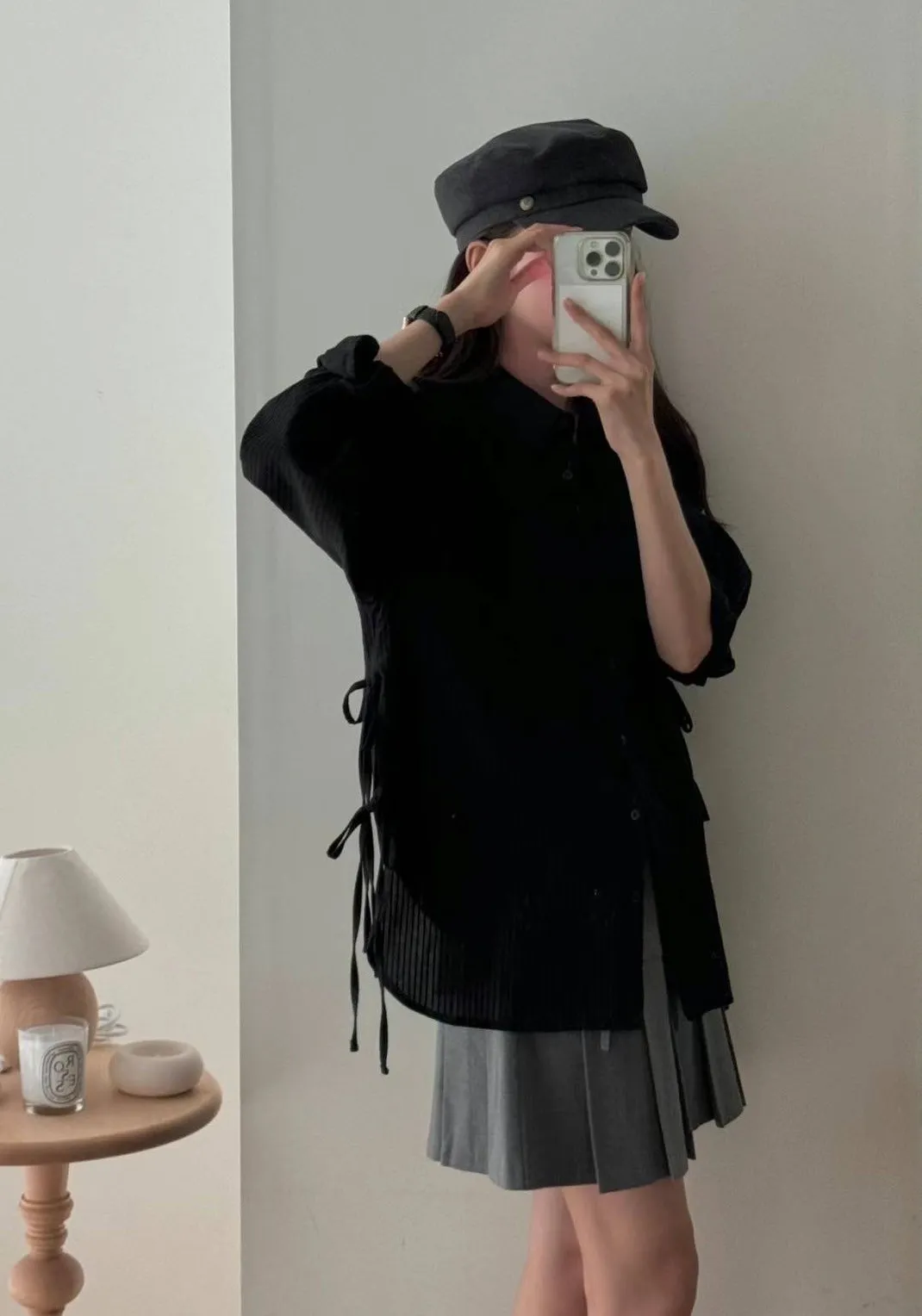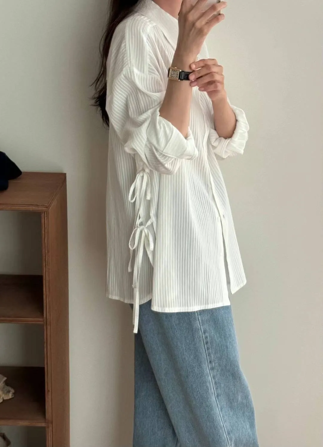 PC622側綁帶襯衫上衣 白 黑 官網價$1299 線上價$1269