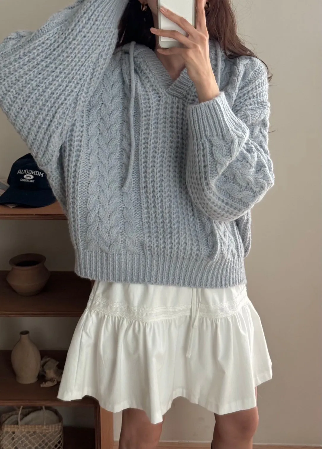 PC624麻花針織V領毛衣 藍 米 官網價$1650 線上價$1620