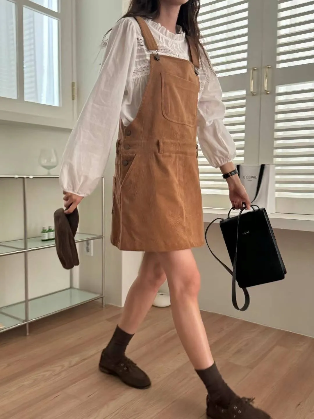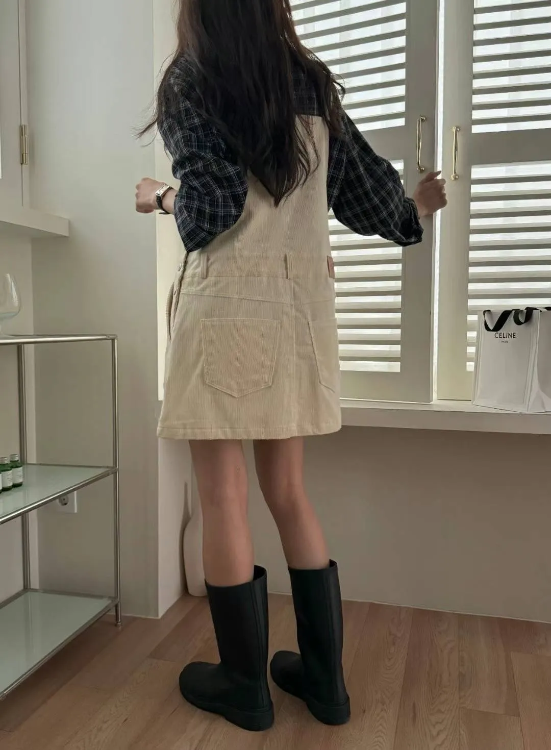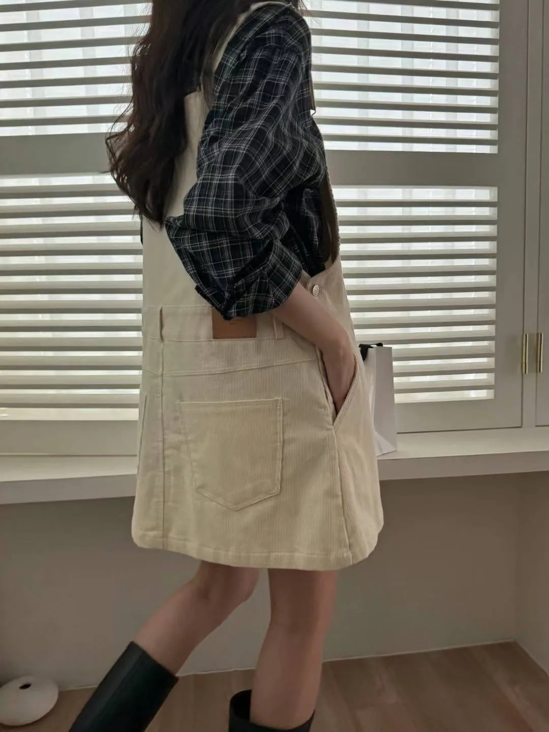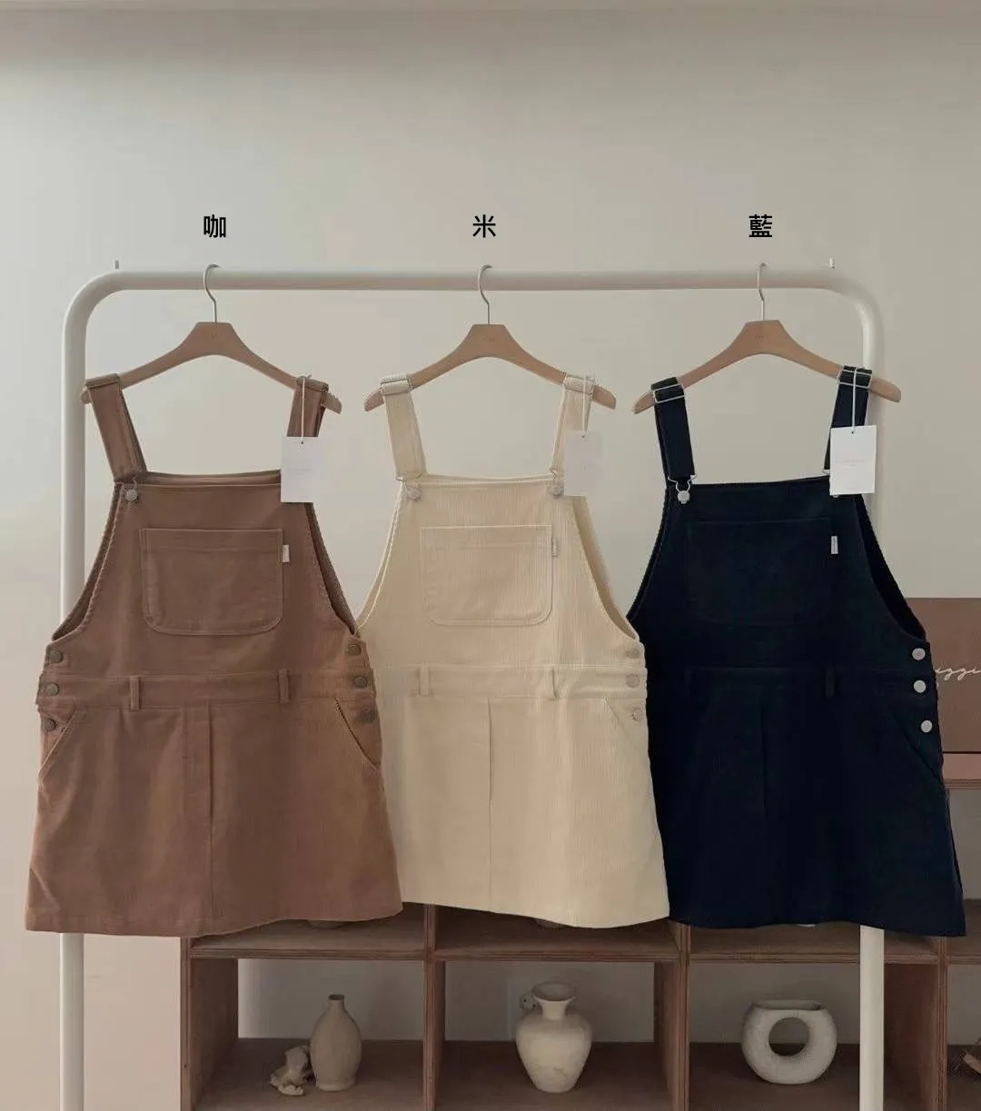 PC628燈心絨吊帶裙 藍 米 咖 官網價$1680 線上價$1650