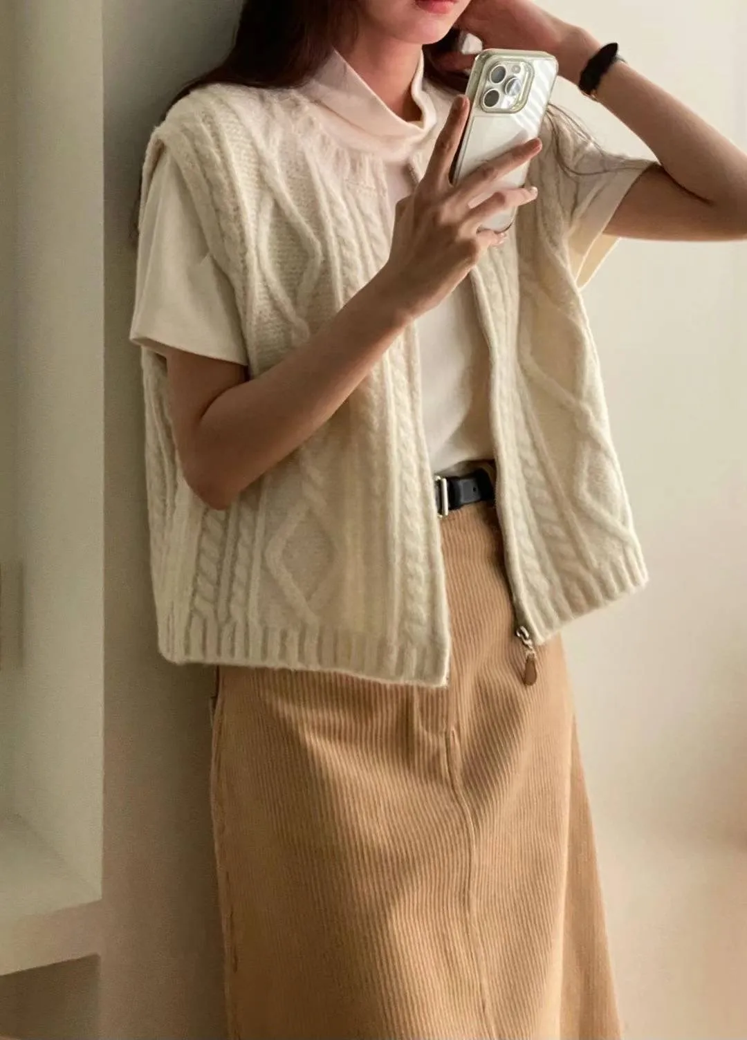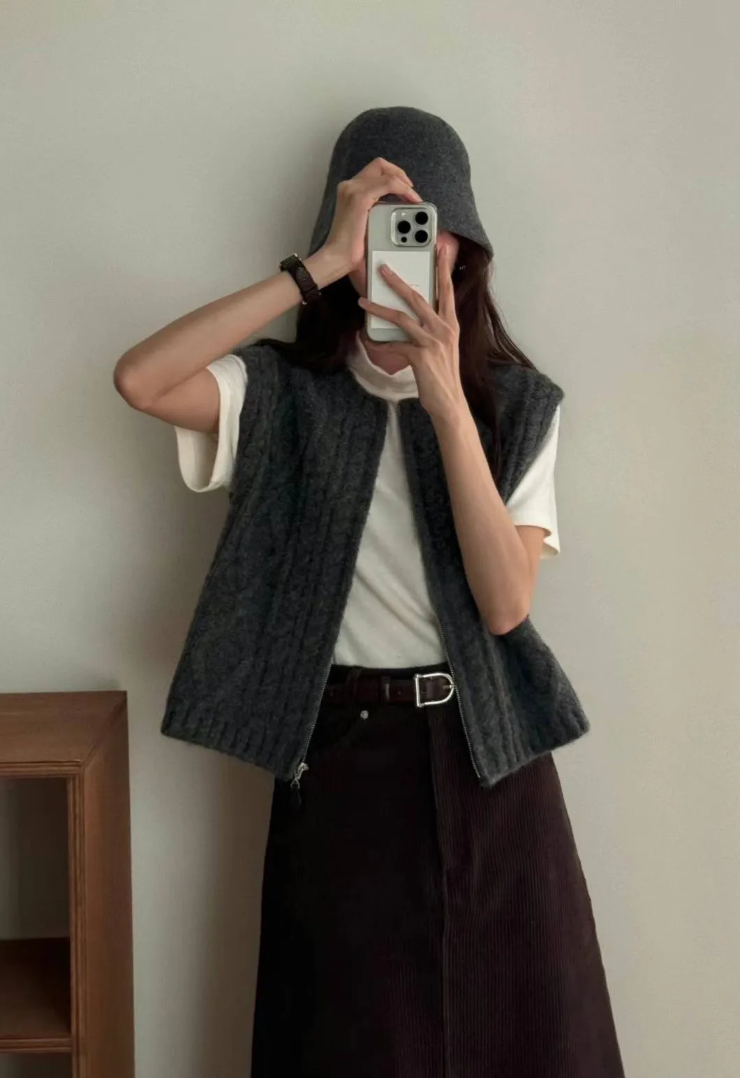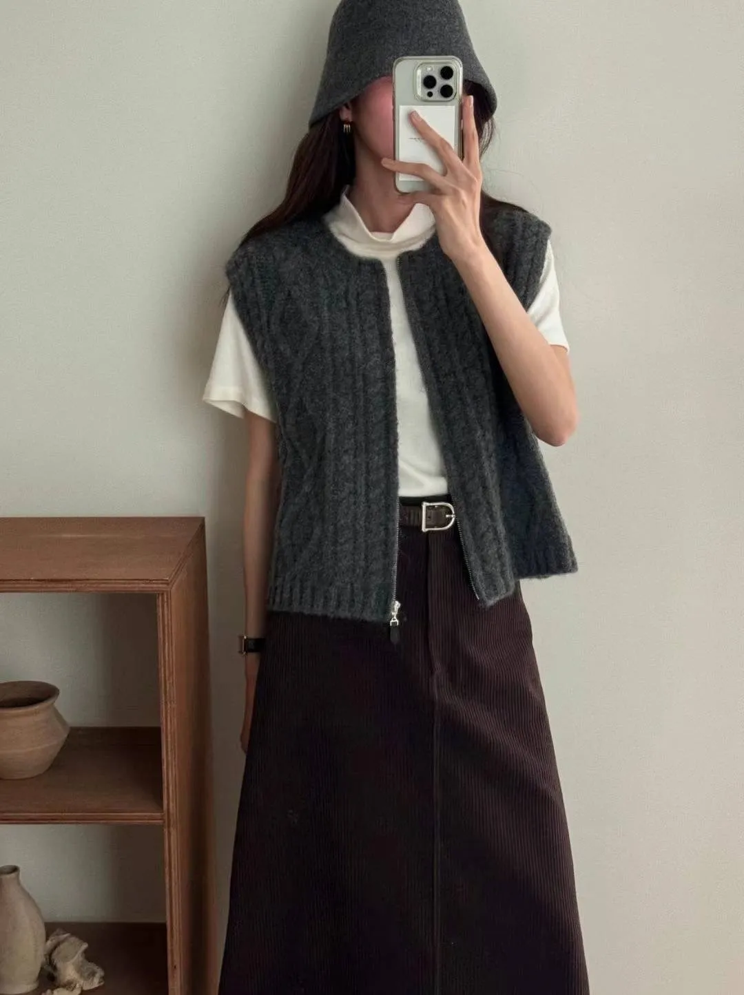 PC642許願款麻花針織拉鍊外套 白 灰 官網價$1120 線上價$1090