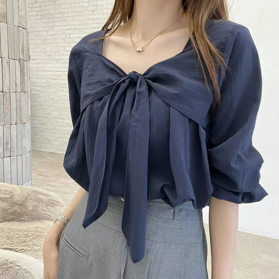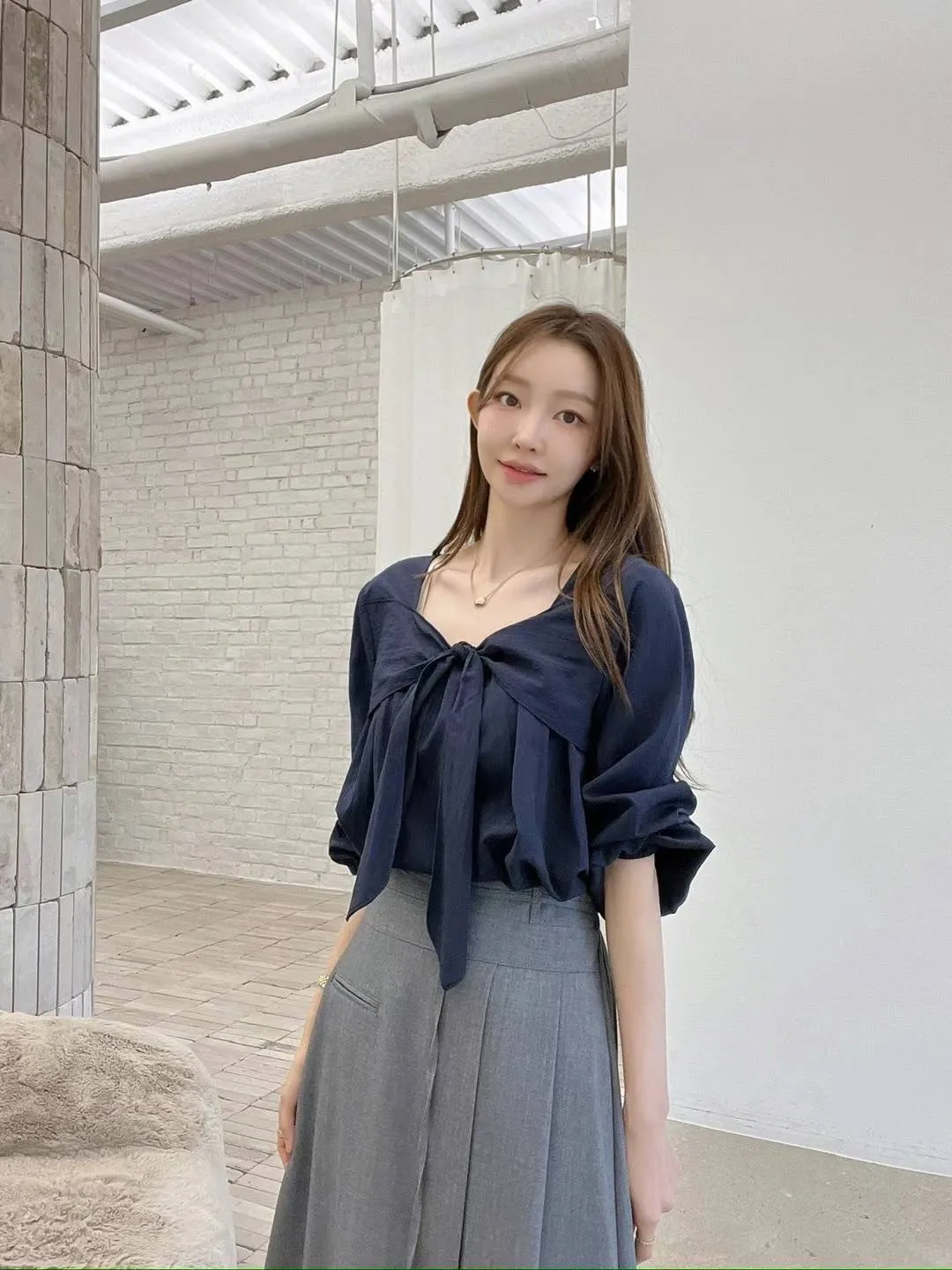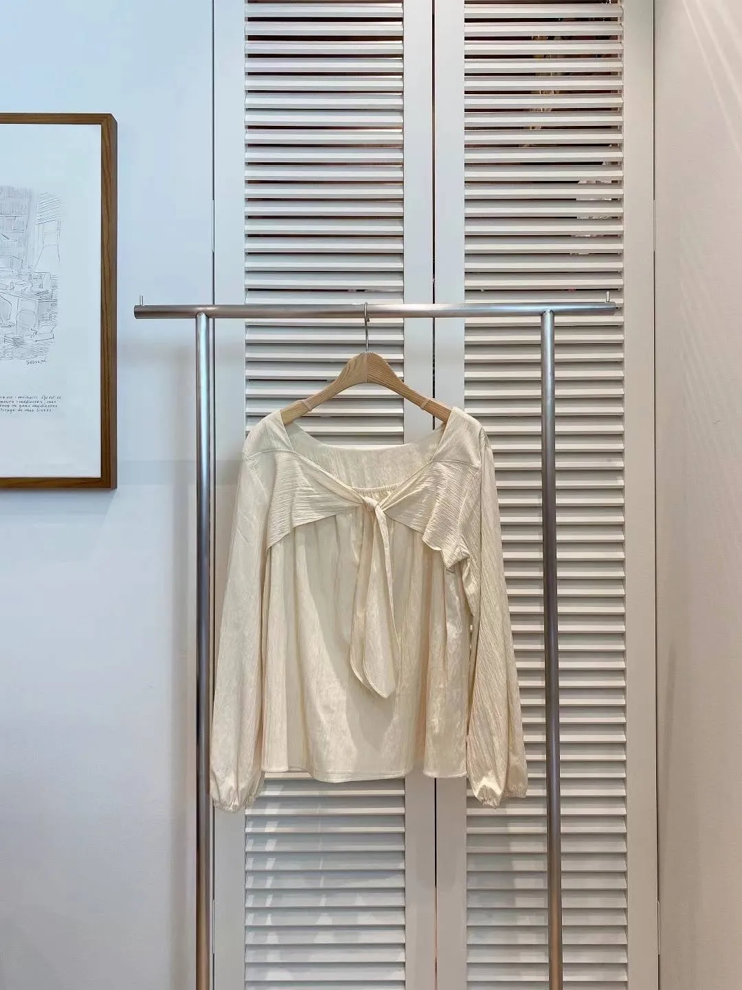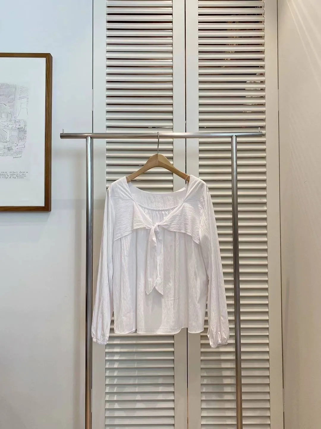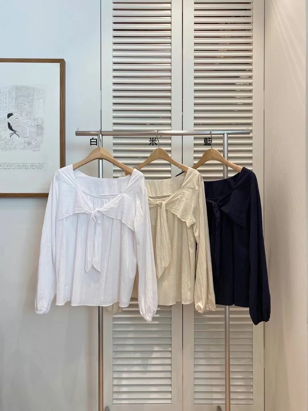 PC667方領罩衫胸綁帶上衣 白 米 藍 官網價$1150 線上價$1120