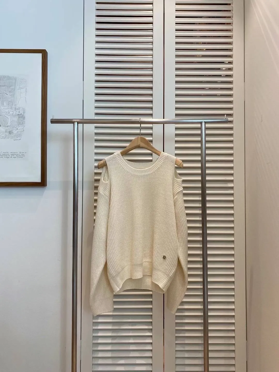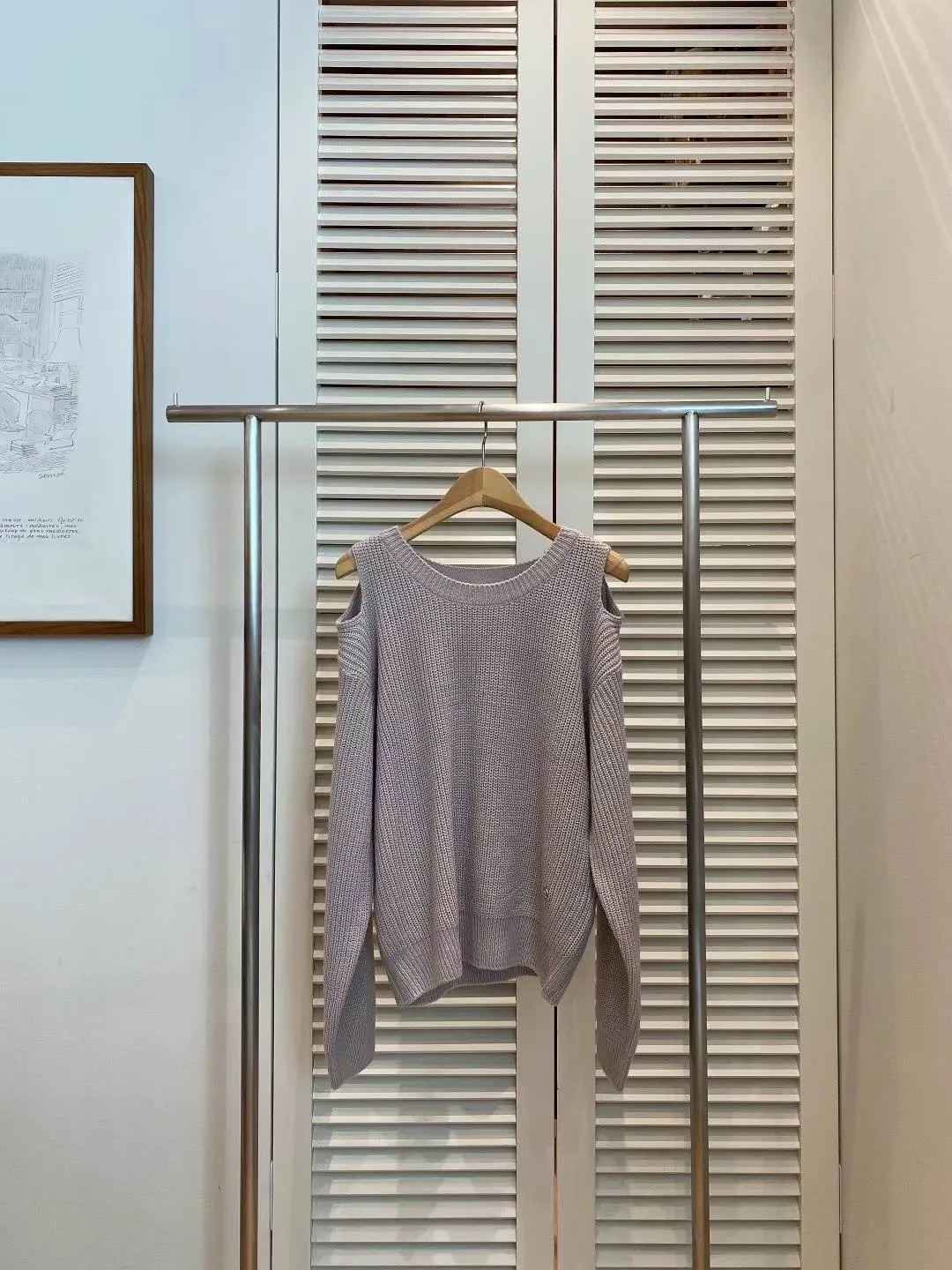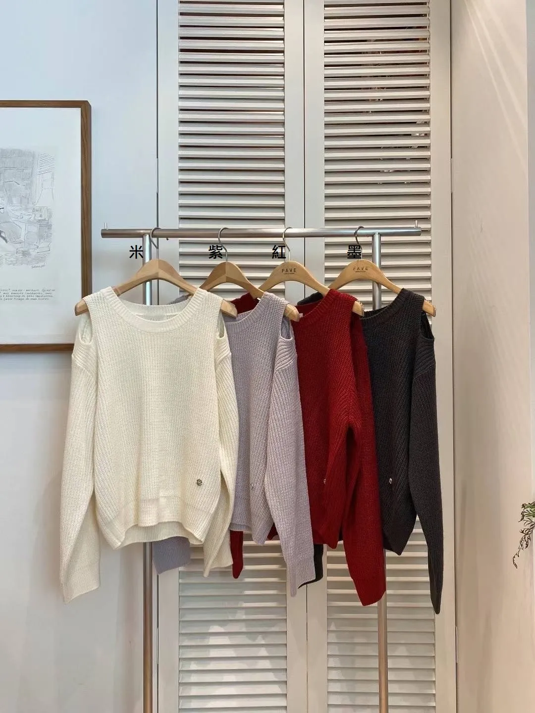 PC673小巧思簍肩針織上衣 米 紫 紅 墨 官網價$1050 線上價$1020