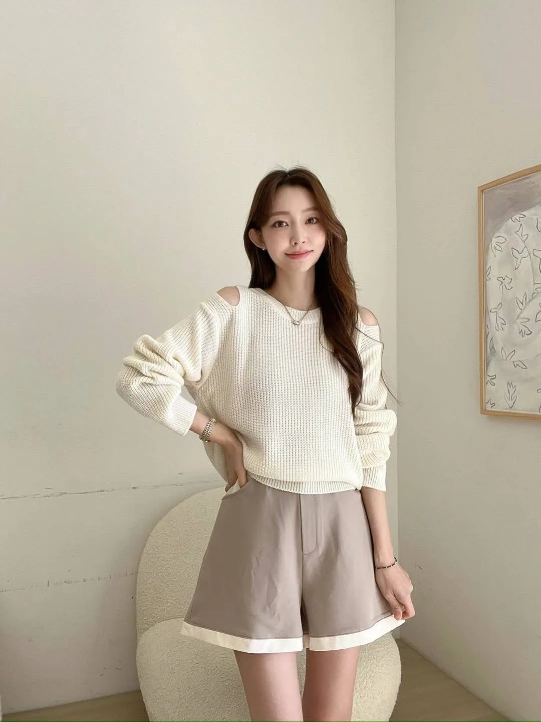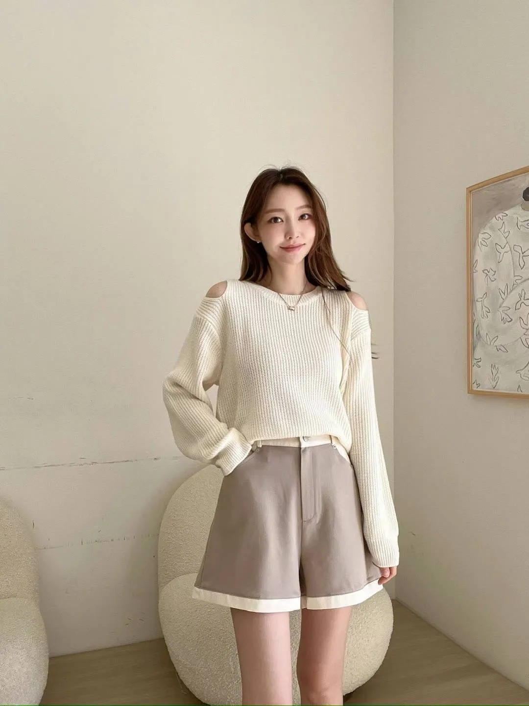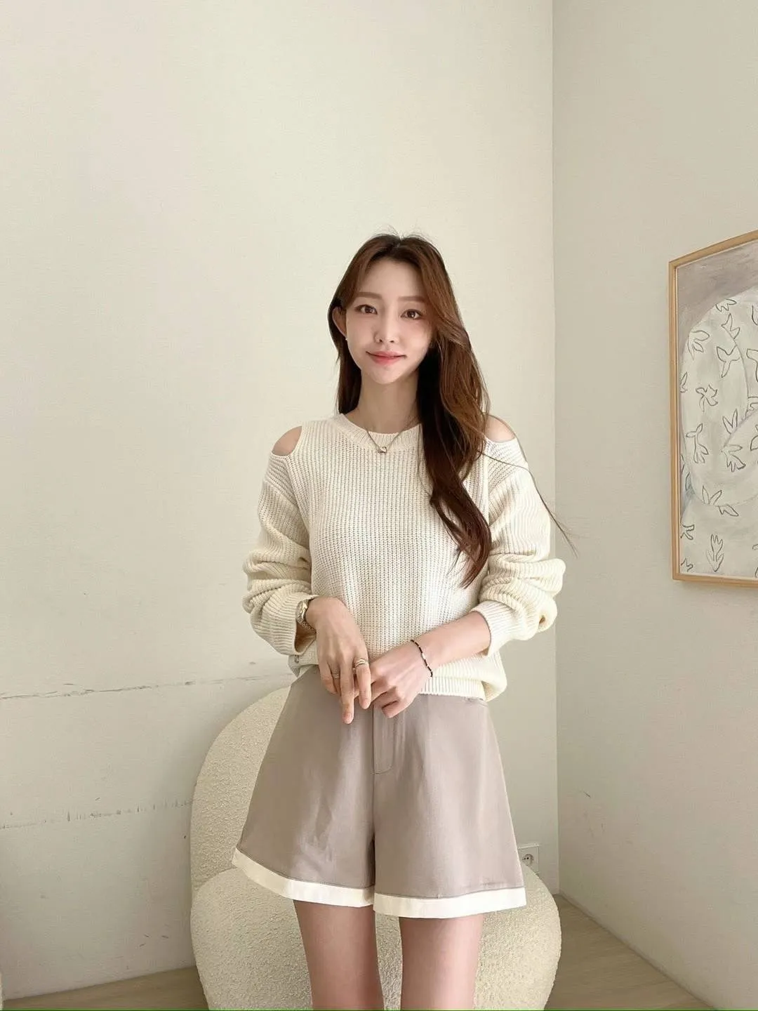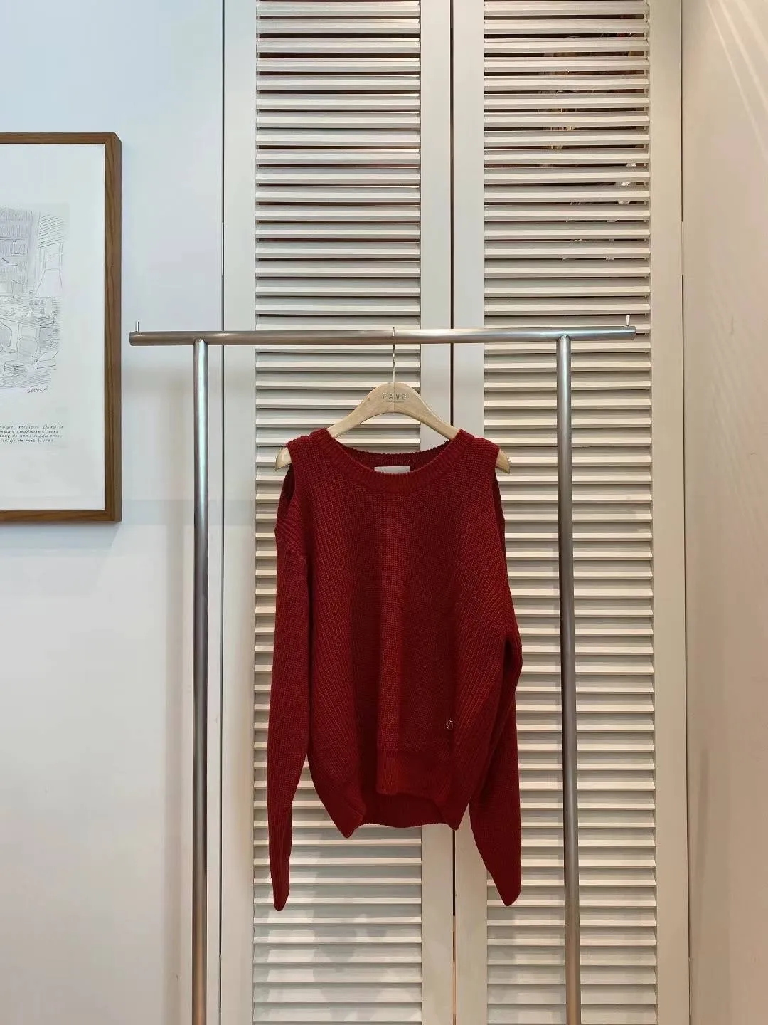 PC673小巧思簍肩針織上衣 米 紫 紅 墨 官網價$1050 線上價$1020