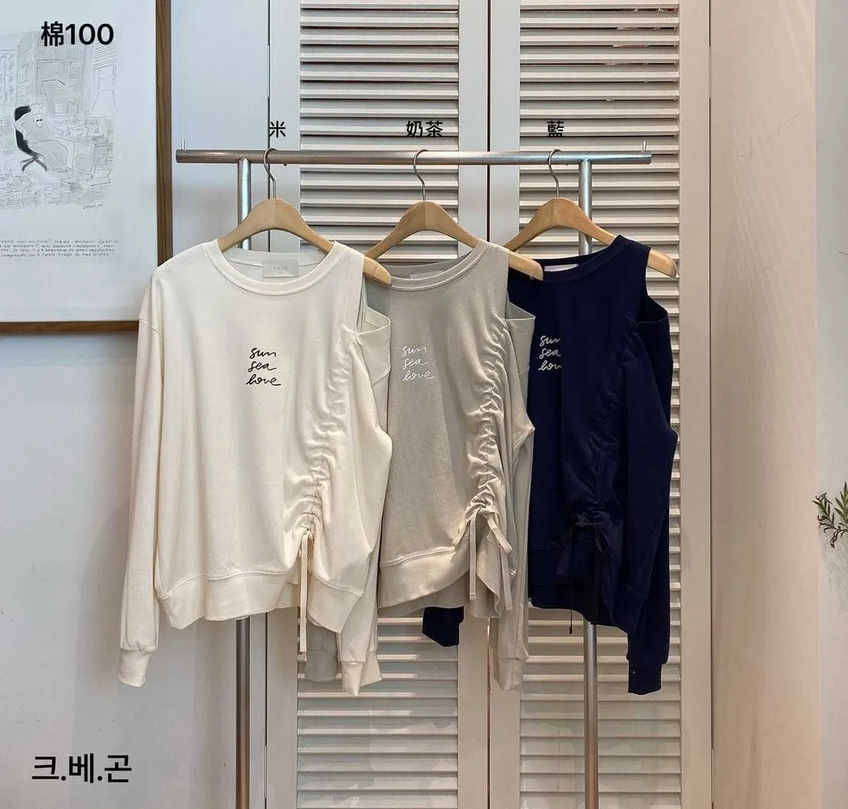 PC676單側簍肩縮腰設計美衣 米 藍 奶茶 官網價$1020 線上價$990