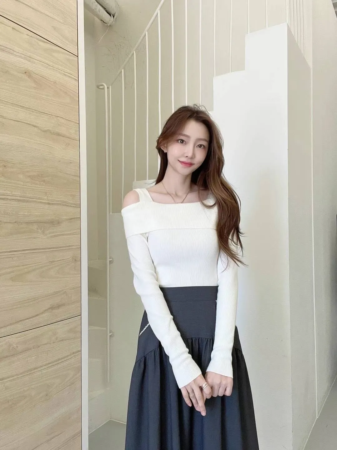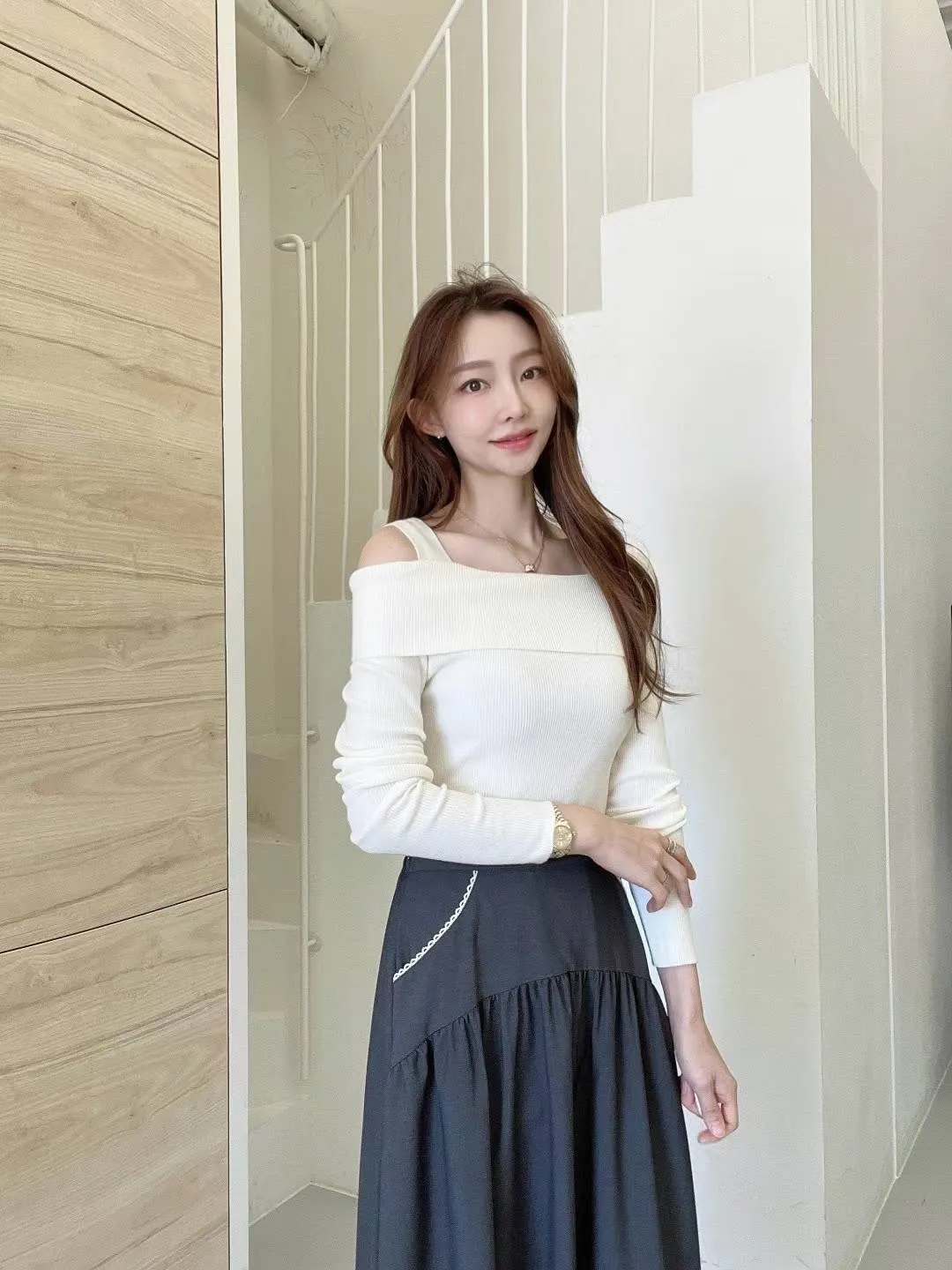 PC682推薦款單肩斜領上衣 白 黑 粉 奶茶 官網價$1110 線上價$1080
