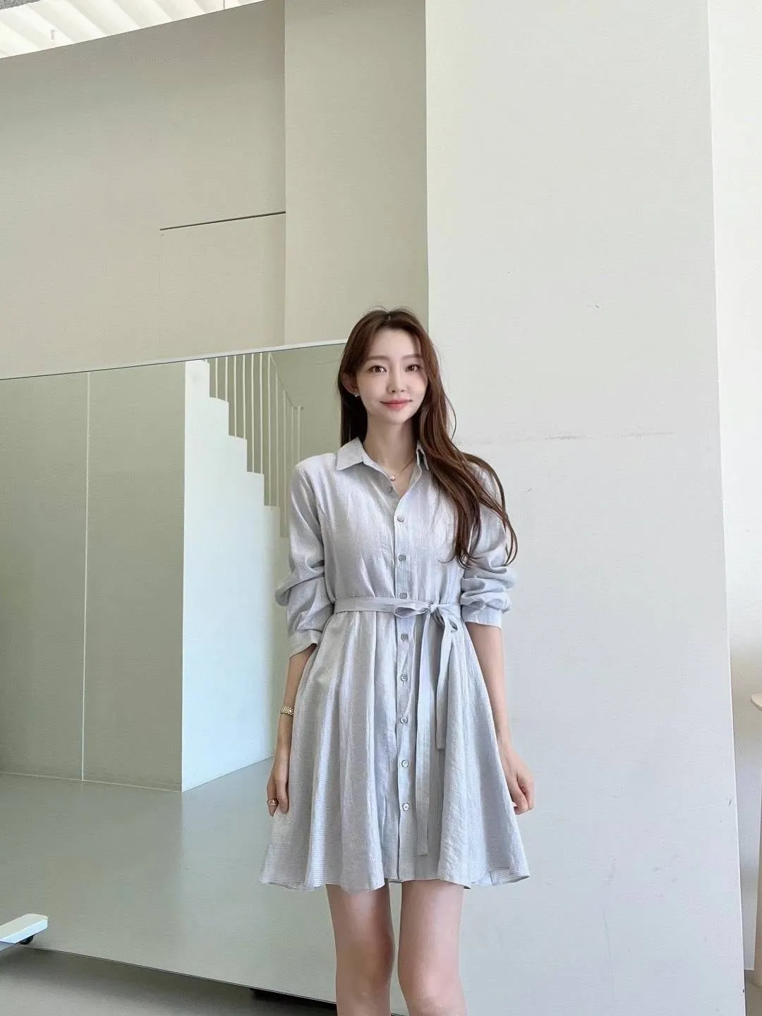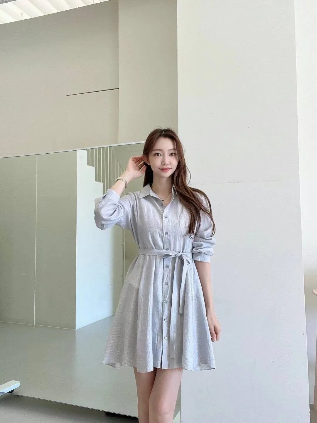 PC684薄款輕盈襯衫洋裝 白 灰 綠 官網價$1490 線上價$1460