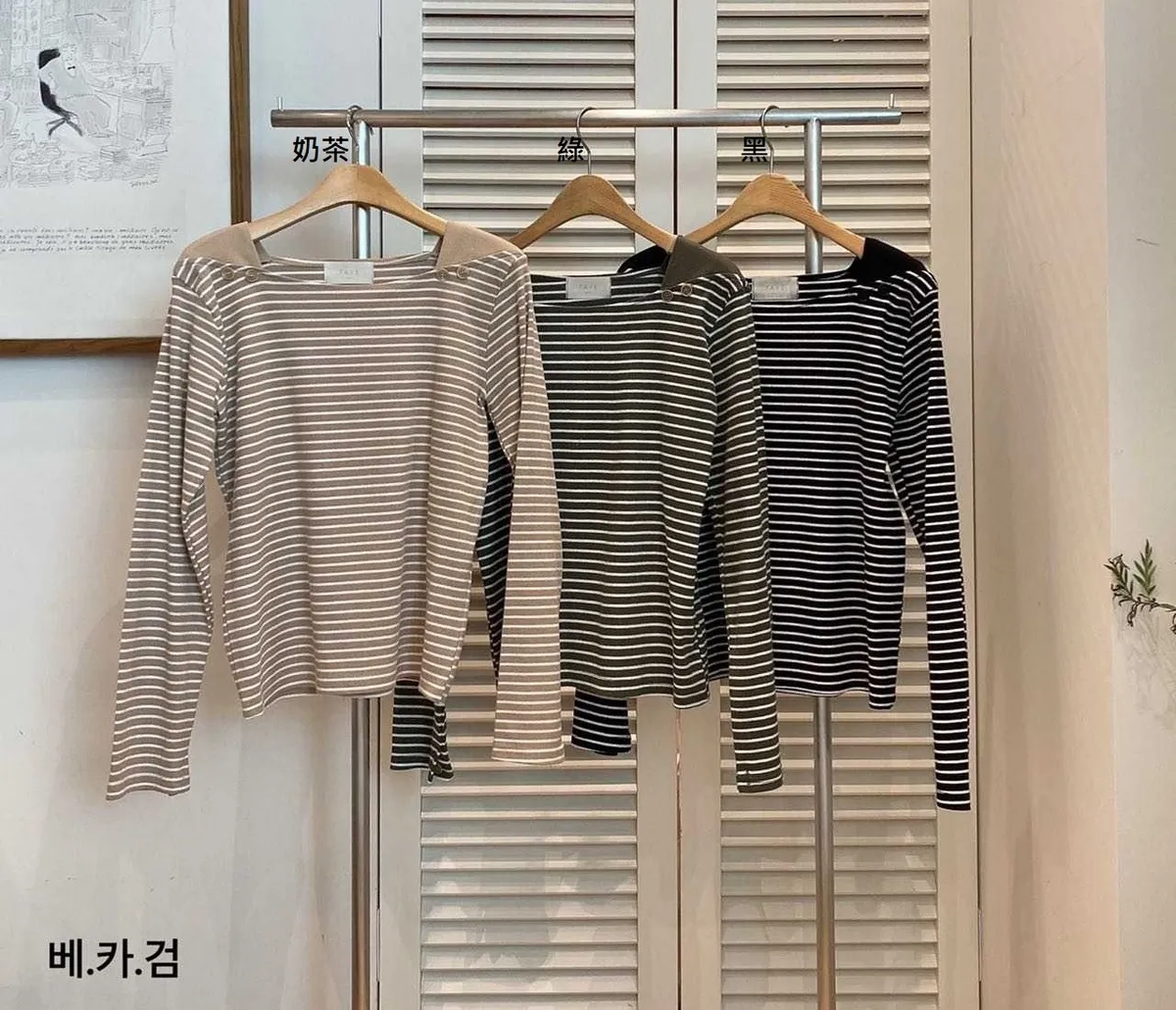 PC687方領條紋上衣 綠 黑 奶茶 官網價$920 線上價$890