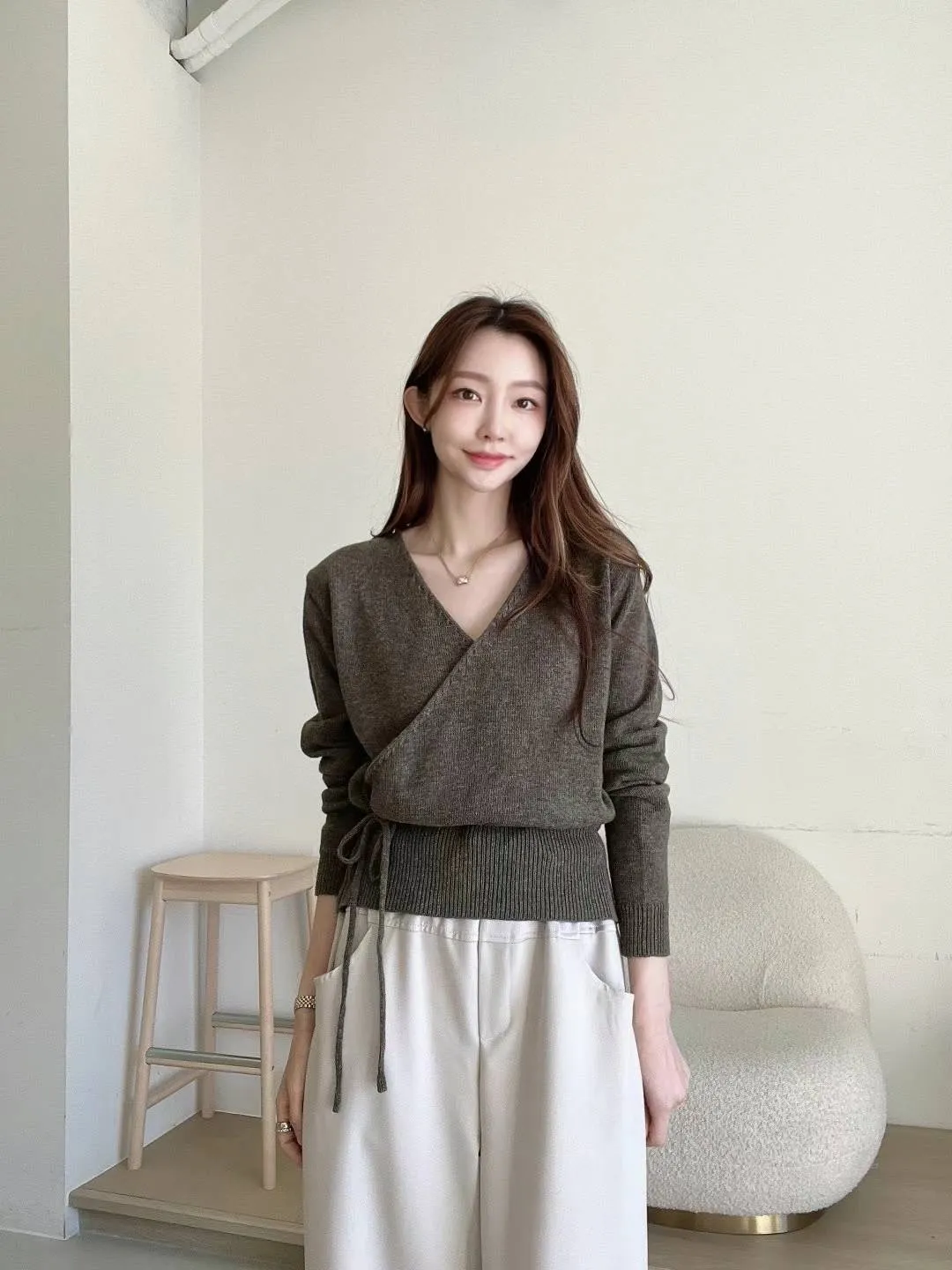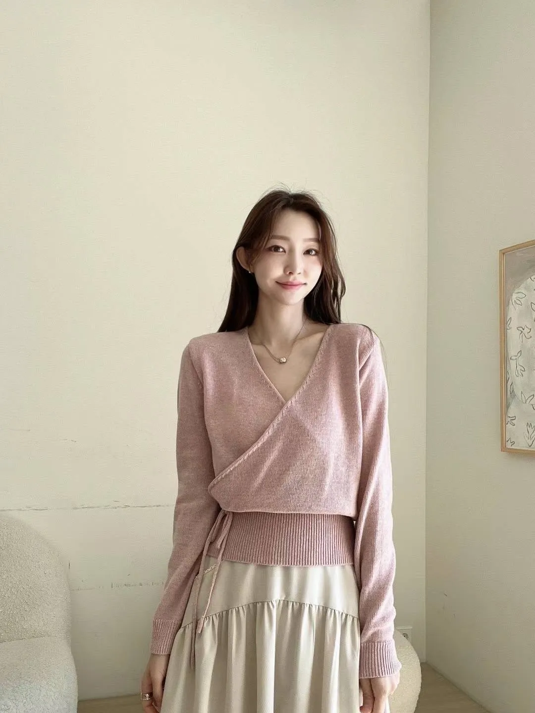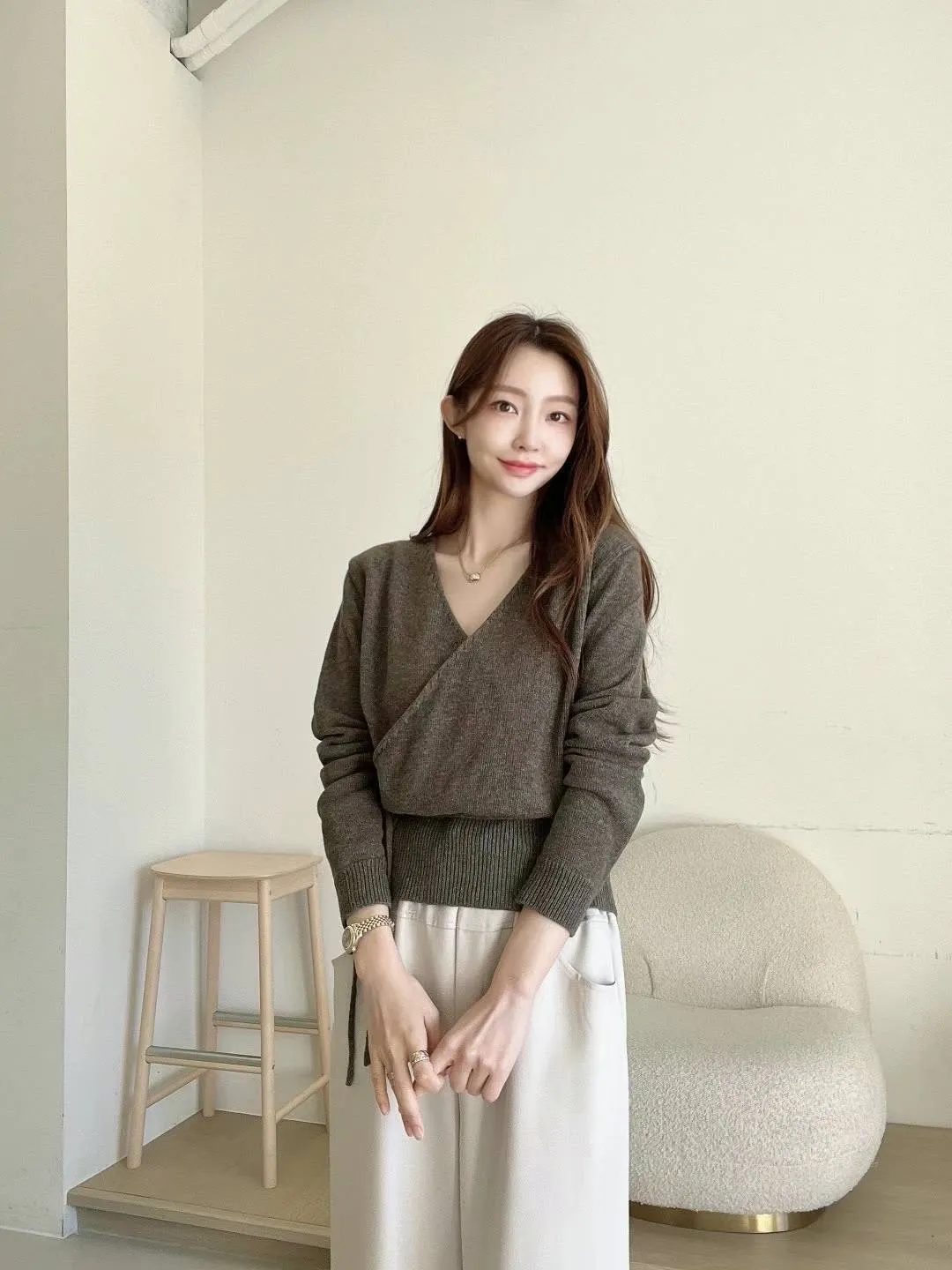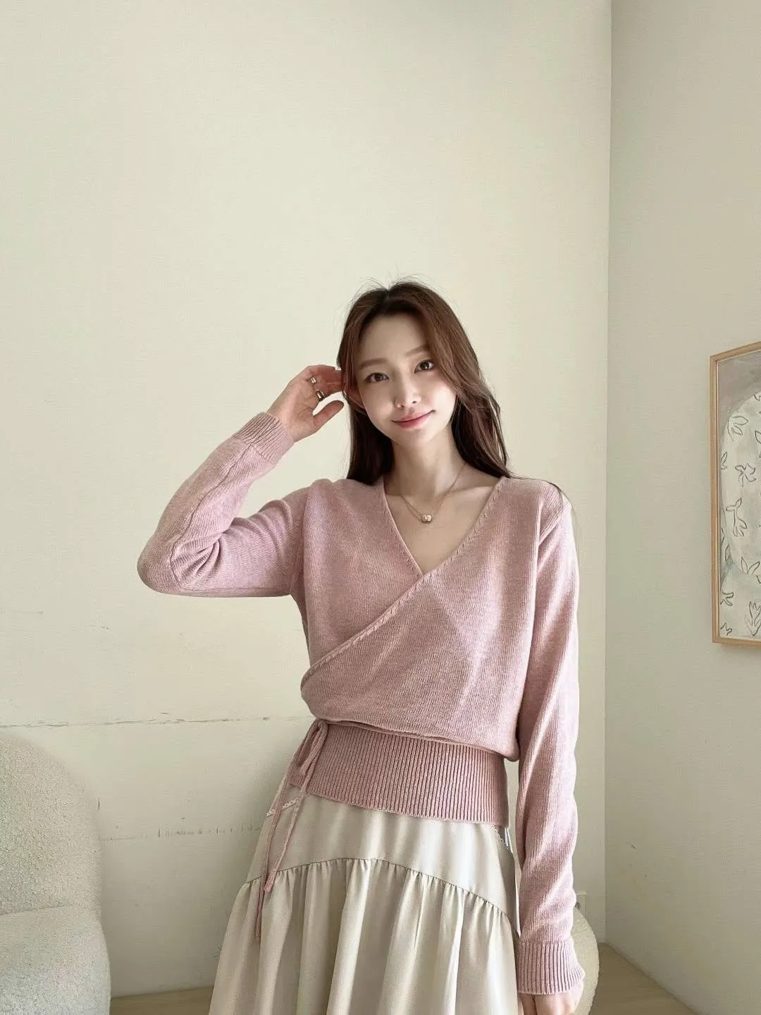 PC688女神交叉V領羊毛上衣 米 粉 咖 官網價$1120 線上價$1090
