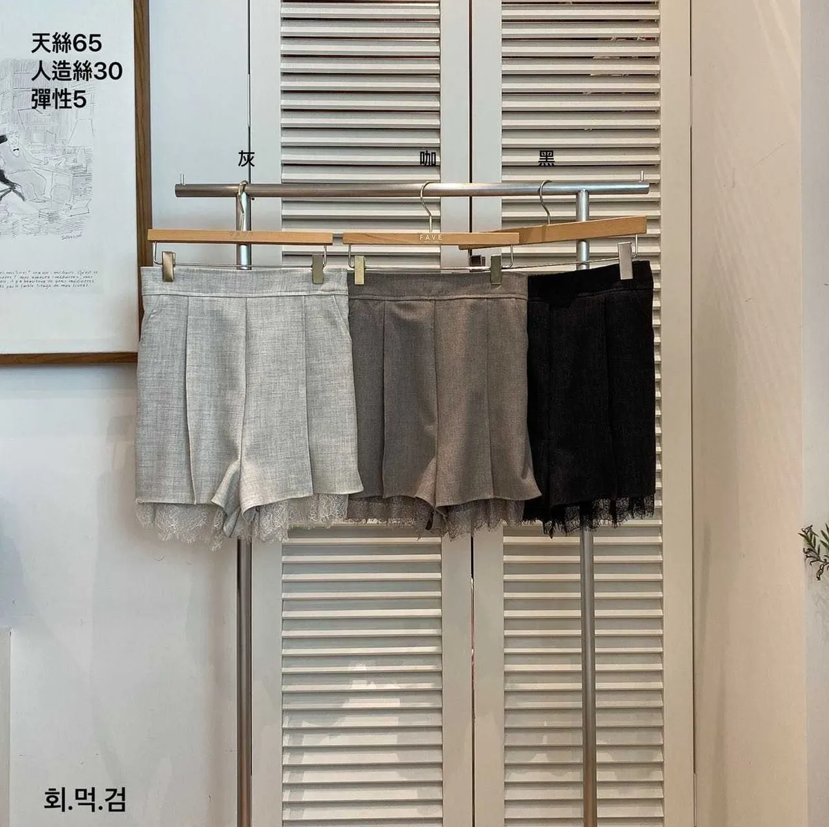 PC689睫毛蕾絲層次感西裝短褲 灰 咖 黑 官網價$1190 線上價$1160