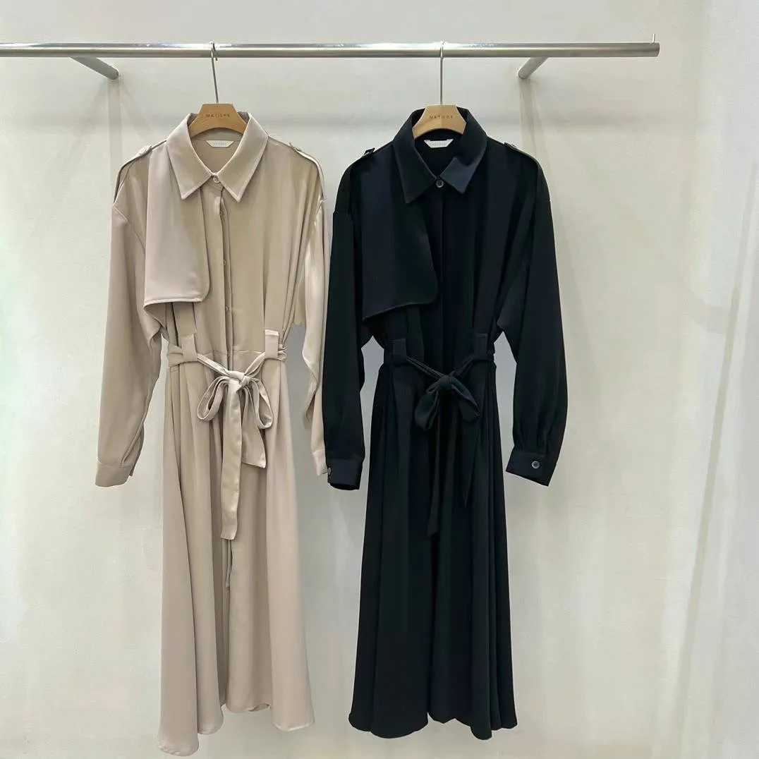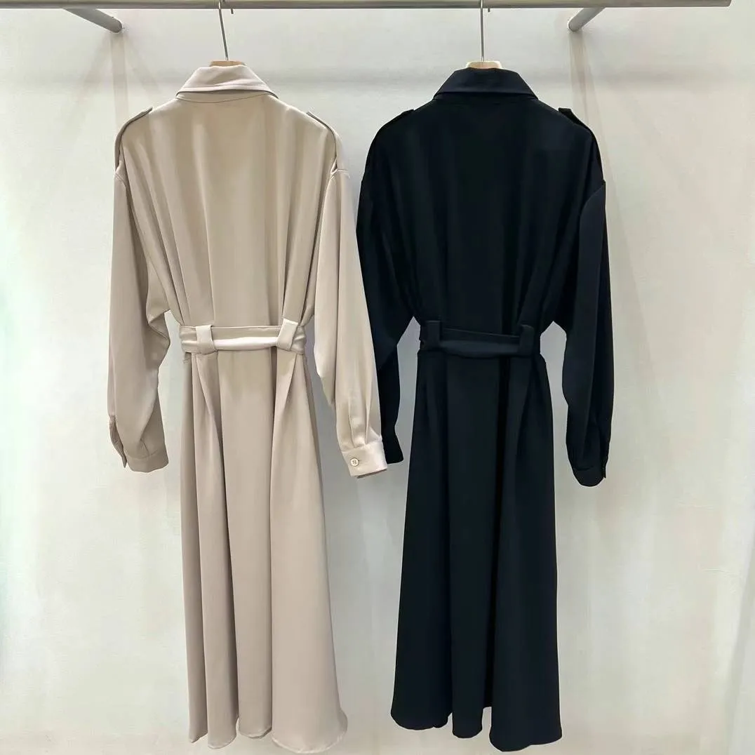 PC720設計感不對稱長版風衣洋裝 黑 米 官網價$2360 線上價$2330