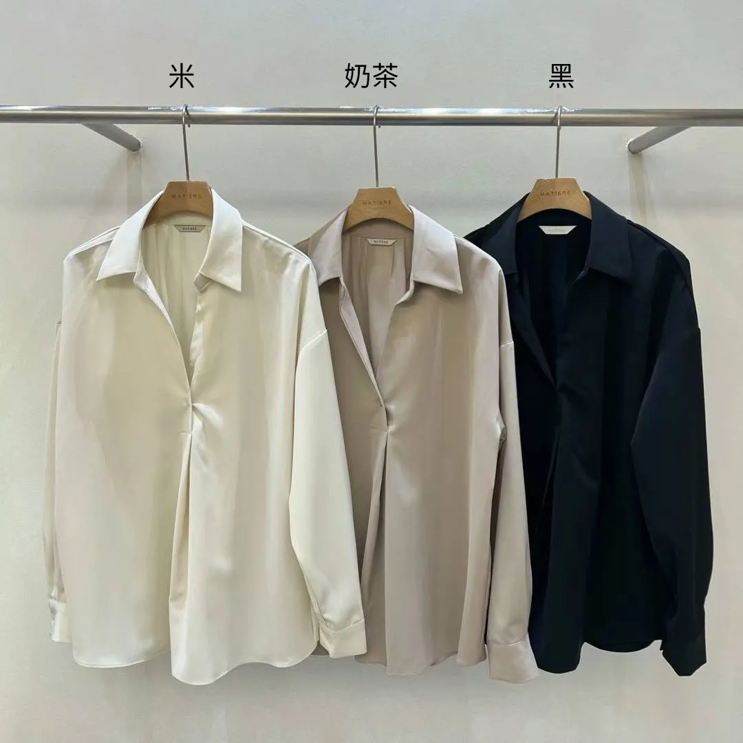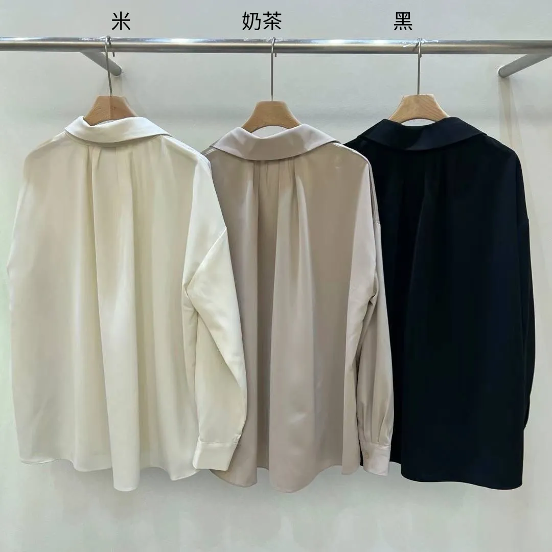 PC728單釦V領光澤襯衫 米 黑 奶茶 官網價$1090 線上價$1060