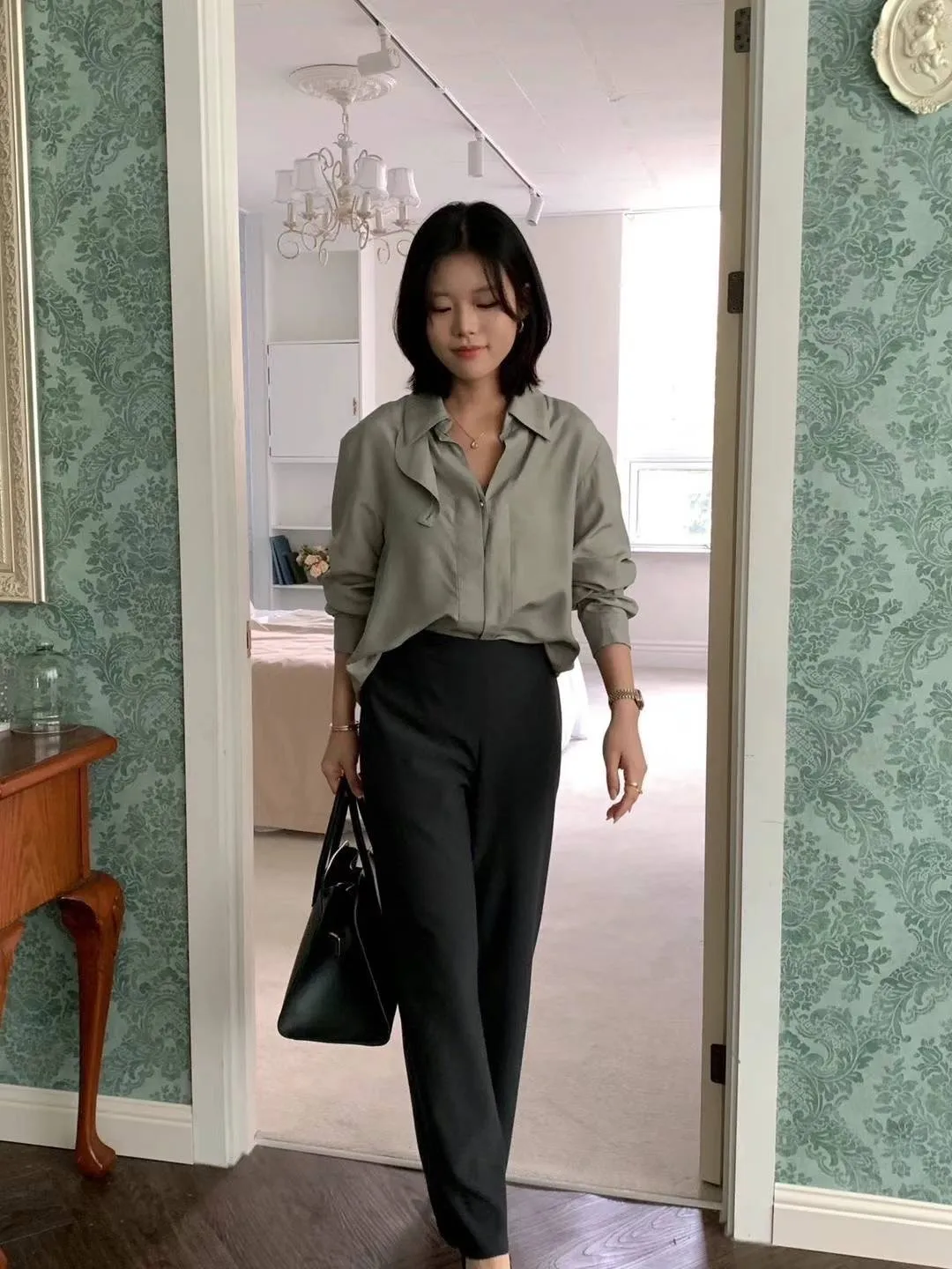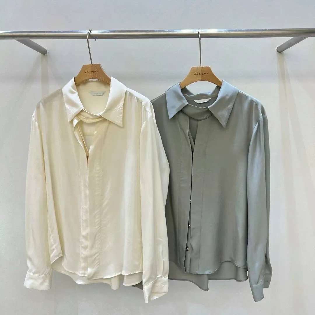 莫代爾+人造絲 金扣 前短後長 微寬鬆版型 S-L可 隱藏釦 後抓皺