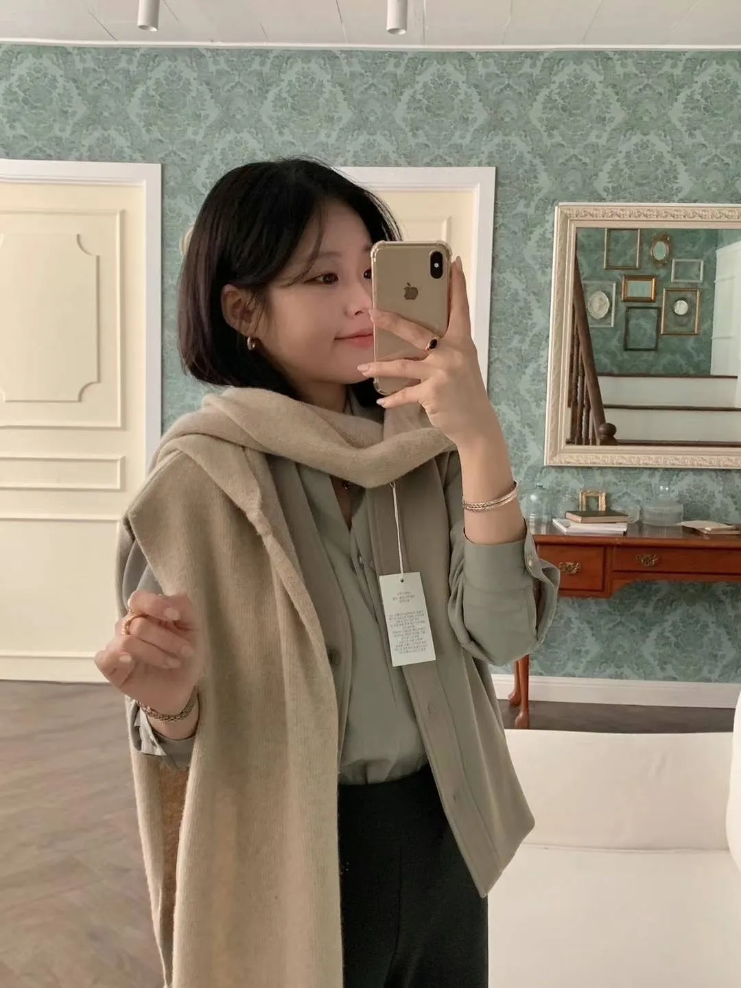 PC731莫代爾一片領微透光澤上衣 米 綠 官網價$1320 線上價$1290