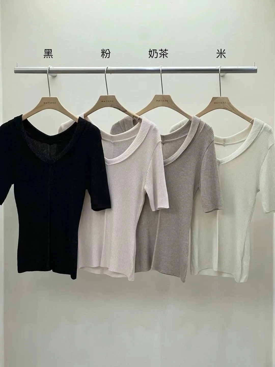 PC734金蔥坑條V領修身上衣 粉 米 奶茶 黑 官網價$1320 線上價$1290