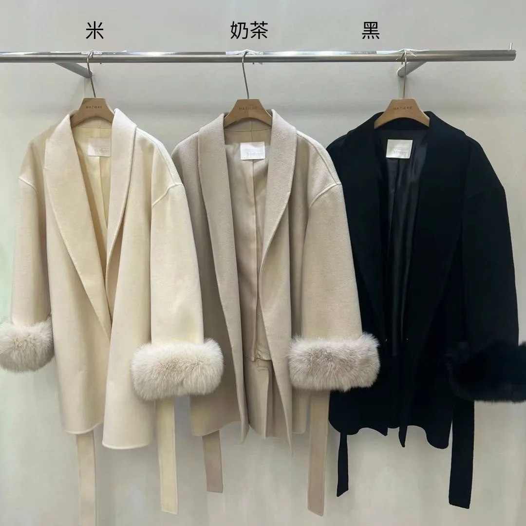 喀什米爾+羊毛90%+手袖狐狸毛可拆 輕輕不重